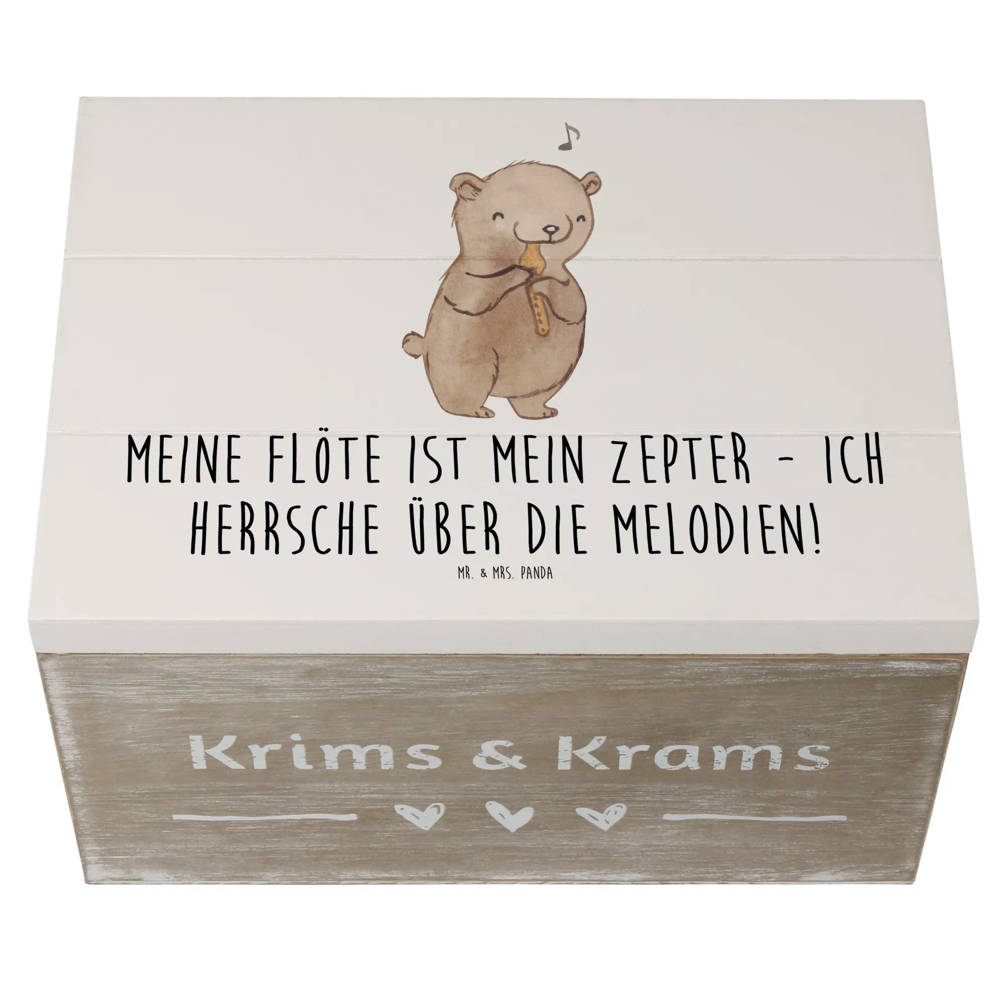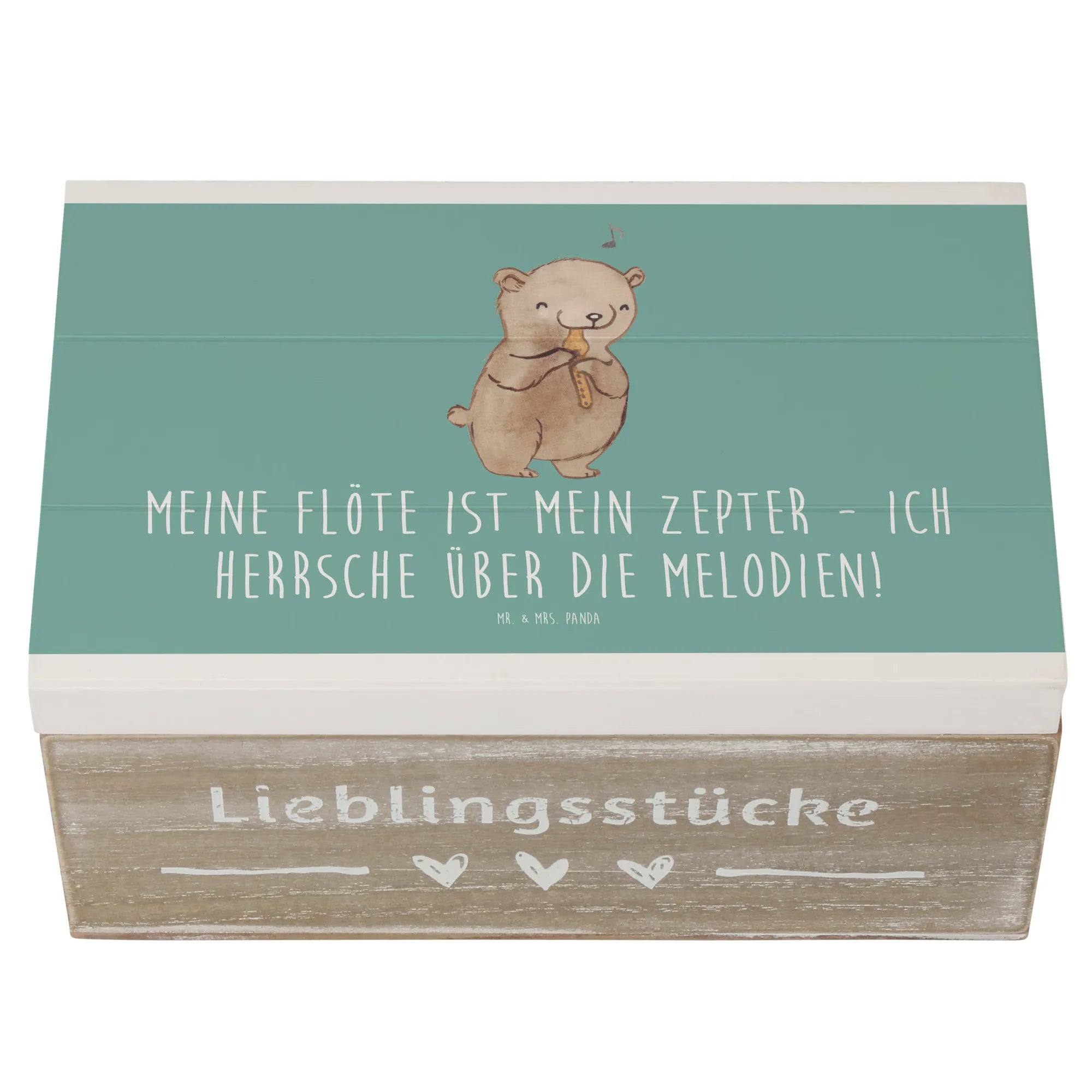 Die wunderschöne Holzkiste mit dem Motiv einer Flöte aus der exklusiven Kollektion "Musizieren & Instrumente" von Mr. & Mrs. Panda ist das perfekte Geschenk für alle Musikliebhaber, die das Spielen eines Instruments erlernen oder einfach ihre musikalischen Erinnerungen aufbewahren möchten.