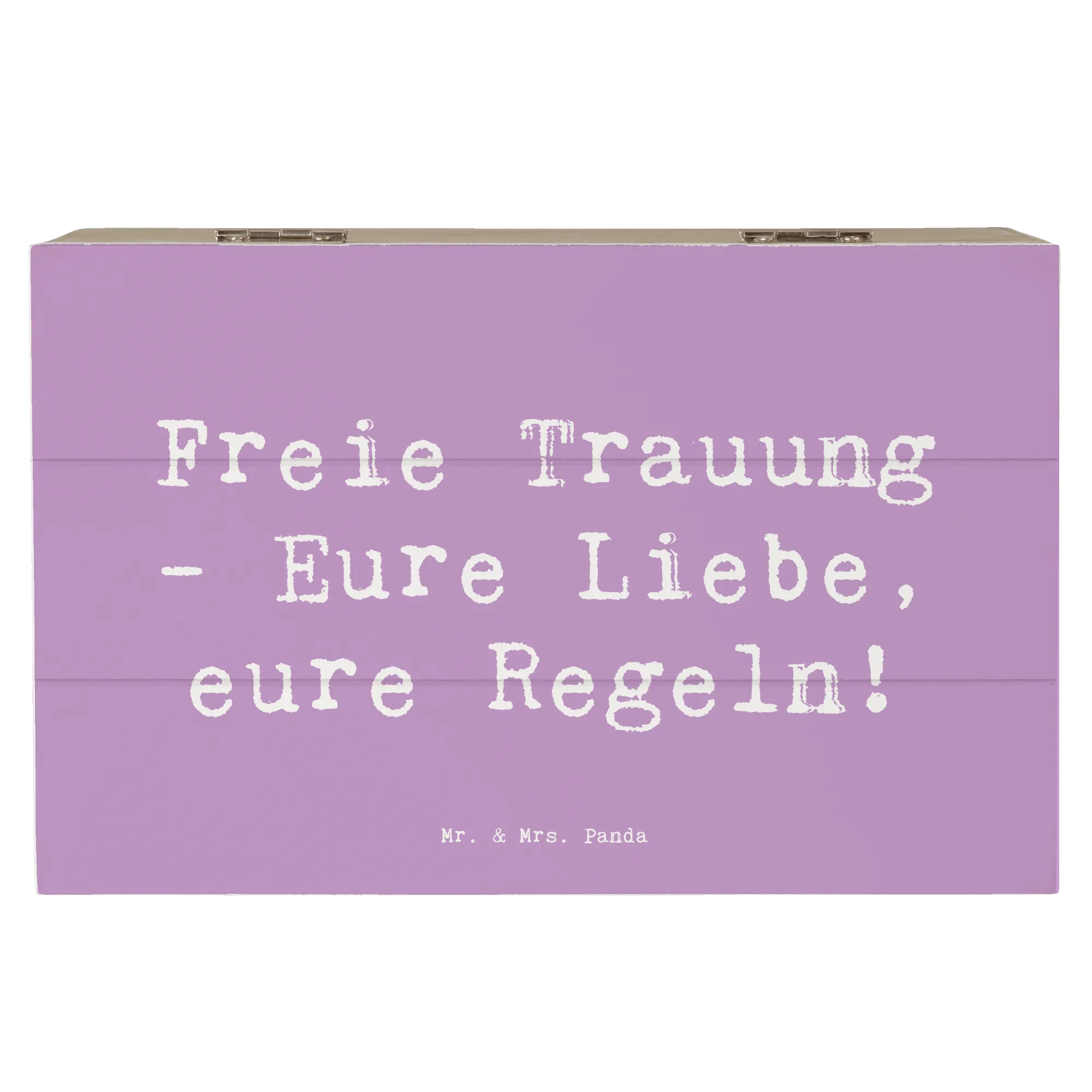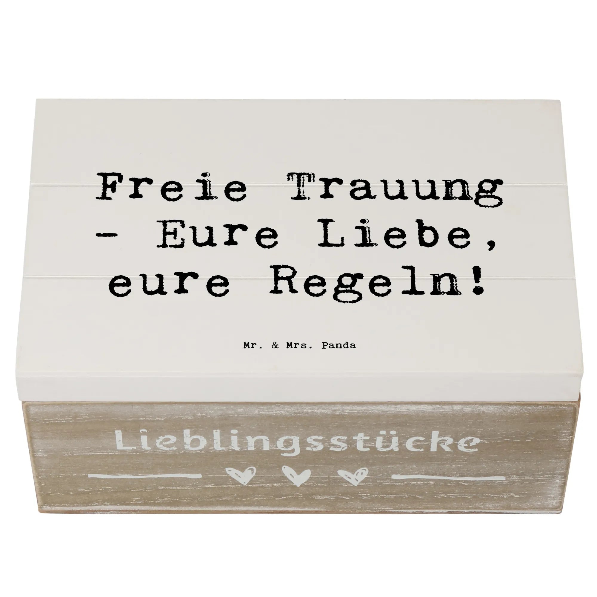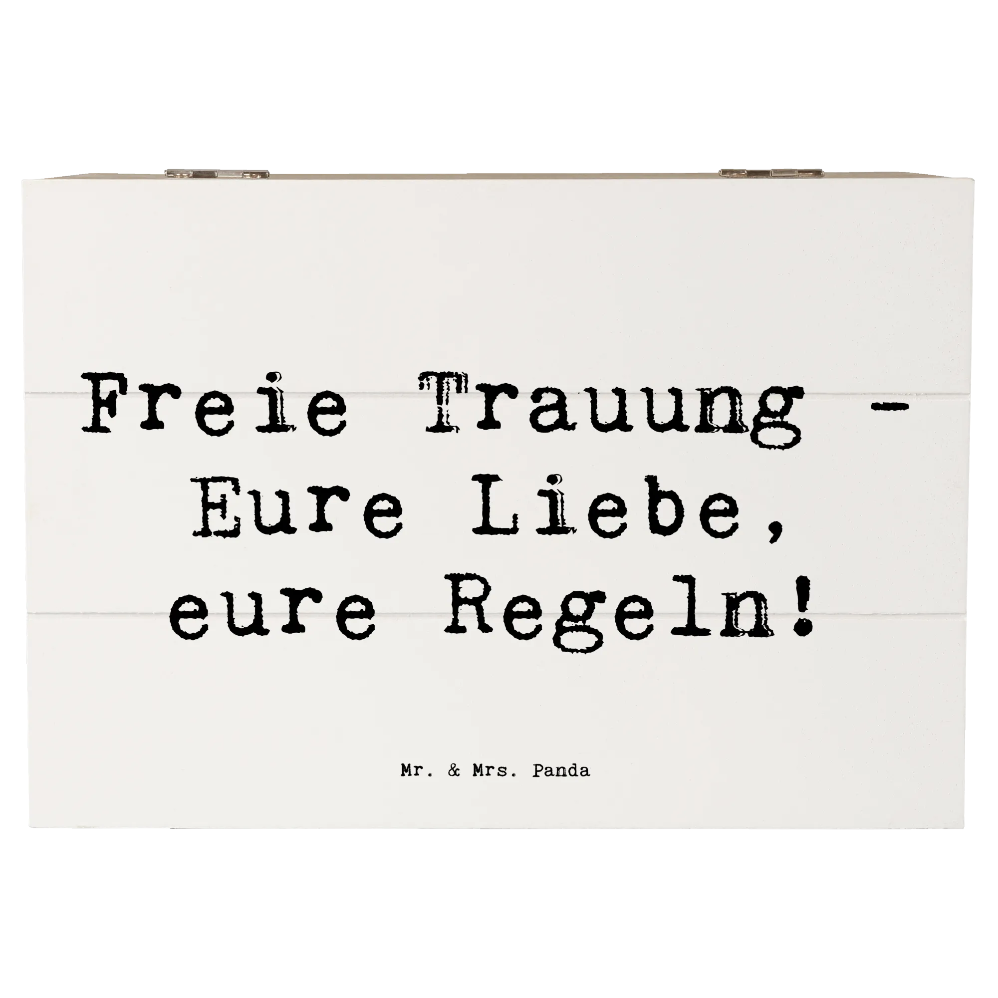 Eine zauberhafte Holzkiste von Mr. & Mrs. Panda – perfekt als Hochzeitsgeschenk oder Erinnerungskiste. Diese Holzbox trägt den schönen Spruch „Freie Trauung - Eure Liebe, eure Regeln!“ und ist damit ideal für Paare, die ihre Liebe frei und persönlich feiern möchten. Ob als Aufbewahrungsbox Holz für Erinnerungsstücke, als Holztruhe für Karten oder als dekorative Geschenkbox: Diese Holzkiste verbindet Funktionalität mit liebevollem Design.