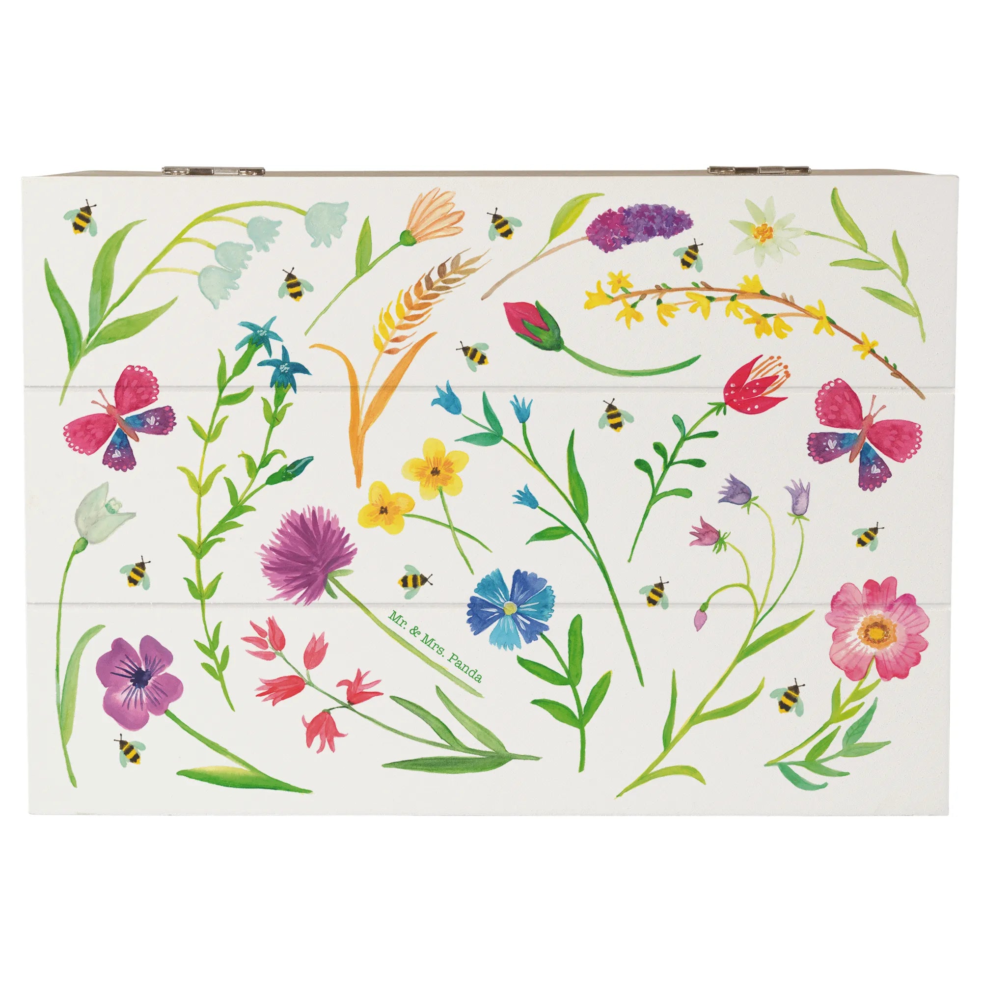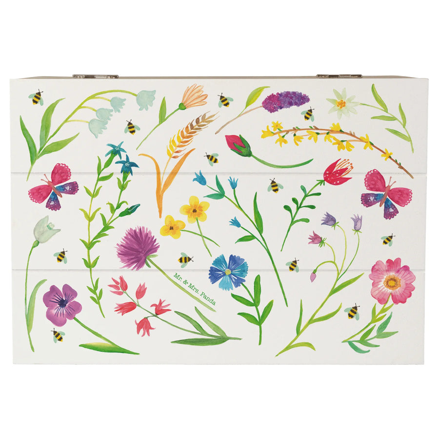 Die wunderschöne Holzkiste Frühling von Mr. & Mrs. Panda ist der perfekte Begleiter für all deine wertvollen Erinnerungen! Mit ihrem farbenfrohen Aquarellmotiv von handgezeichneten Blumen, Bienen und Schmetterlingen bringt sie die Lebendigkeit des Frühlings direkt in dein Zuhause.