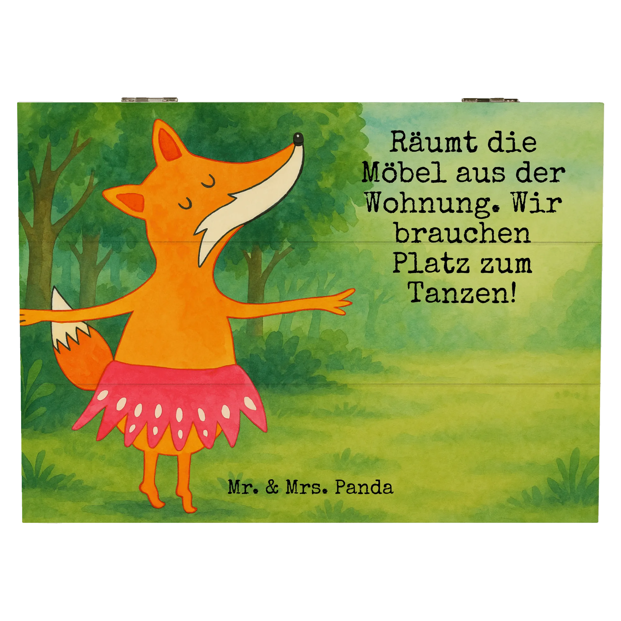 Unser Fuchs im bunten Ballettoutfit bringt Schwung in jede Feier! Die Botschaft 'Räumt die Möbel aus der Wohnung. Wir brauchen Platz zum Tanzen!' erinnert uns daran, wie wichtig es ist, den Raum für Freude und gemeinsame Erlebnisse zu schaffen. Dieser süße Fuchs erfüllt die Herzen mit Lebensfreude und zeigt uns, dass der Tanz eine wundervolle Möglichkeit ist, uns alle zusammenzubringen. Ob beim Geburtstag oder einfach nur, um einen besonderen Moment zu feiern, dieser Fuchs ist der perfekte Begleiter. Tanzen verbindet uns und bringt ein Lächeln auf unsere Gesichter! Lasst uns diesen Schwung annehmen und jede Gelegenheit nutzen, um gemeinsam Spaß zu haben.