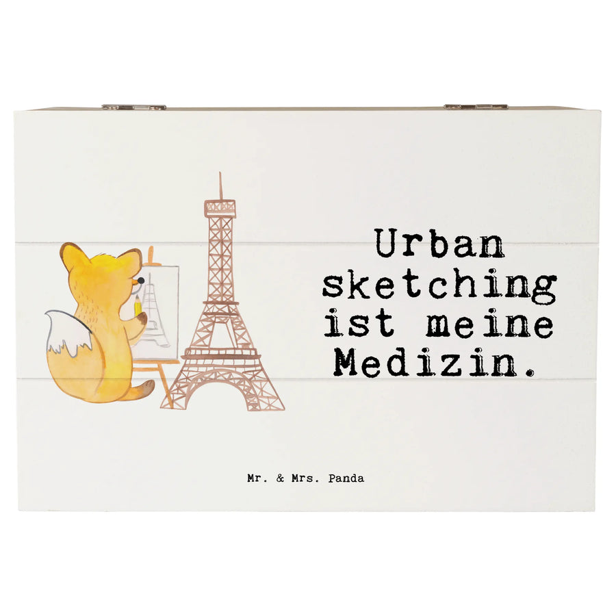 Die wunderschöne Holzkiste von Mr. & Mrs. Panda ist der perfekte Ort, um all deine wertvollen Erinnerungen zu bewahren. Mit ihrem liebevollen Design und dem niedlichen Fuchs-Motiv "Urban sketching ist meine Medizin" bringt diese Kiste Freude und Pepp in jedes Zuhause.