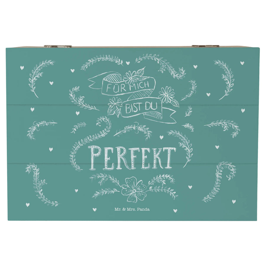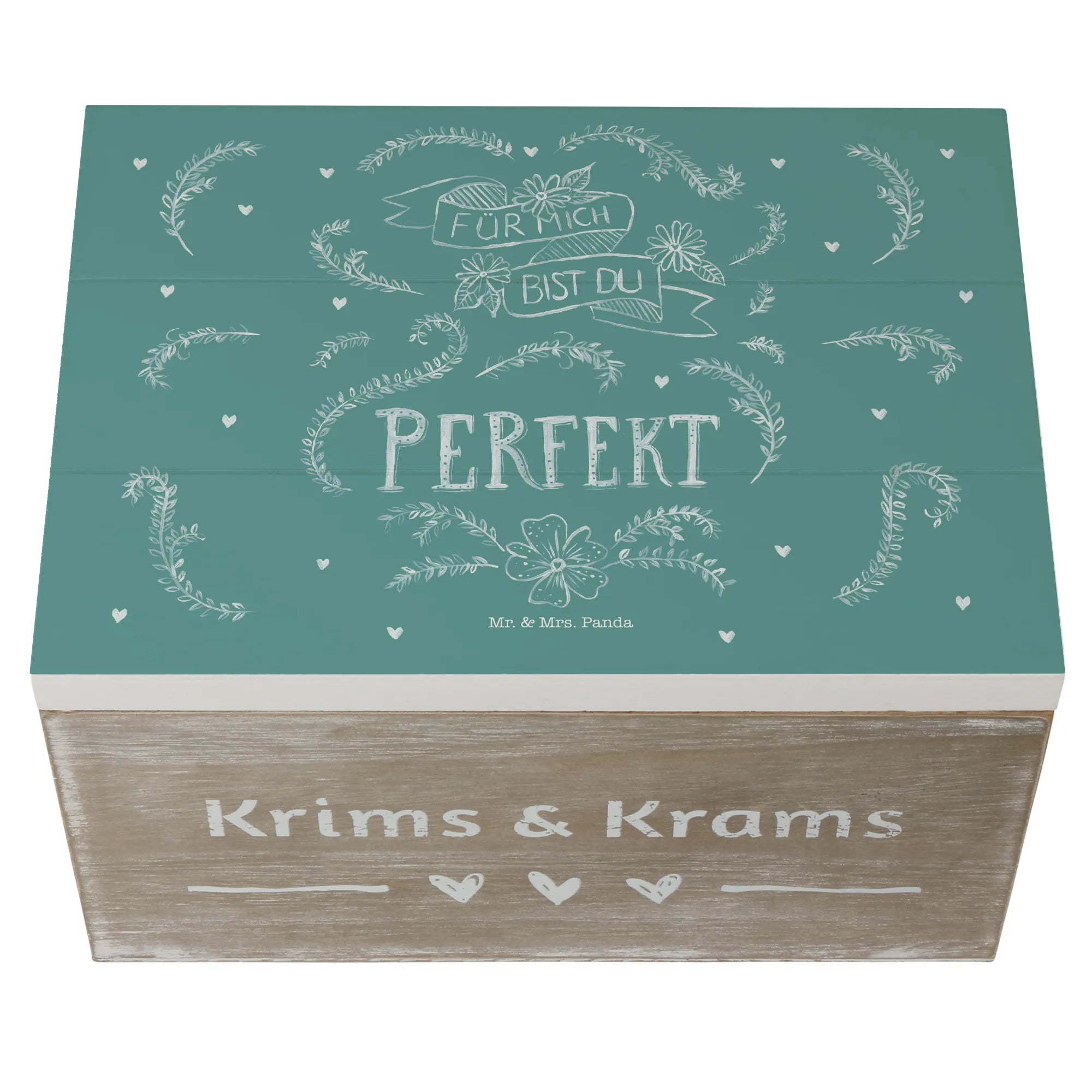 Die Holzkiste "Für mich bist du perfekt" aus der Collection Wild & Free von Mr. & Mrs. Panda ist das perfekte Geschenk für jeden Anlass! Diese wunderschöne Kiste ist nicht nur ein praktischer Aufbewahrungsort für deine wertvollen Schätze, sondern auch ein liebevolles Zeichen der Zuneigung.