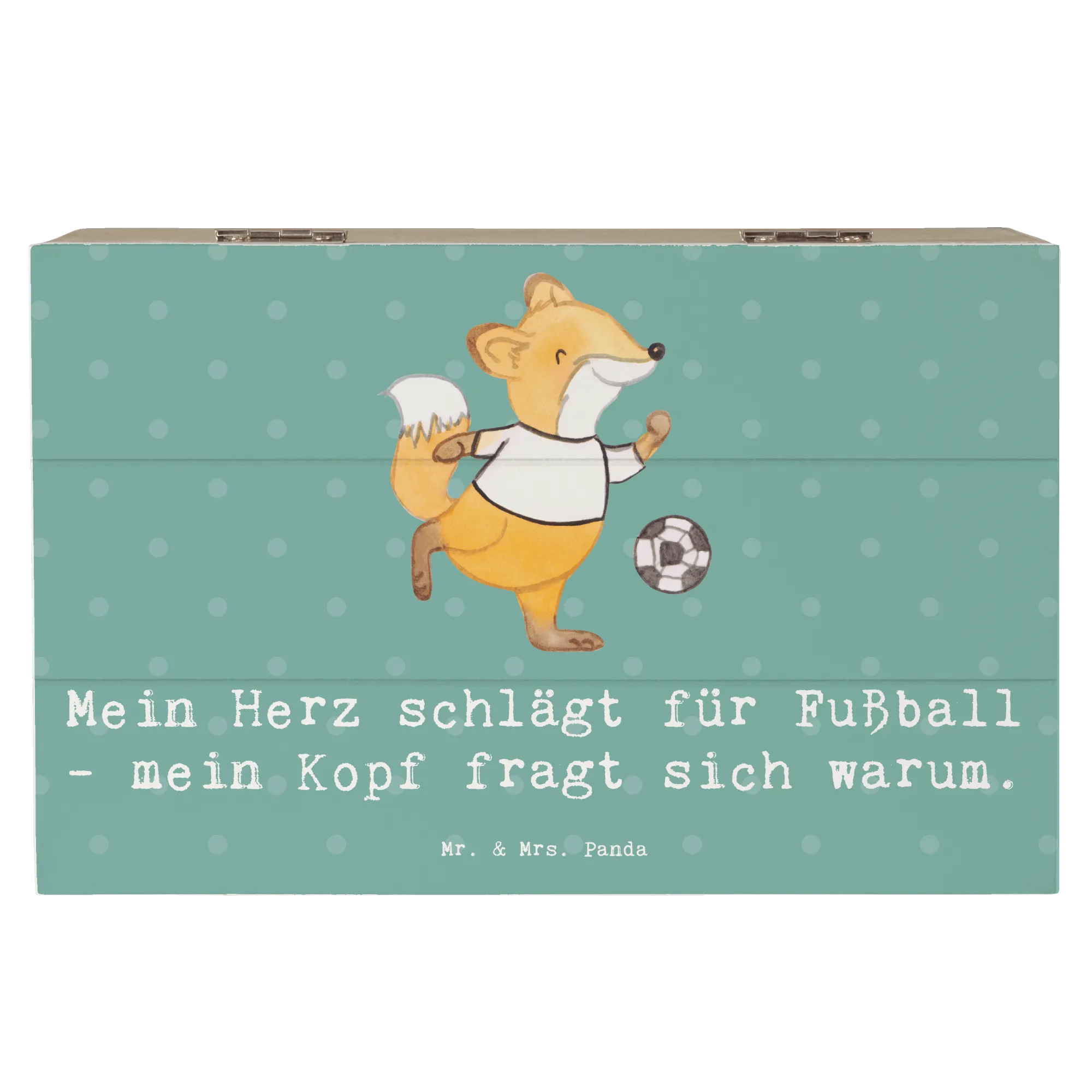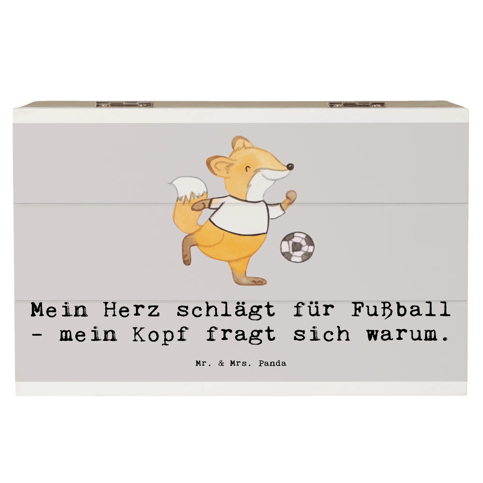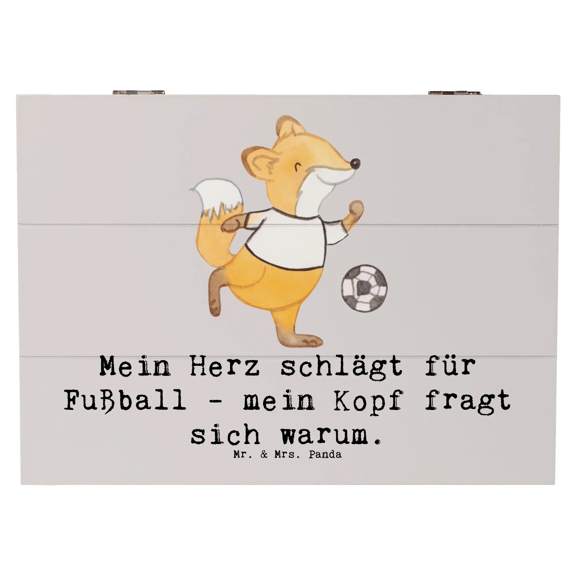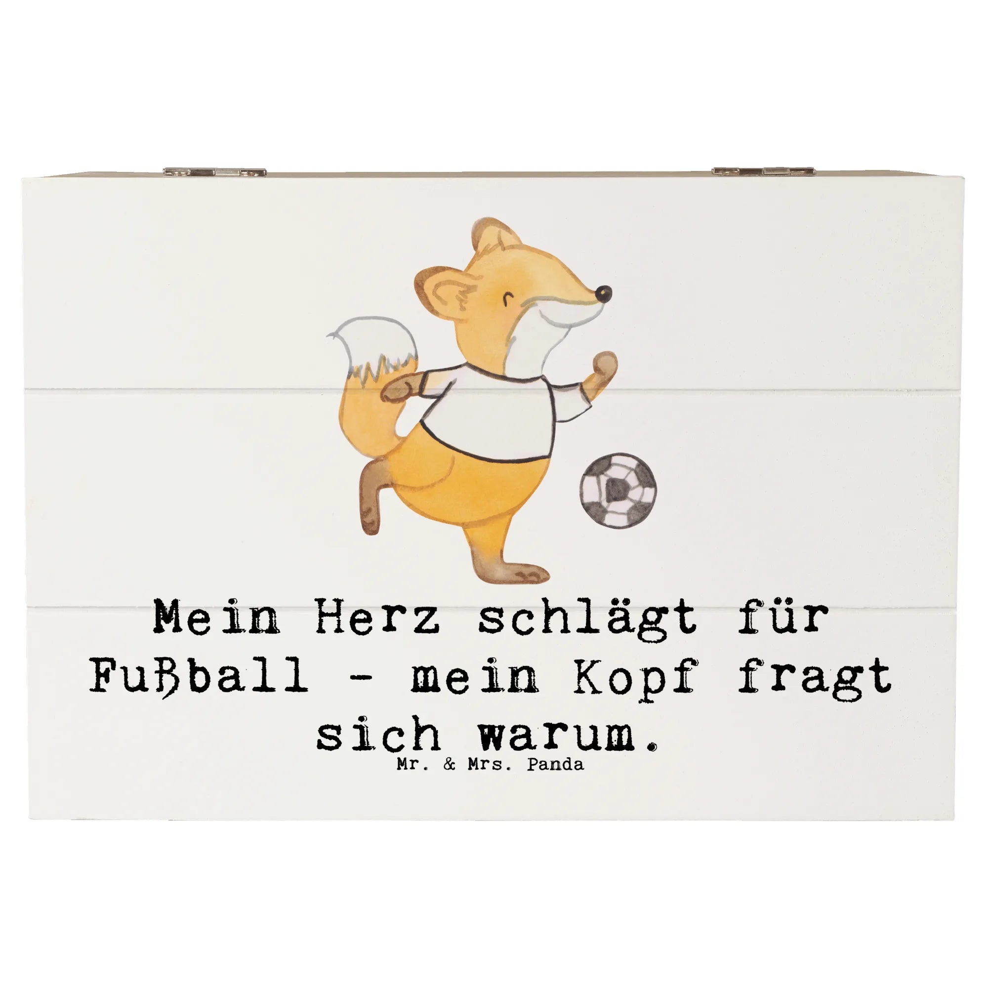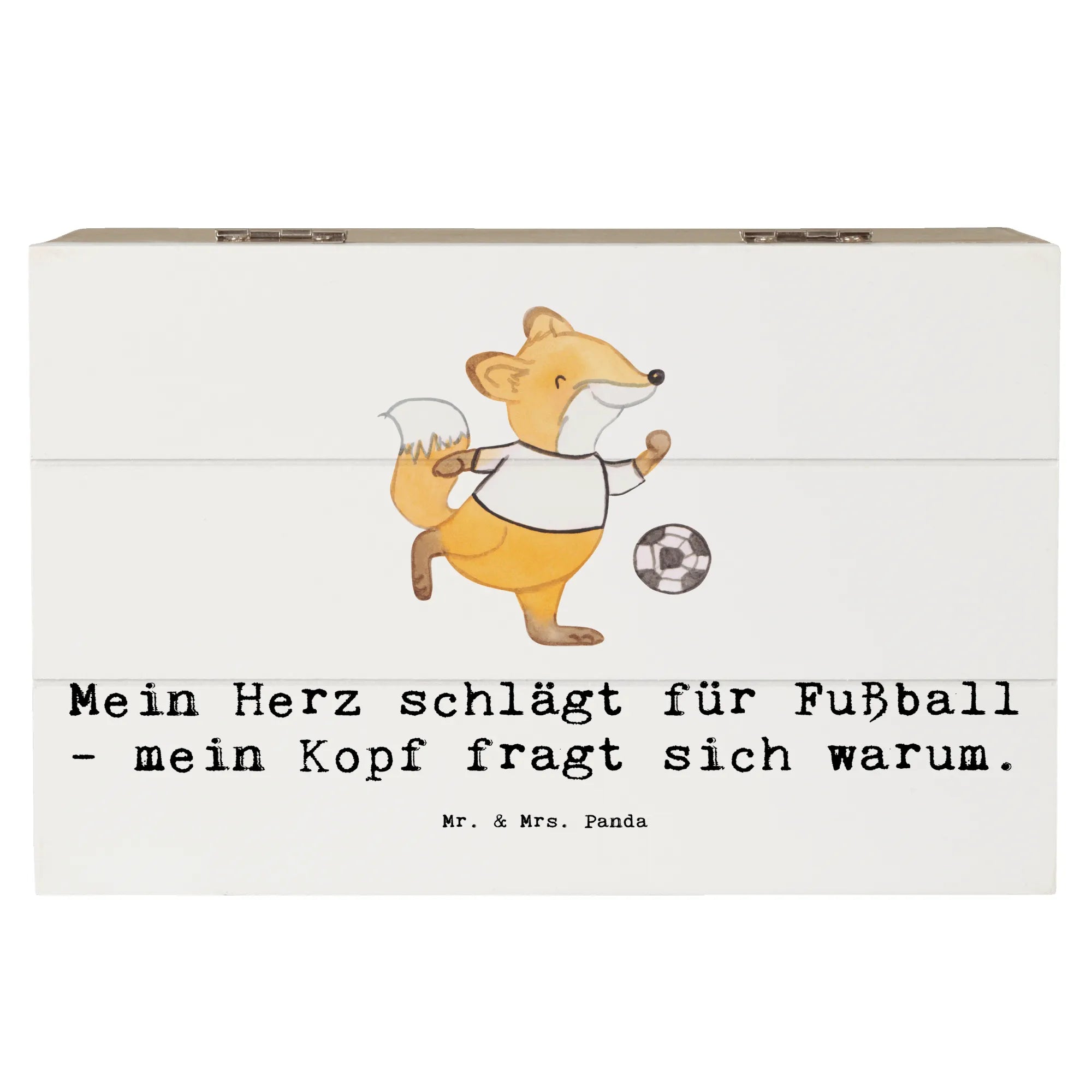 Holzkiste Fußball von Mr. & Mrs. Panda – Das perfekte Geschenk für alle Fußballfans! Mit dem liebevollen Motiv und dem frechen Spruch „Mein Herz schlägt für Fußball - mein Kopf fragt sich warum.“ wird diese Aufbewahrungsbox Holz zum Lieblingsstück in Kinderzimmern, Vereinsheimen und Wohnzimmern.