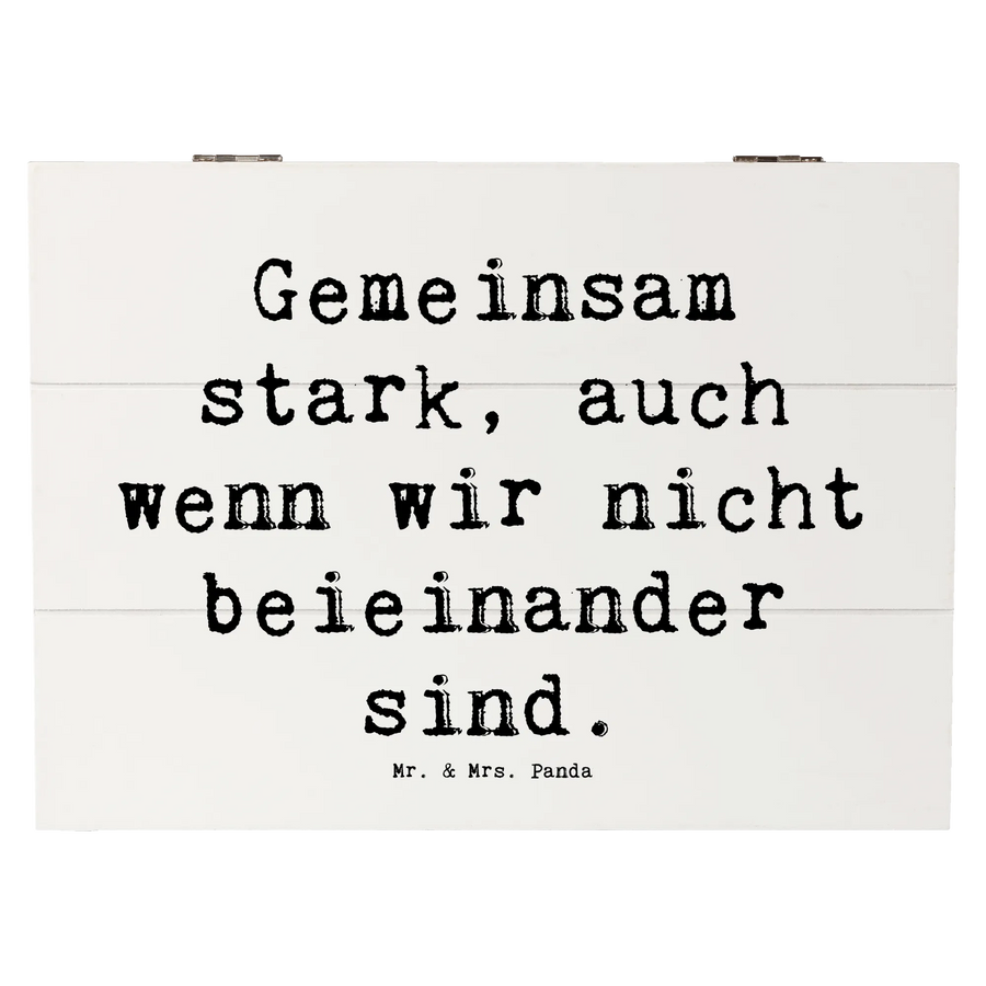 Ob Fotos, Briefe oder kleine Erinnerungsstücke – hier finden sie ein liebevolles Zuhause. Besonders in Zeiten der Trennung kann die Kiste ein liebevolles Geschenk sein. Sie sendet das starke Motto: "Gemeinsam stark, auch wenn wir nicht beieinander sind." Damit wird sie zu einem echten Mutmacher für all jene, die einen schweren Weg gehen.