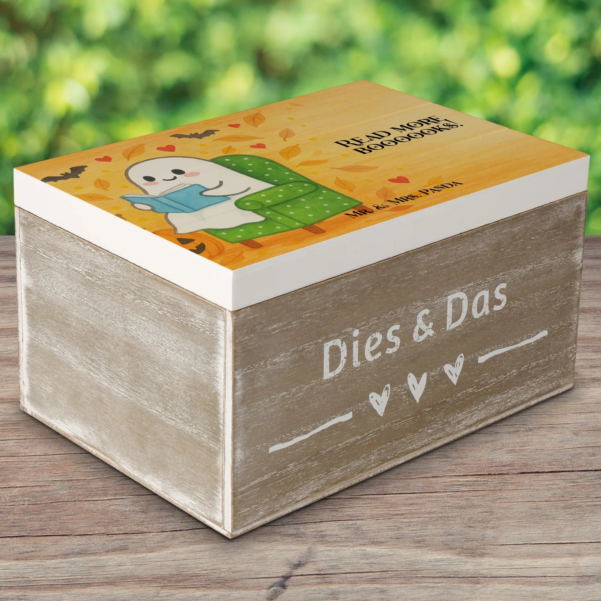 Holzkiste Gespenst Buch Design - 22 x 15 cm - Echtholz lasiert