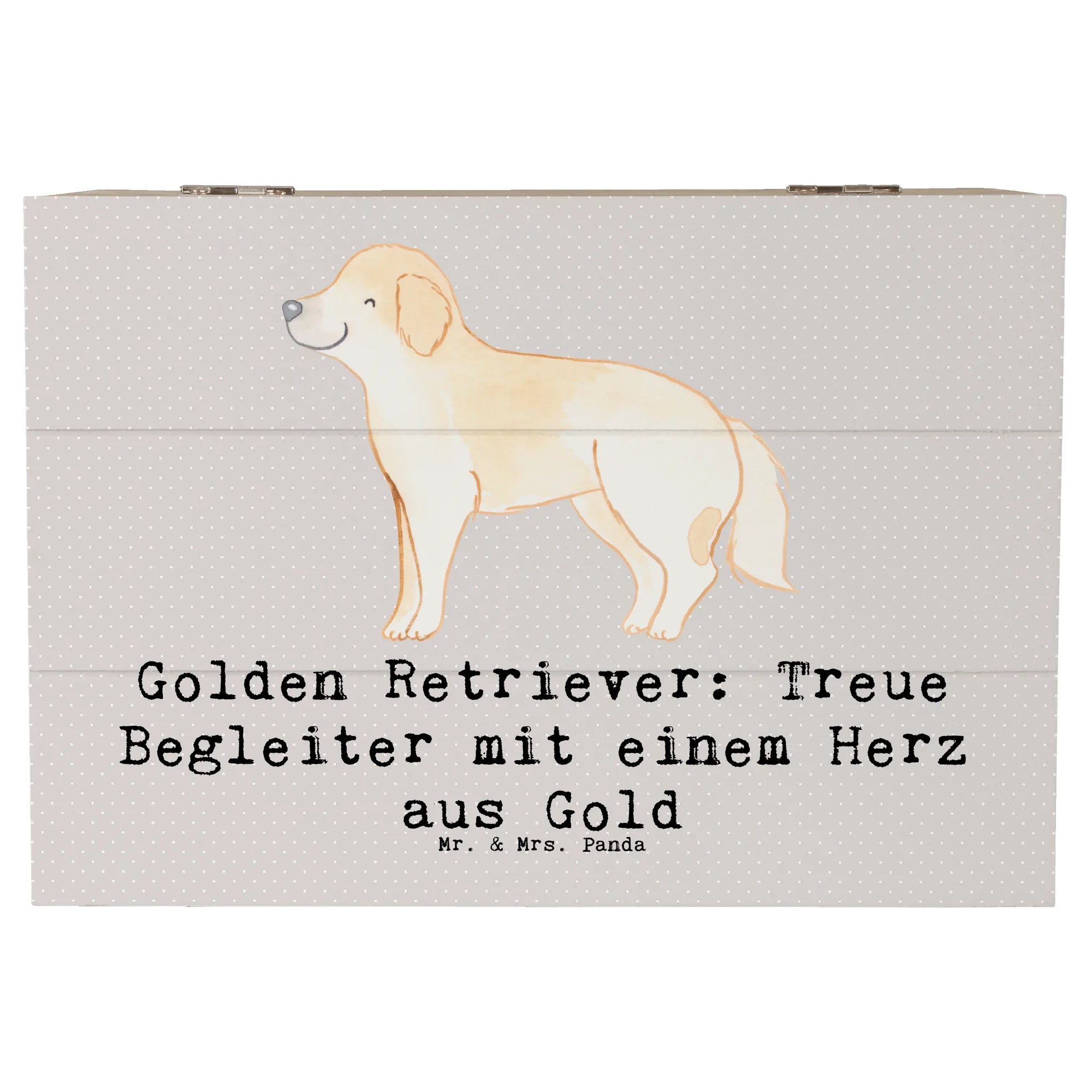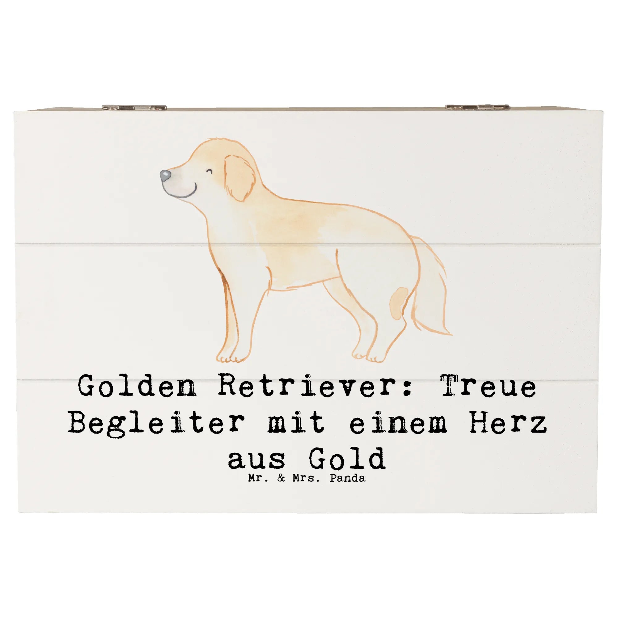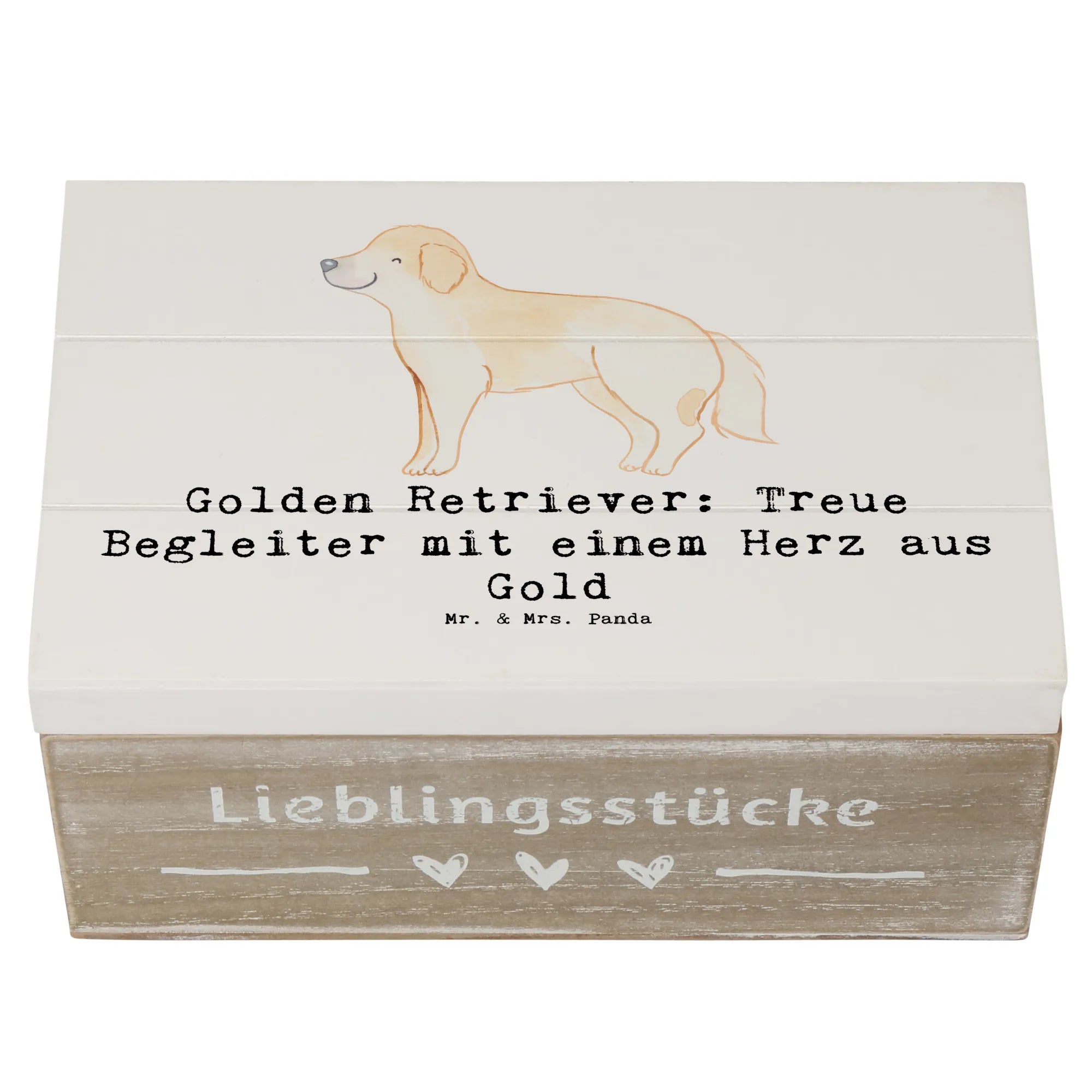 Die wunderschöne Holzkiste von Mr. & Mrs. Panda mit dem zauberhaften Motiv "Golden Retriever: Treue Begleiter mit einem Herz aus Gold" ist nicht nur ein Schmuckstück für jedes Zuhause, sondern auch ein perfekter Aufbewahrungsort für deine wertvollsten Erinnerungen. Diese liebevoll gestaltete Kiste aus robuster Holzfaser bietet dir ausreichend Platz, um deine Schätze stilvoll zu verstauen.
