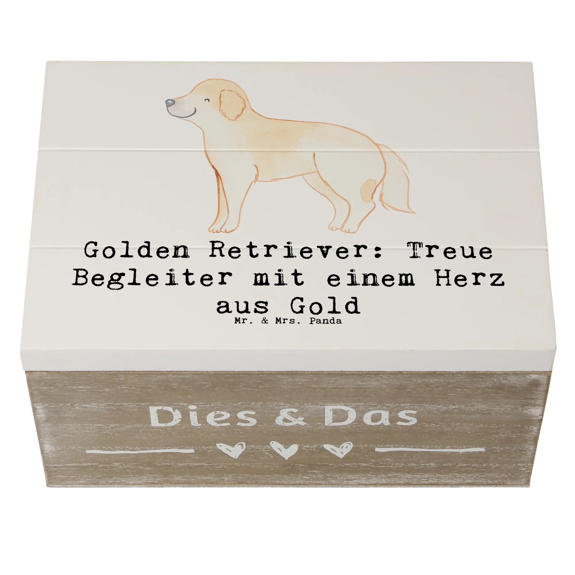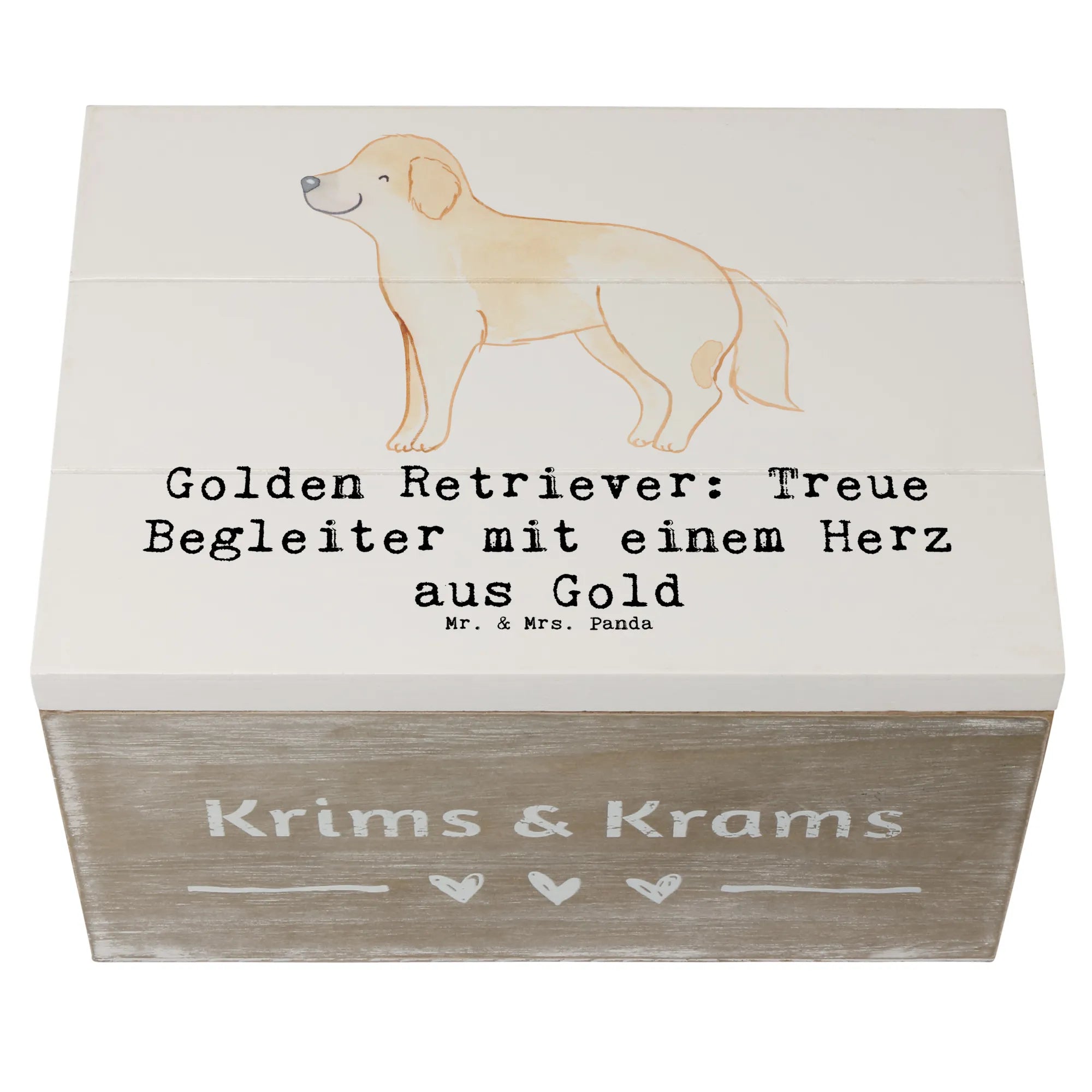 Die wunderschöne Holzkiste von Mr. & Mrs. Panda mit dem liebevollen Motiv des Golden Retrievers ist der perfekte Begleiter für all Deine wertvollen Erinnerungen.