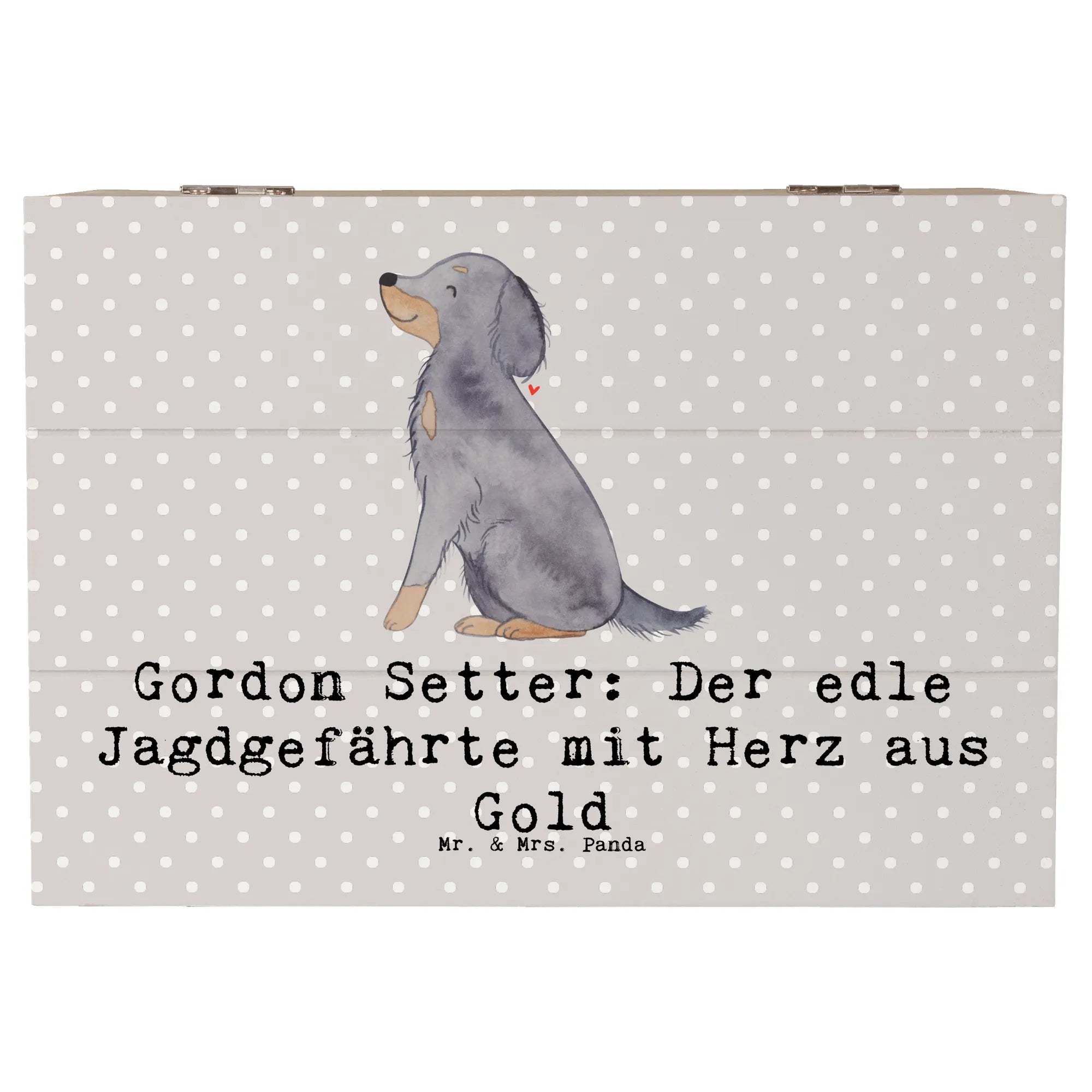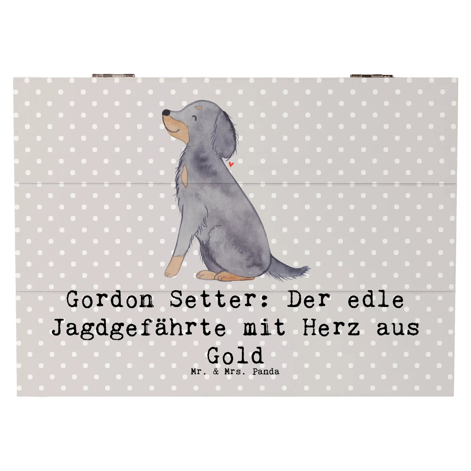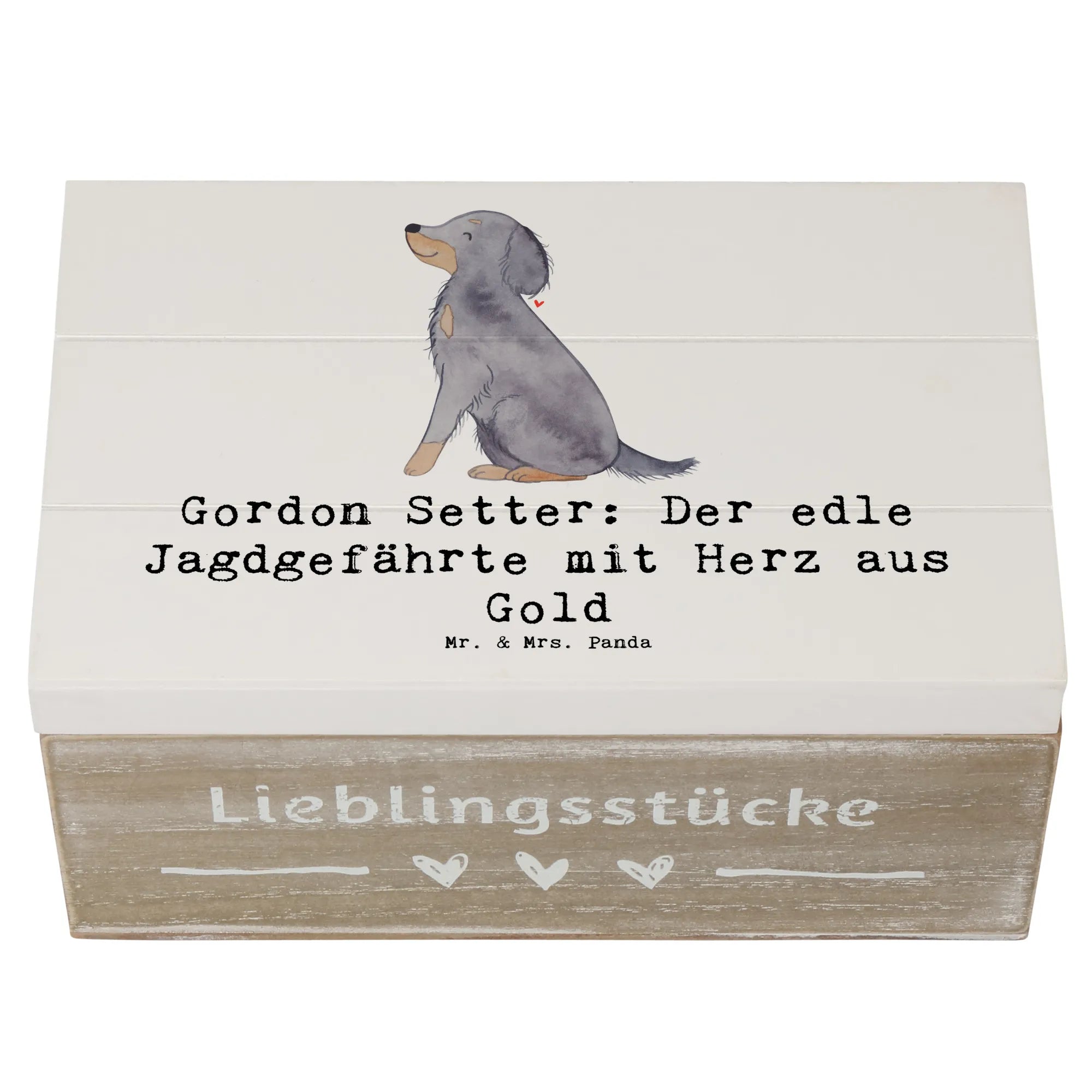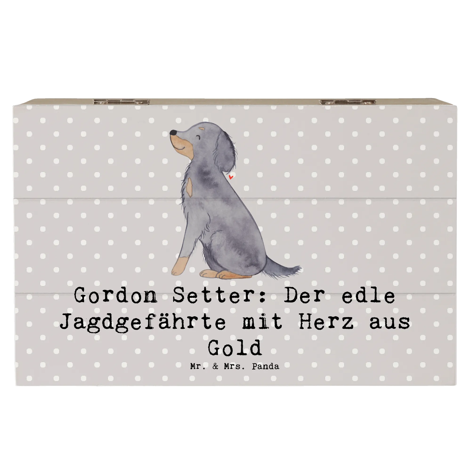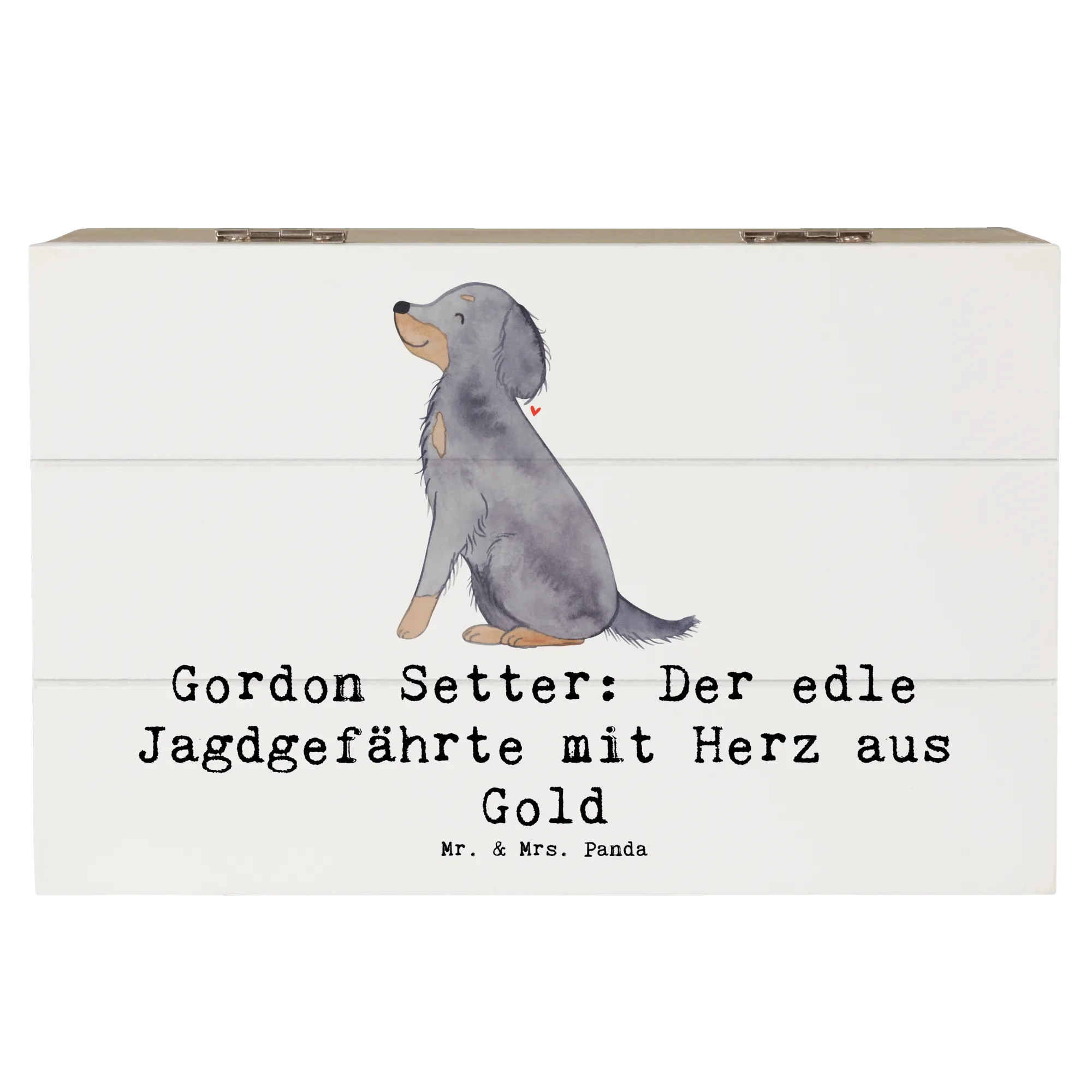 Die wunderschöne Holzkiste von Mr. & Mrs. Panda mit dem Motiv "Gordon Setter: Der edle Jagdgefährte mit Herz aus Gold" ist das perfekte Geschenk für alle Hundeliebhaber und Besitzer dieser edlen Rasse. Diese Erinnerungskiste bietet nicht nur genug Platz für all die kleinen Schätze und Erinnerungen, die das Leben so besonders machen, sondern bringt auch das Herz eines jeden Gordon Setter Fans zum Strahlen. Ob als Aufbewahrungsort für Fotos, Erinnerungen an die Kindheit oder als Dekokiste für besondere Anlässe, diese Holzkiste ist ein wahres Multitalent!