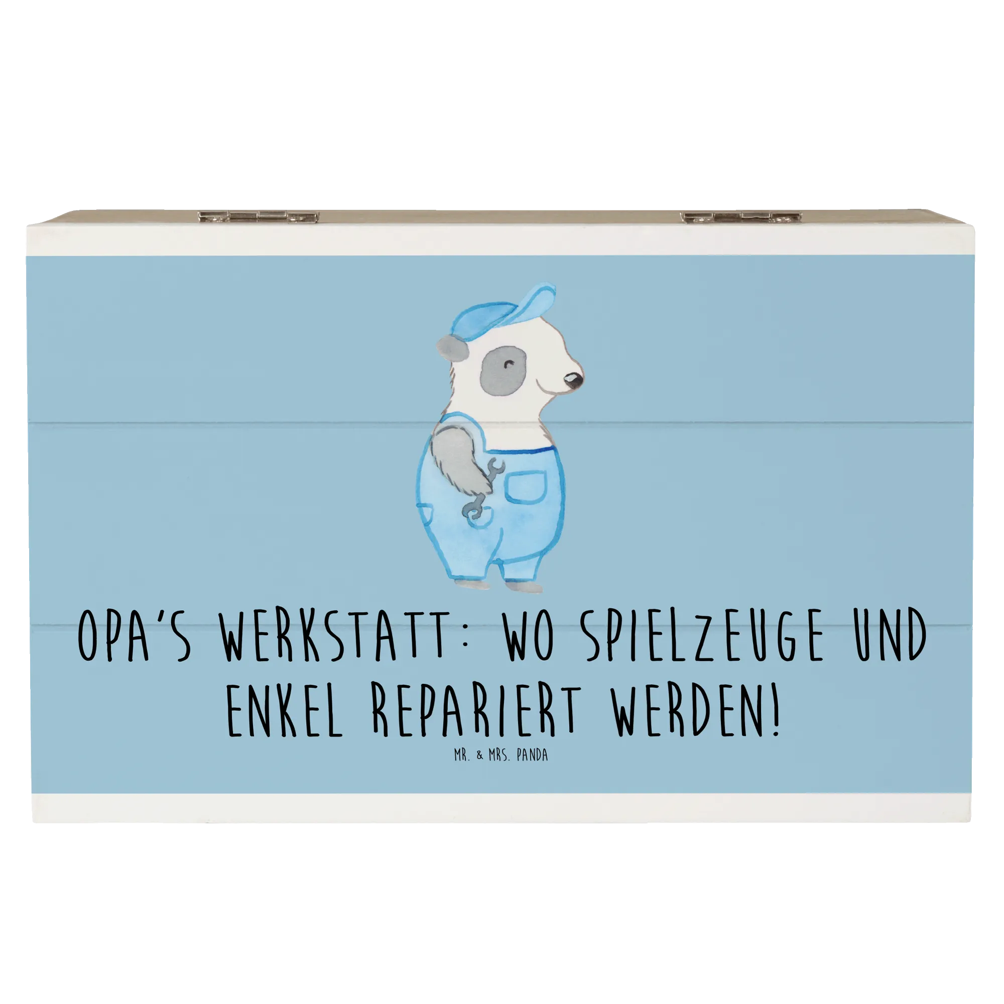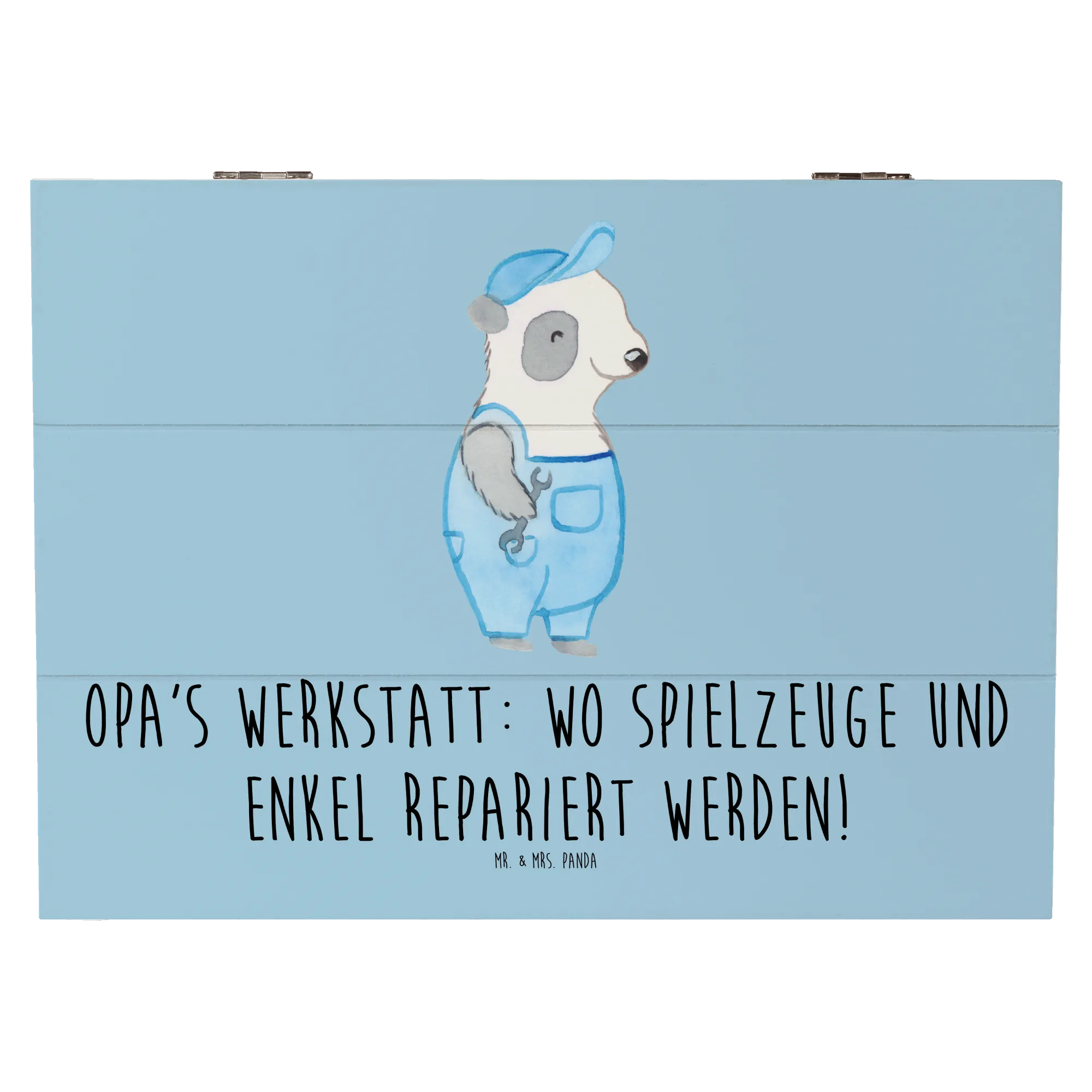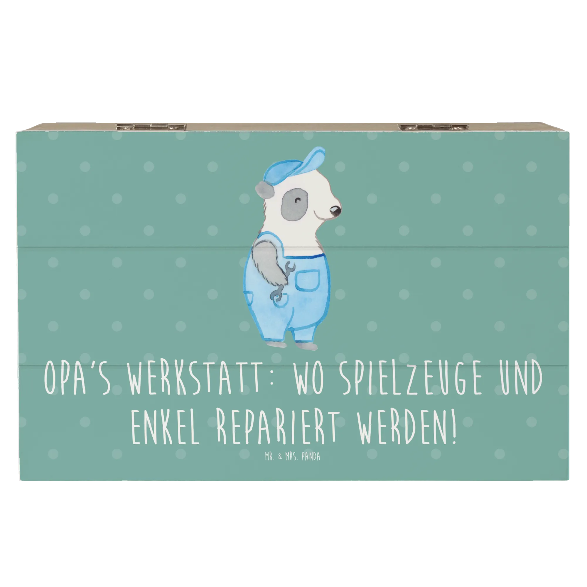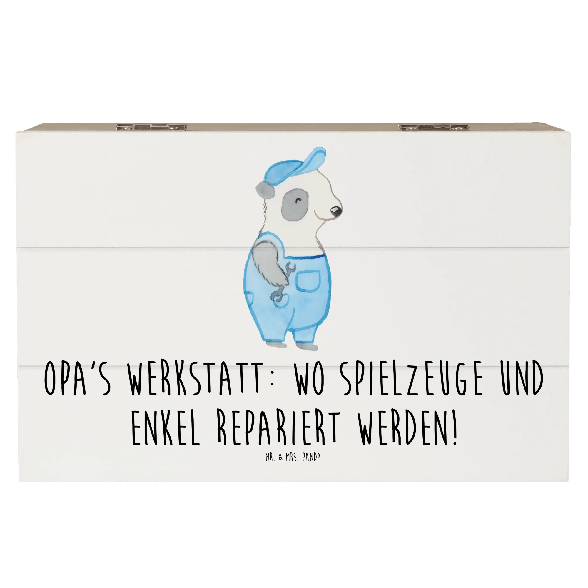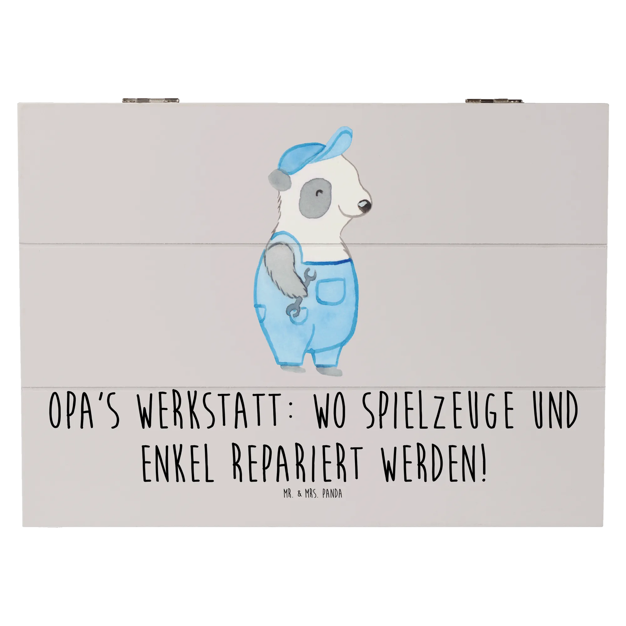 Die wunderschöne Holzkiste von Mr. & Mrs. Panda mit dem Motiv "Opa's Werkstatt: wo Spielzeuge und Enkel repariert werden!" ist das perfekte Geschenk für Großeltern und Enkelkinder. Diese zauberhafte Kiste ist nicht nur ein echter Hingucker, sondern auch ein praktischer Aufbewahrungsort für all die kostbaren Schätze, die im Laufe der Jahre gesammelt werden. Egal ob Fotos, Erinnerungsstücke oder kleine Spielzeuge – hier finden sie einen sicheren Platz.