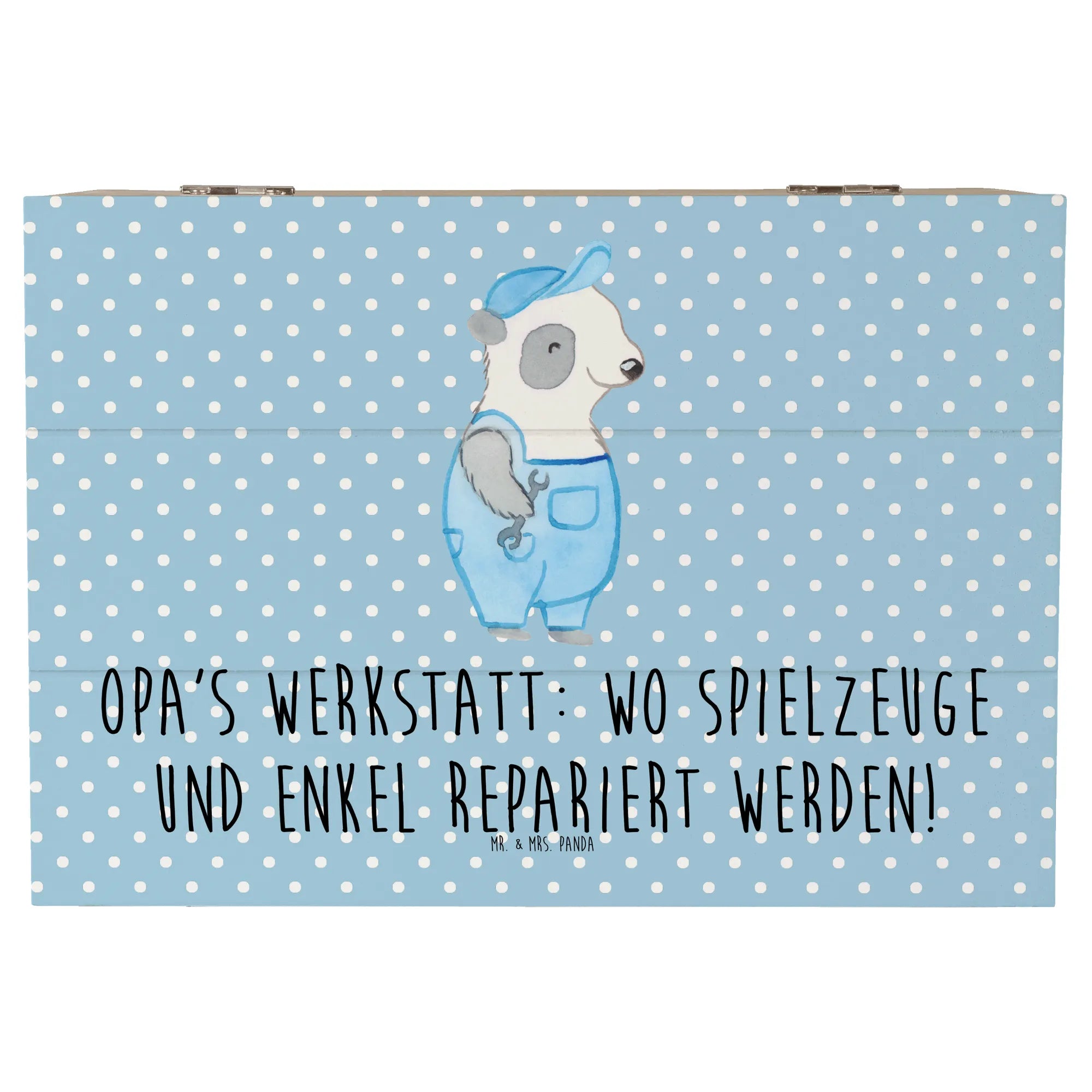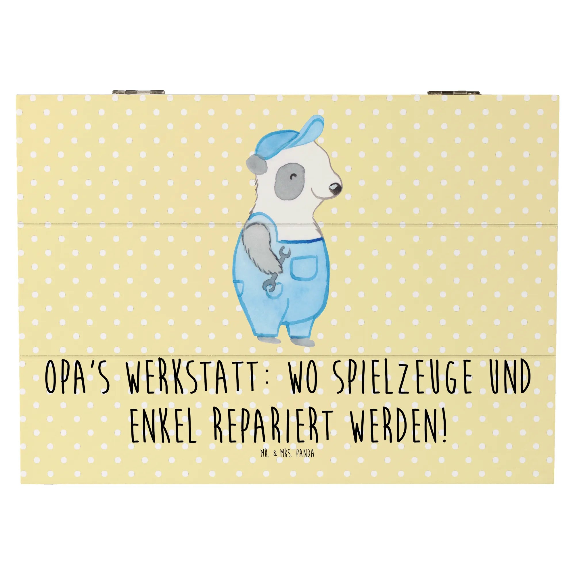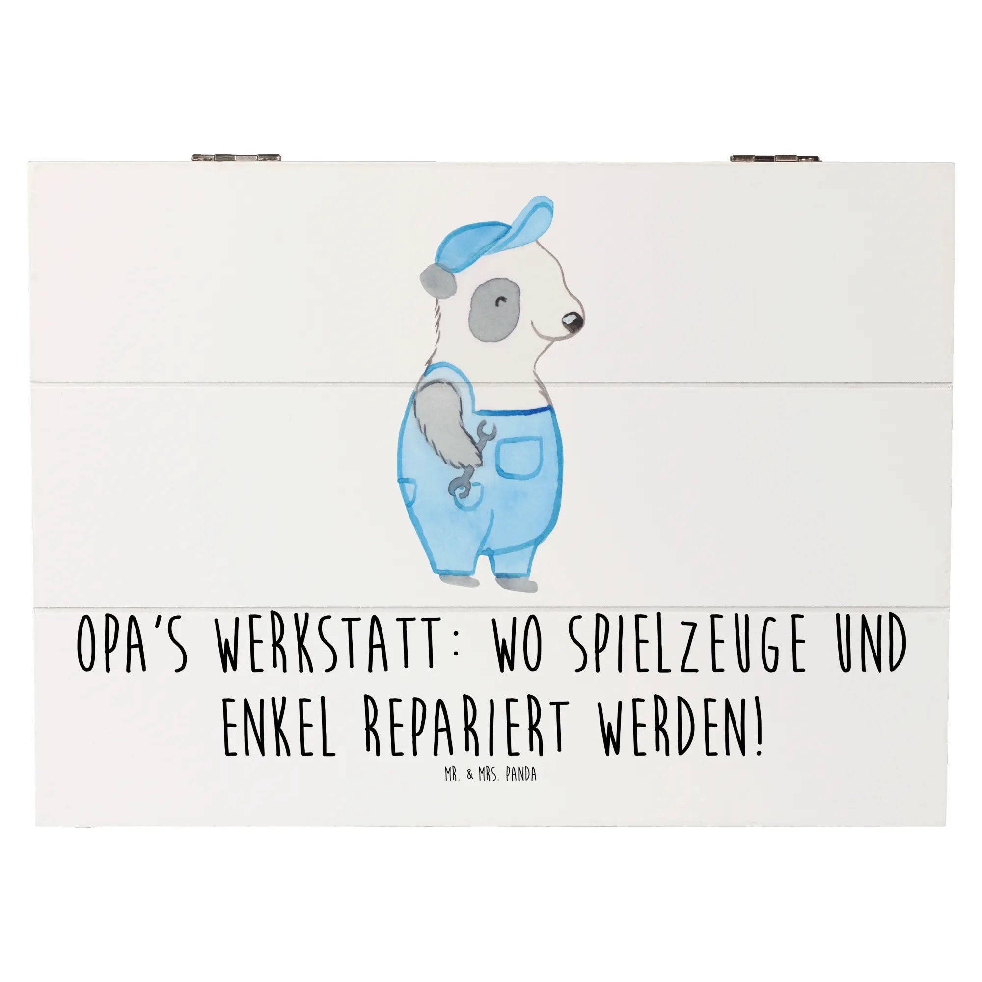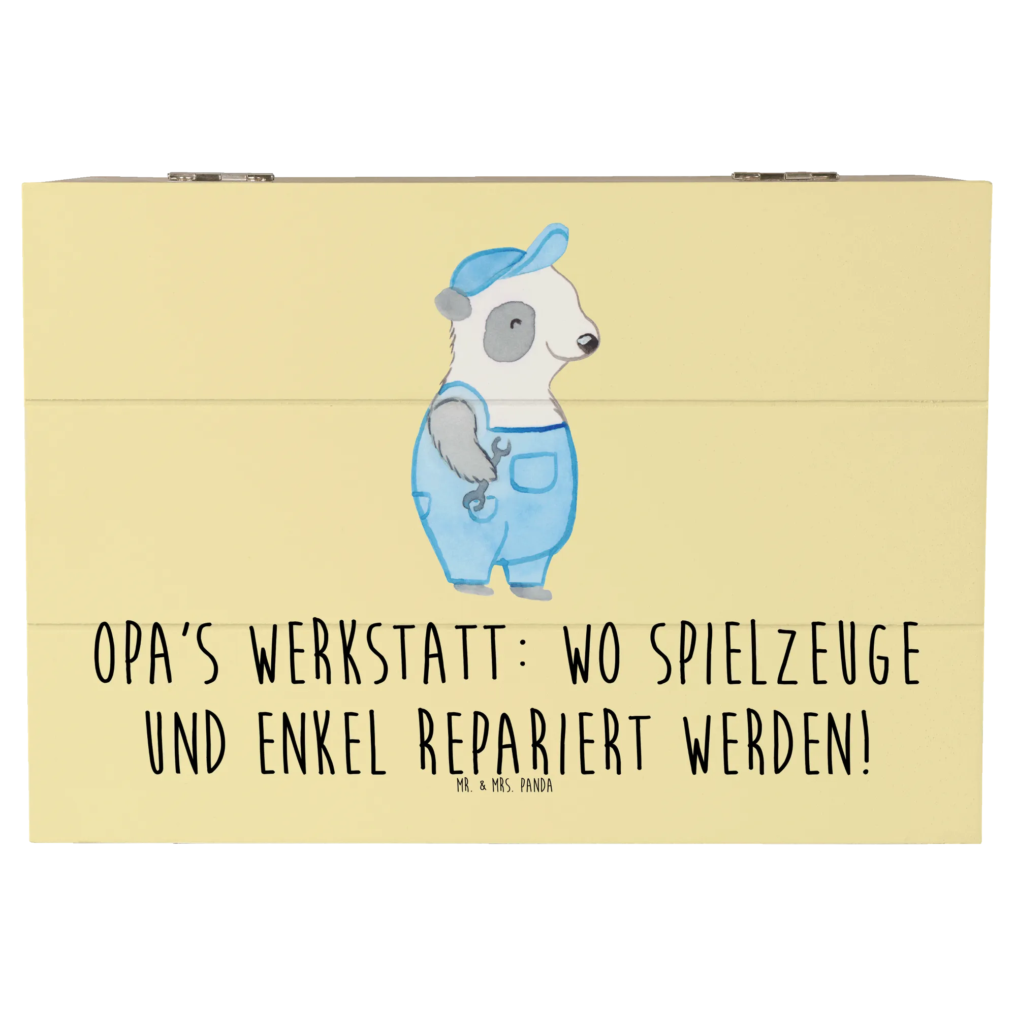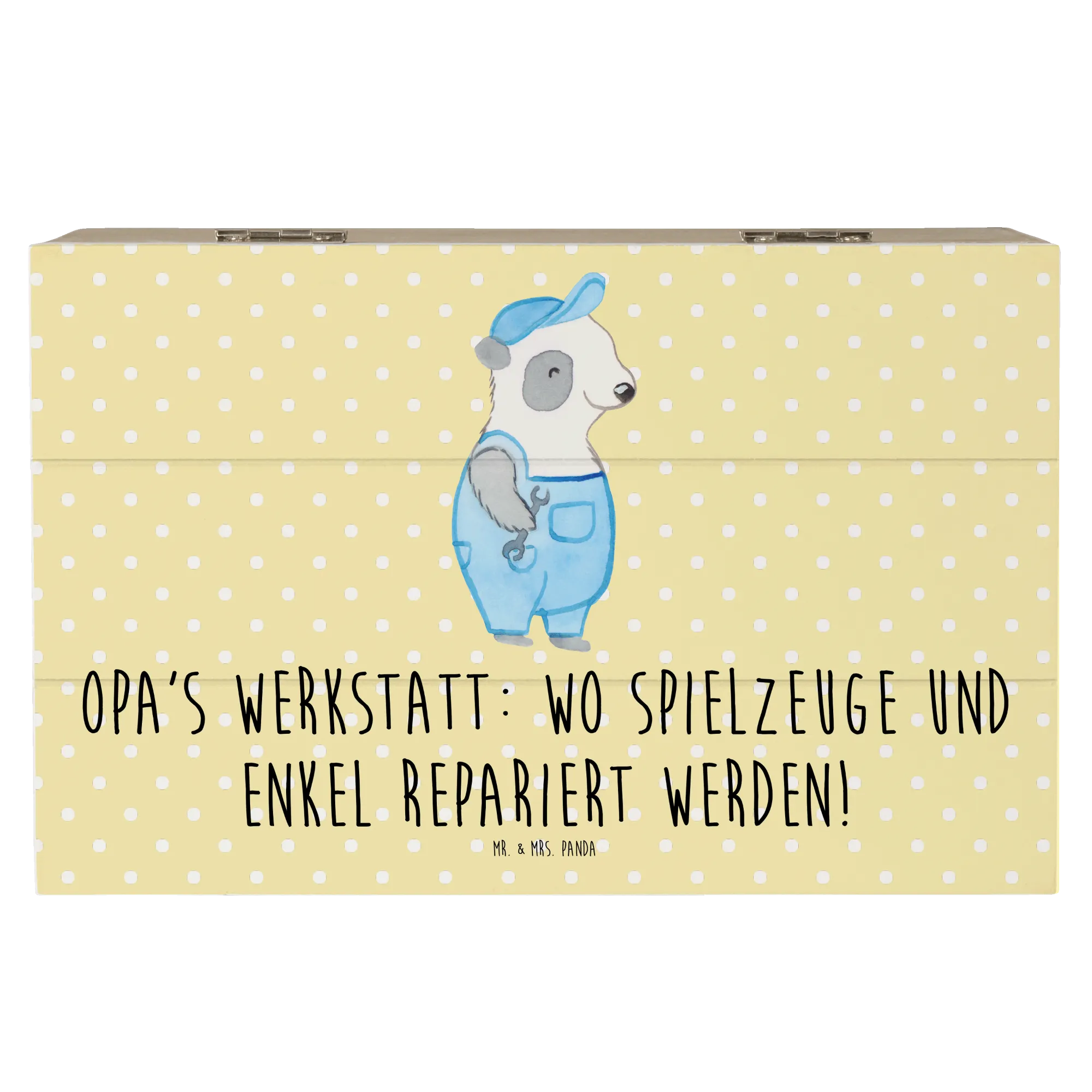 Die wunderschöne Holzkiste von Mr. & Mrs. Panda mit dem Motiv "Opa's Werkstatt: wo Spielzeuge und Enkel repariert werden!" ist das perfekte Geschenk für Großeltern und Enkelkinder. Diese zauberhafte Kiste ist nicht nur ein echter Hingucker, sondern auch ein praktischer Aufbewahrungsort für all die kostbaren Schätze, die im Laufe der Jahre gesammelt werden. Egal ob Fotos, Erinnerungsstücke oder kleine Spielzeuge – hier finden sie einen sicheren Platz.