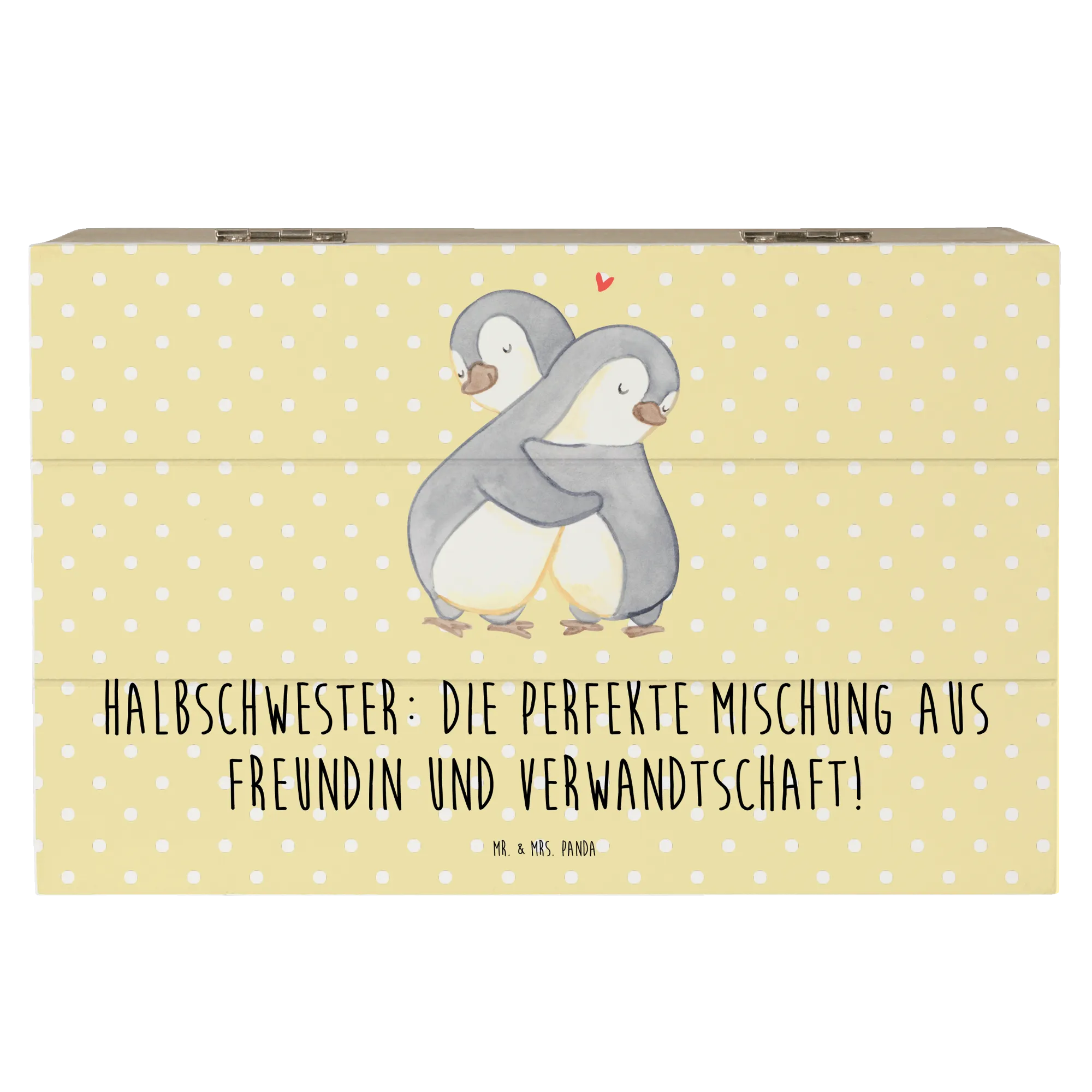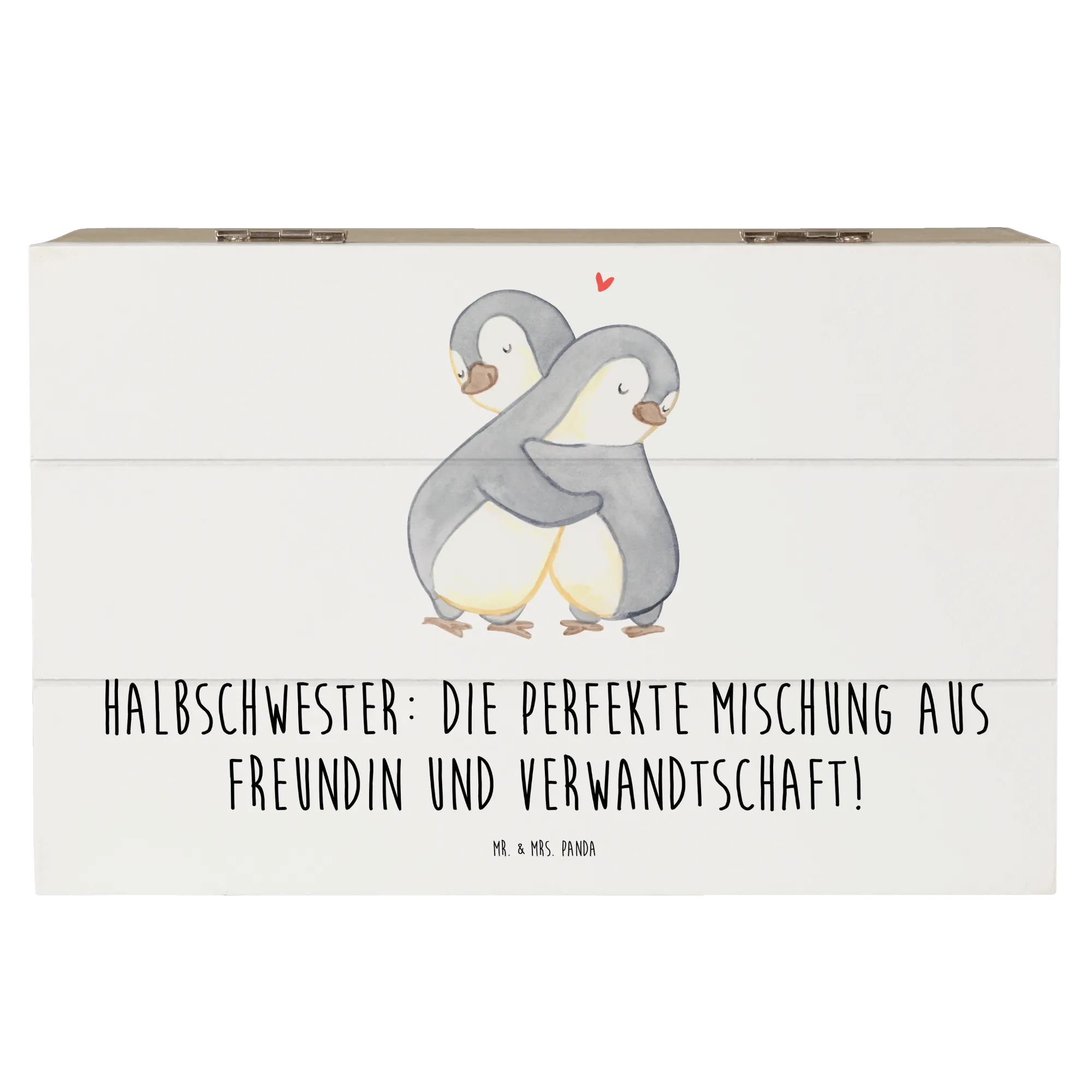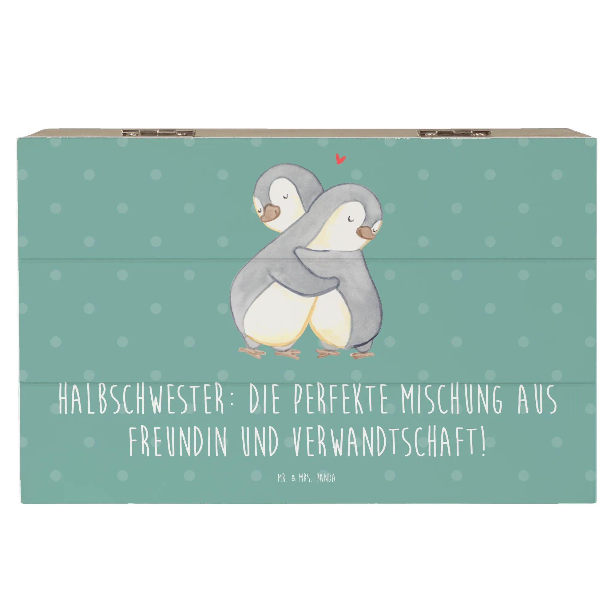 Die gesteigerte Bedeutung von Halbschwestern in modernen Familienstrukturen spiegelt sich in der besonderen Gestaltung dieser Kiste wider. Schenke Ihrer Halbschwester ein Stück Liebe und Erinnerungen mit dieser einzigartigen dekorativen Schatzkiste von Mr. & Mrs. Panda!