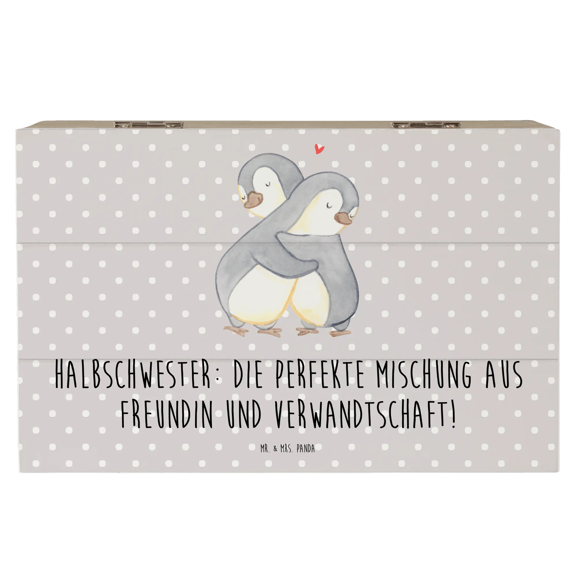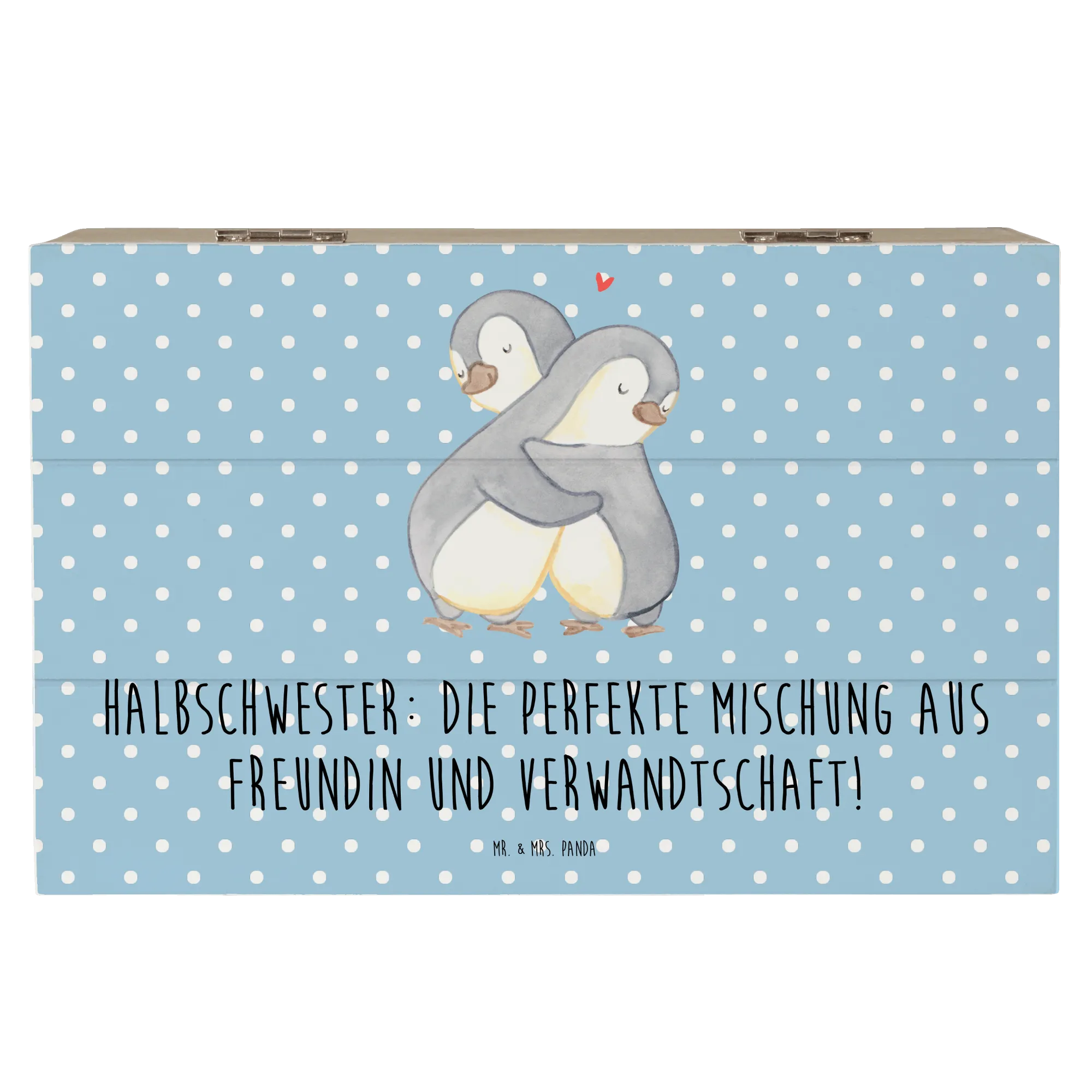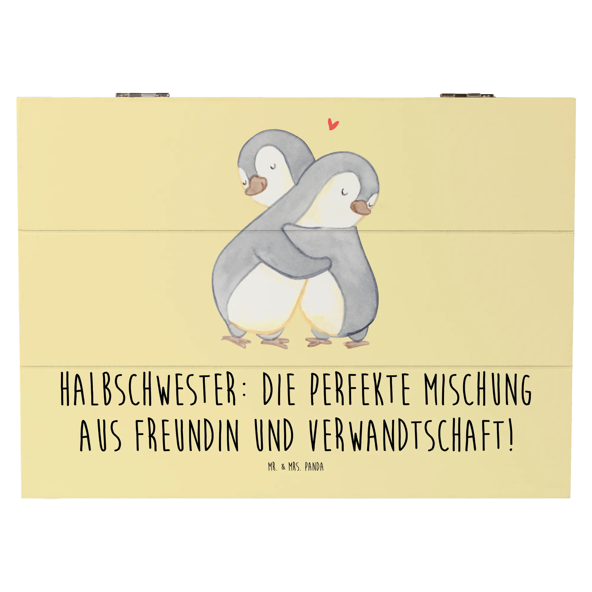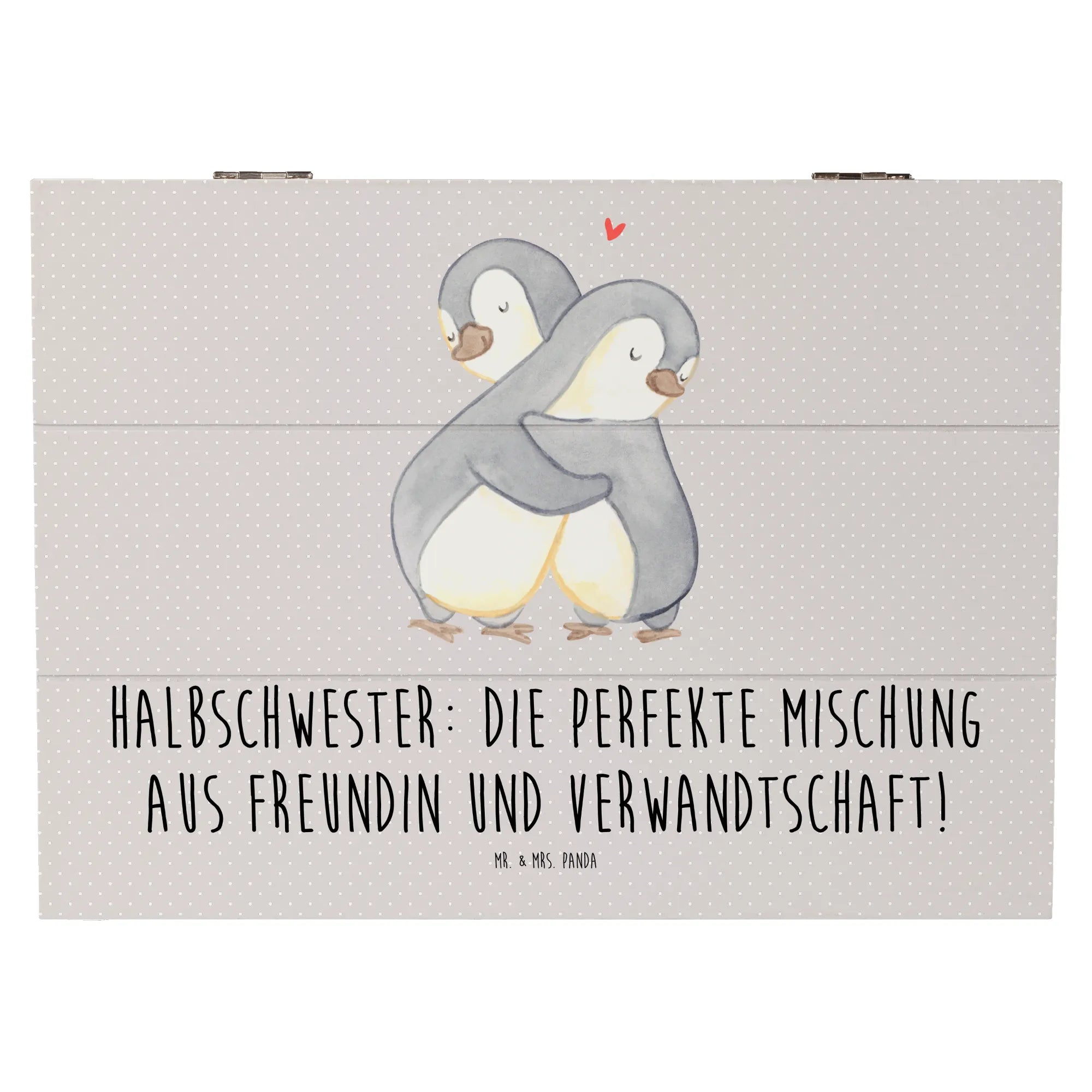 Die gesteigerte Bedeutung von Halbschwestern in modernen Familienstrukturen spiegelt sich in der besonderen Gestaltung dieser Kiste wider. Schenke Ihrer Halbschwester ein Stück Liebe und Erinnerungen mit dieser einzigartigen dekorativen Schatzkiste von Mr. & Mrs. Panda!