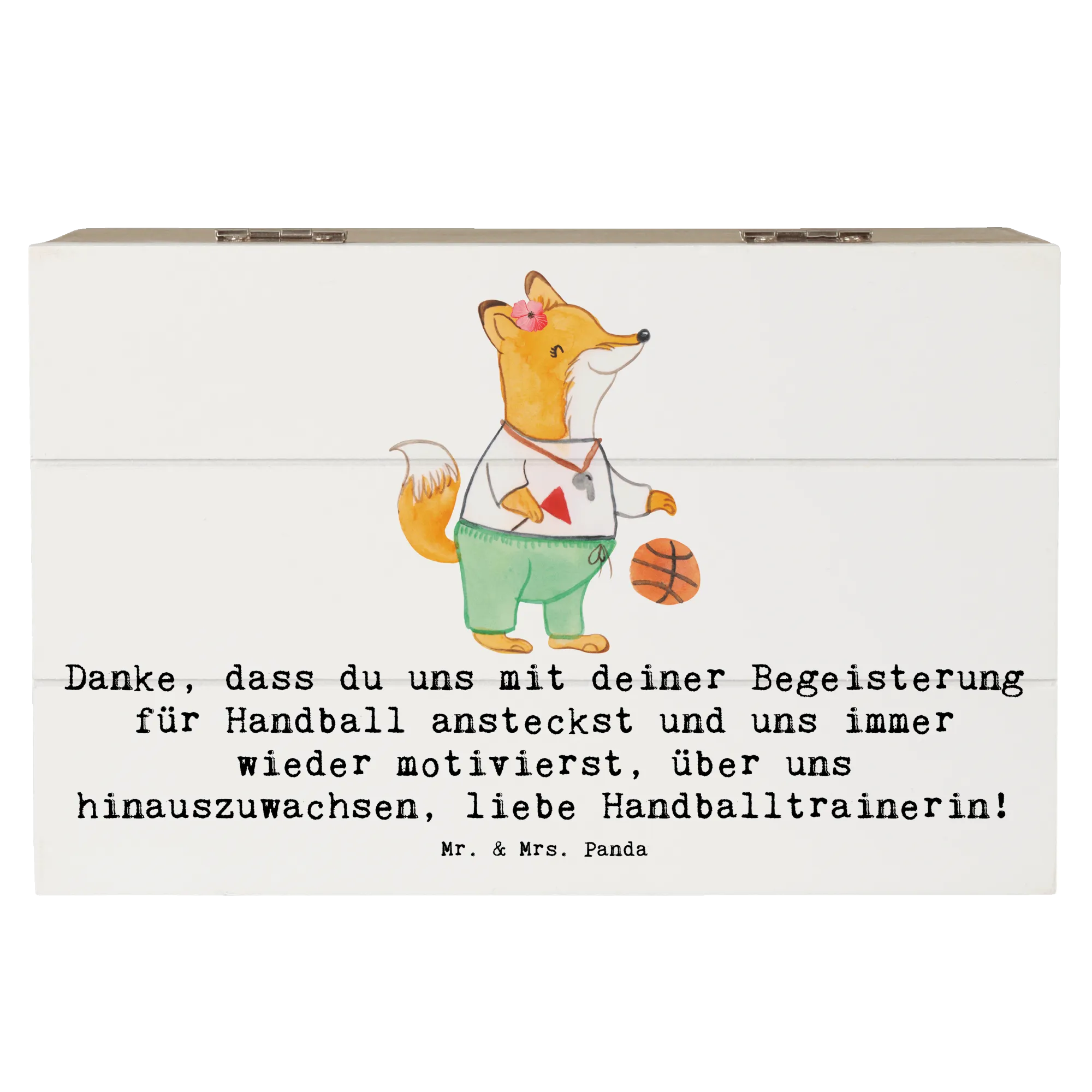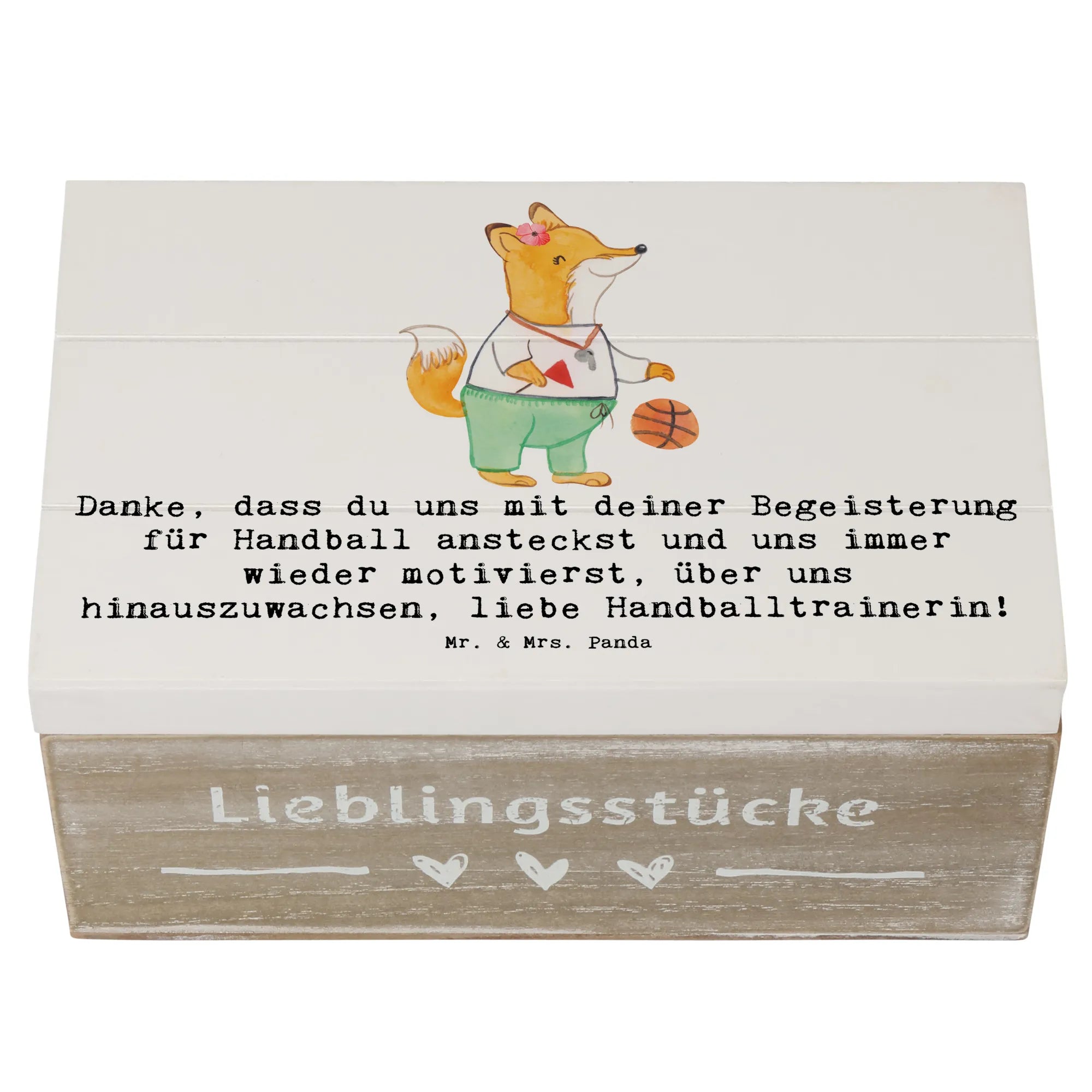 Mit dieser einzigartigen Holzkiste von Mr. & Mrs. Panda zeigst du deiner Handball Trainerin nicht nur, wie sehr du ihre Arbeit schätzt, sondern verschenkst auch einen Teil deiner Erinnerungen, die gemeinsam mit ihr geschaffen wurden. Lass sie wissen, wie wichtig sie für dich und dein Team ist!