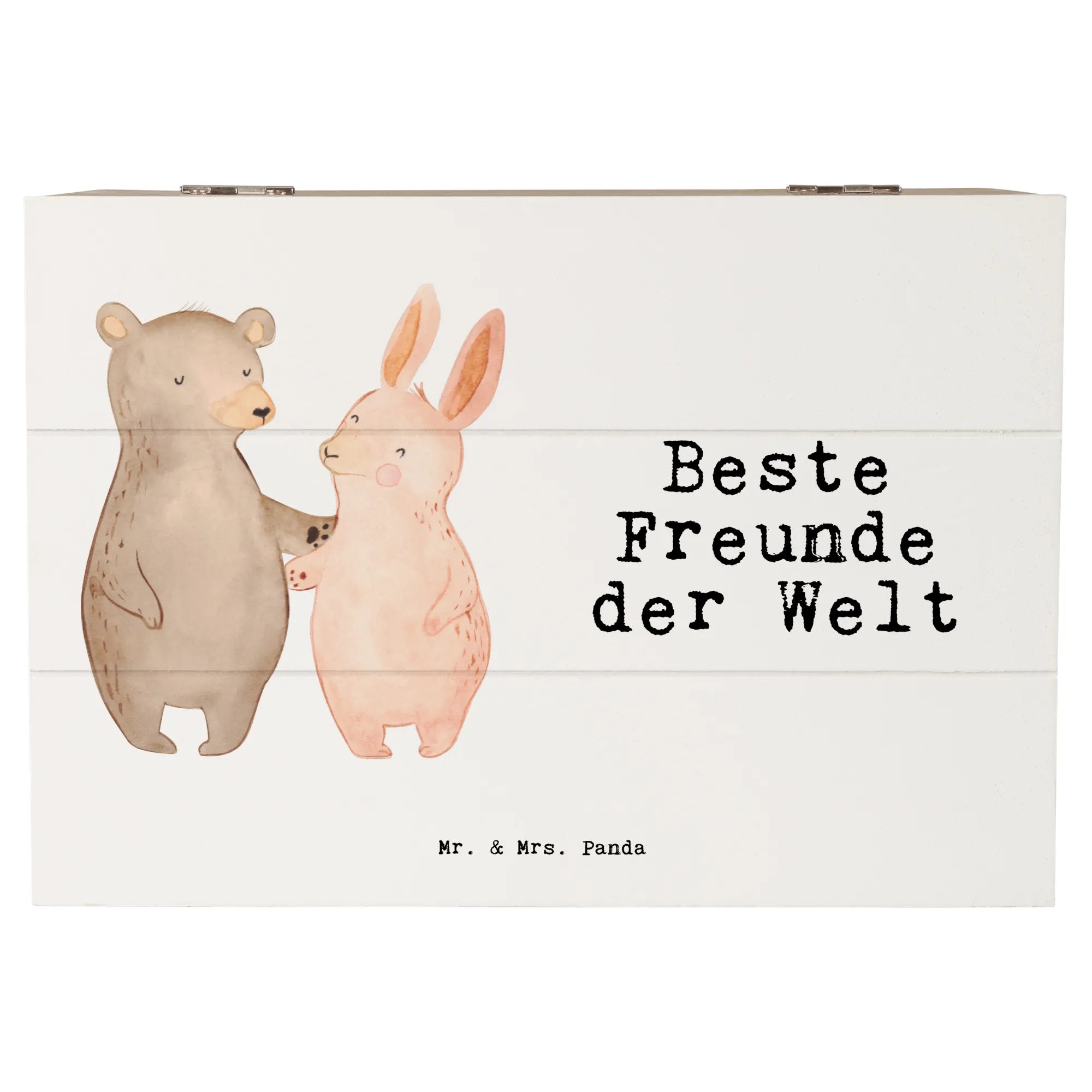 Verschenke Freude, zeige deine Wertschätzung und halte die besonderen Momente im Leben fest – mit der Holzkiste "Hase Beste Freunde der Welt" von Mr. & Mrs. Panda.