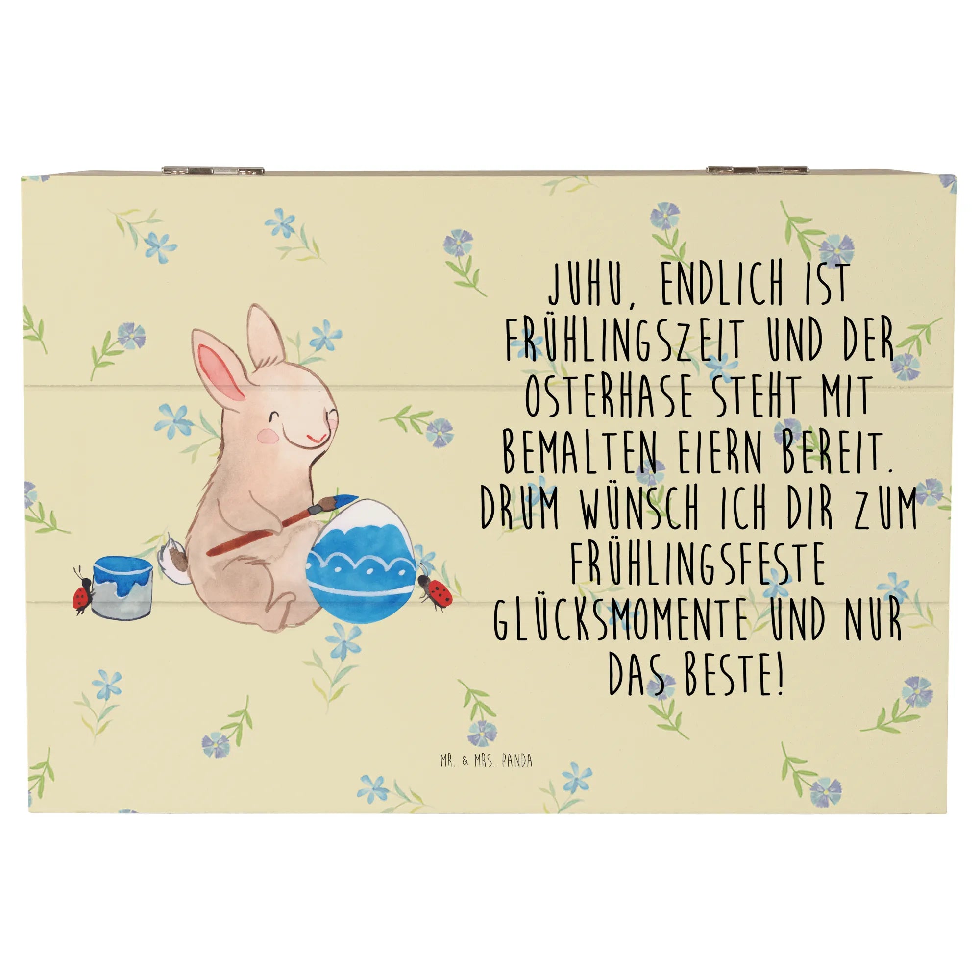 Die tolle Ostern - Kollektion von Mr. & Mrs. Panda hält noch viele weitere niedliche Motive für Dich bereit, die das Osterfest zu etwas ganz Besonderem machen. Ob als Erinnerungskiste für festliche Anlässe wie Kommunion oder Konfirmation – diese Kiste ist ein echtes Highlight! Achte darauf, die Kiste vorsichtig mit einem feuchten Tuch abzuwischen, um sie in einem optimalen Zustand zu halten.