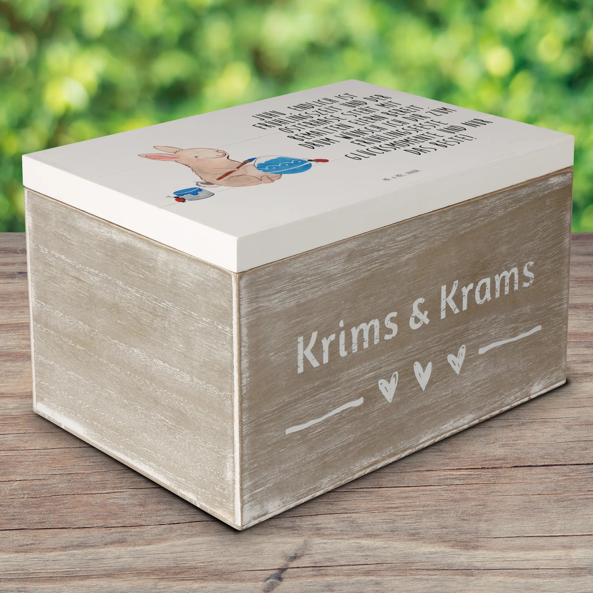 Die wunderschöne Holzkiste Hase Marienkäfer von Mr. & Mrs. Panda ist das perfekte Geschenk für Ostern! Sie begeistert mit einem liebevollen Motiv, das gleichzeitig das fröhliche Osterfest und die ersten Anzeichen des Frühlings in Dein Zuhause bringt. Diese Erinnerungskiste ist nicht nur praktisch, sondern auch ein echter Hingucker. Der süße Hase, der mit flinken Pinselstrichen ein Osterei bemalt, wird von kleinen, charmanten Marienkäfern unterstützt. Damit ist die Kiste nicht nur eine einfache Aufbewahrungsbox, sondern ein märchenhaft schönes Dekostück, das Kinder und Erwachsene gleichermaßen verzaubert.