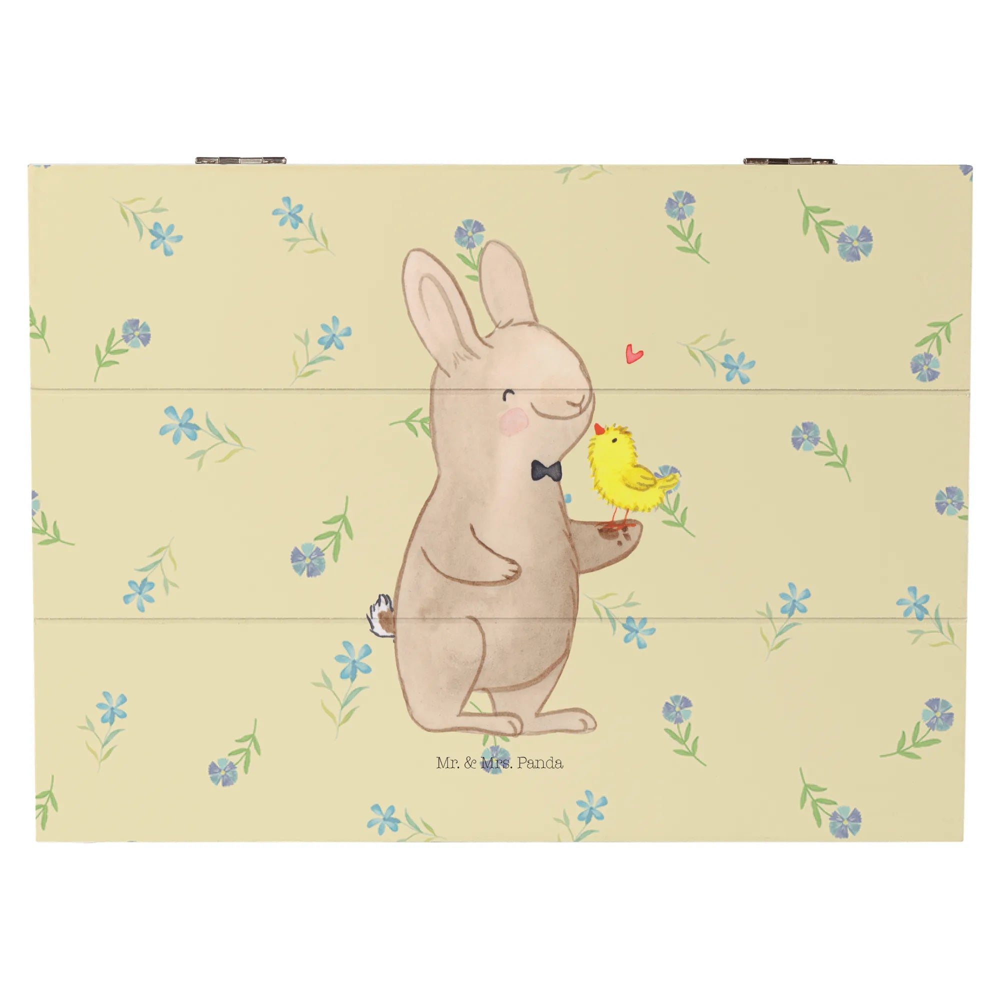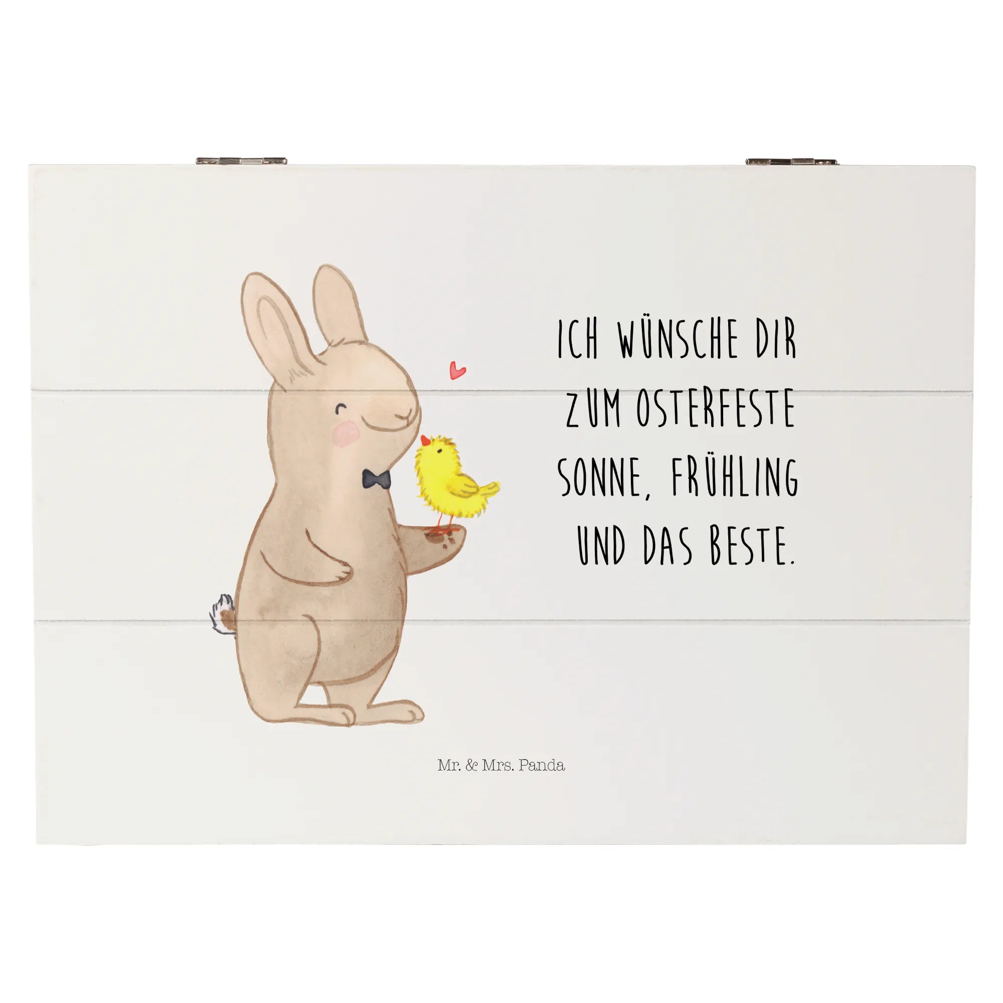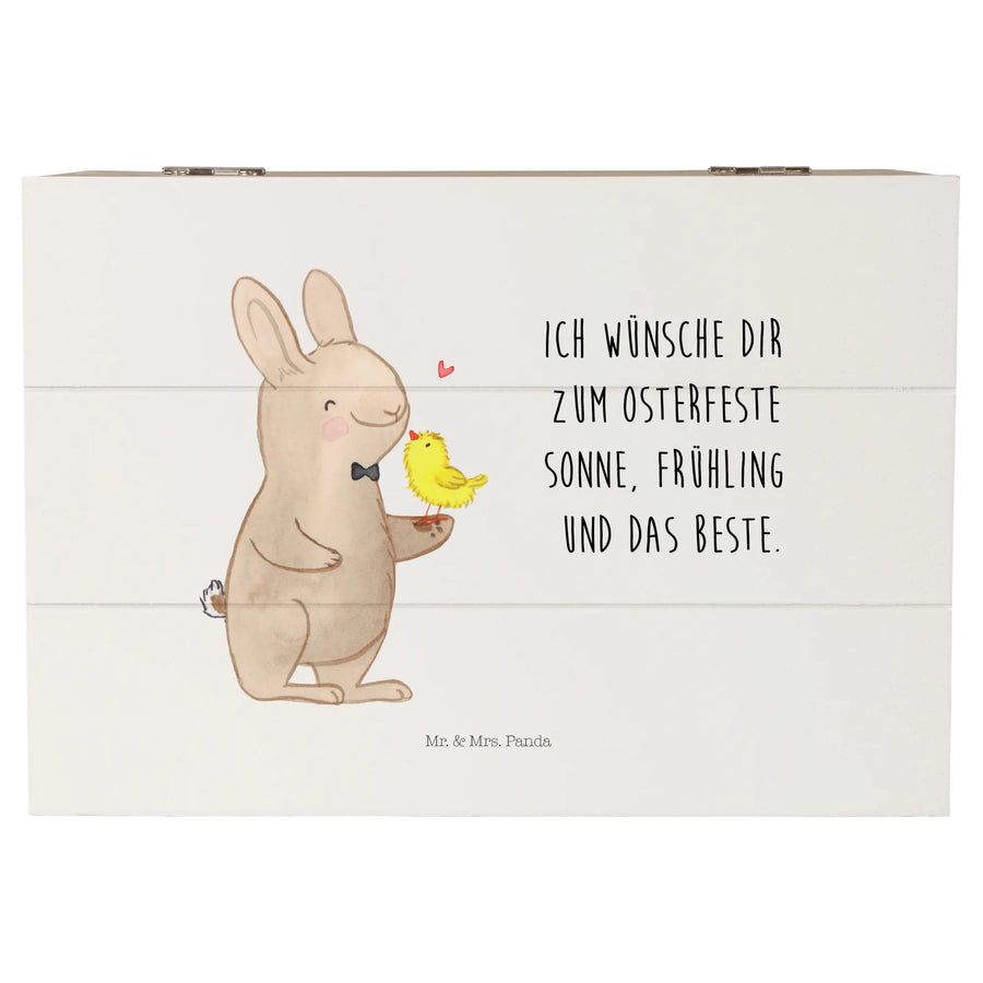 Die wunderschöne Holzkiste mit dem niedlichen Motiv "Hase mit Küken" aus der Ostern-Kollektion von Mr. & Mrs. Panda ist das ideale Geschenk für dich und deine Lieben! Sie bringt fröhliche Osterstimmung und ist gleichzeitig eine praktische Lösung zur Aufbewahrung von besonderen Erinnerungen.