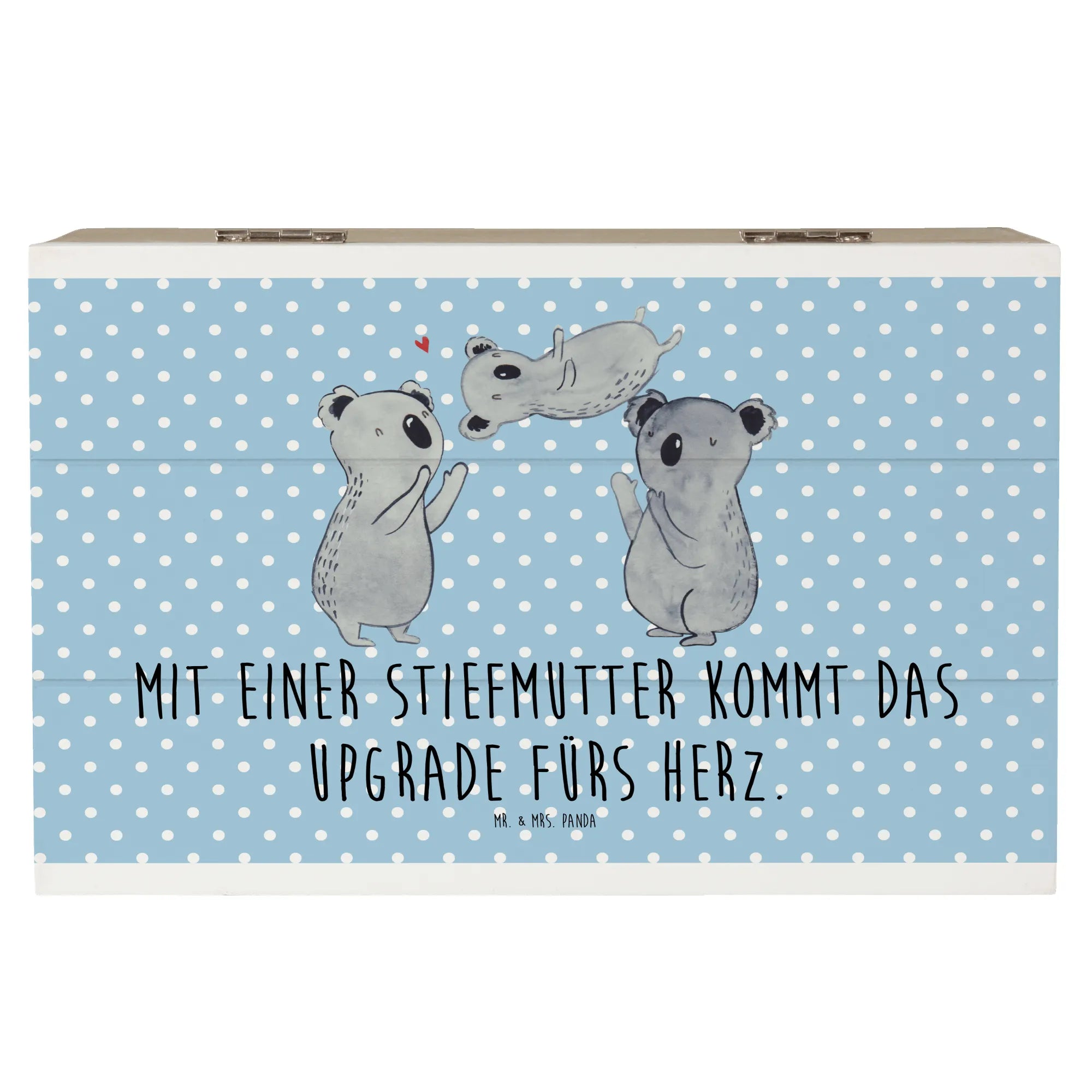 Die wunderschöne Holzkiste von Mr. & Mrs. Panda ist das perfekte Geschenk für jede Stiefmutter in deiner Familie. Wenn du auf der Suche nach einer einzigartigen Aufbewahrungsbox für Erinnerungen und Schätze bist, dann hast du mit dieser Erinnerungskiste genau das Richtige gefunden.