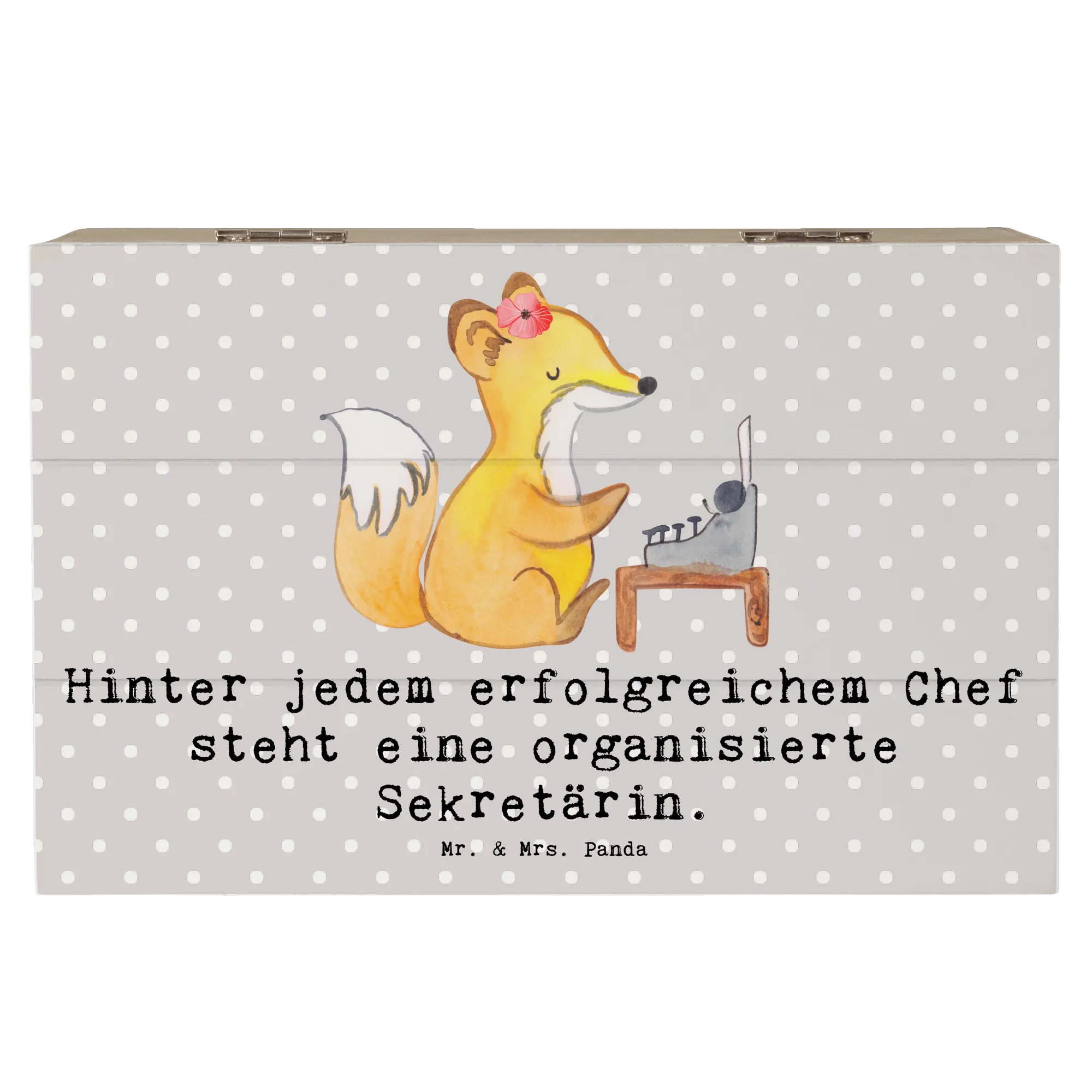 Holzkiste Hinter jedem erfolgreichem Chef steht eine organisierte Sekretärin. - 22 x 15 cm - Grau Pastell