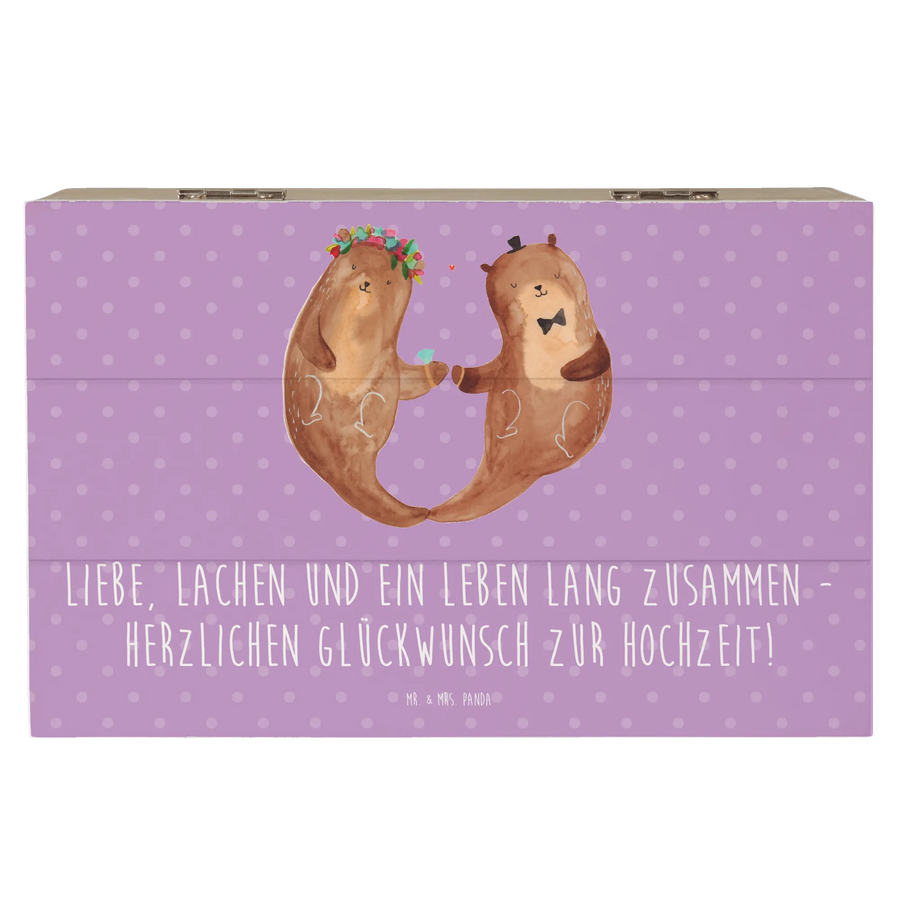 Details, die Freude machen: Die Kiste ist mit einem liebevollen Motiv und dem Hochzeits-Spruch bedruckt. Sie ist nicht personalisierbar, dafür hochwertig gestaltet und pflegeleicht mit einem feuchten Tuch zu reinigen. Entdecke die komplette Hochzeitskollektion von Mr. & Mrs. Panda für noch mehr romantische Ideen.