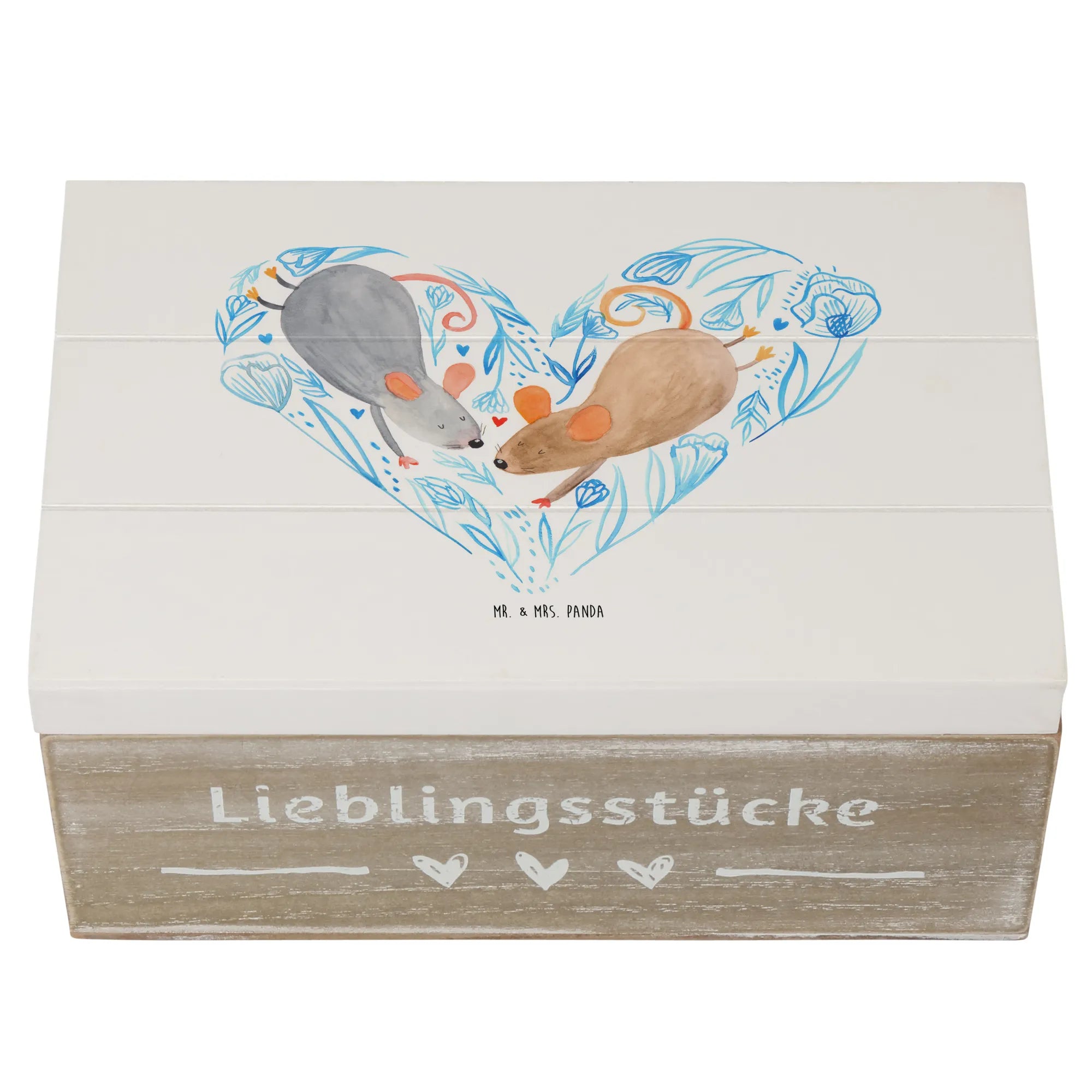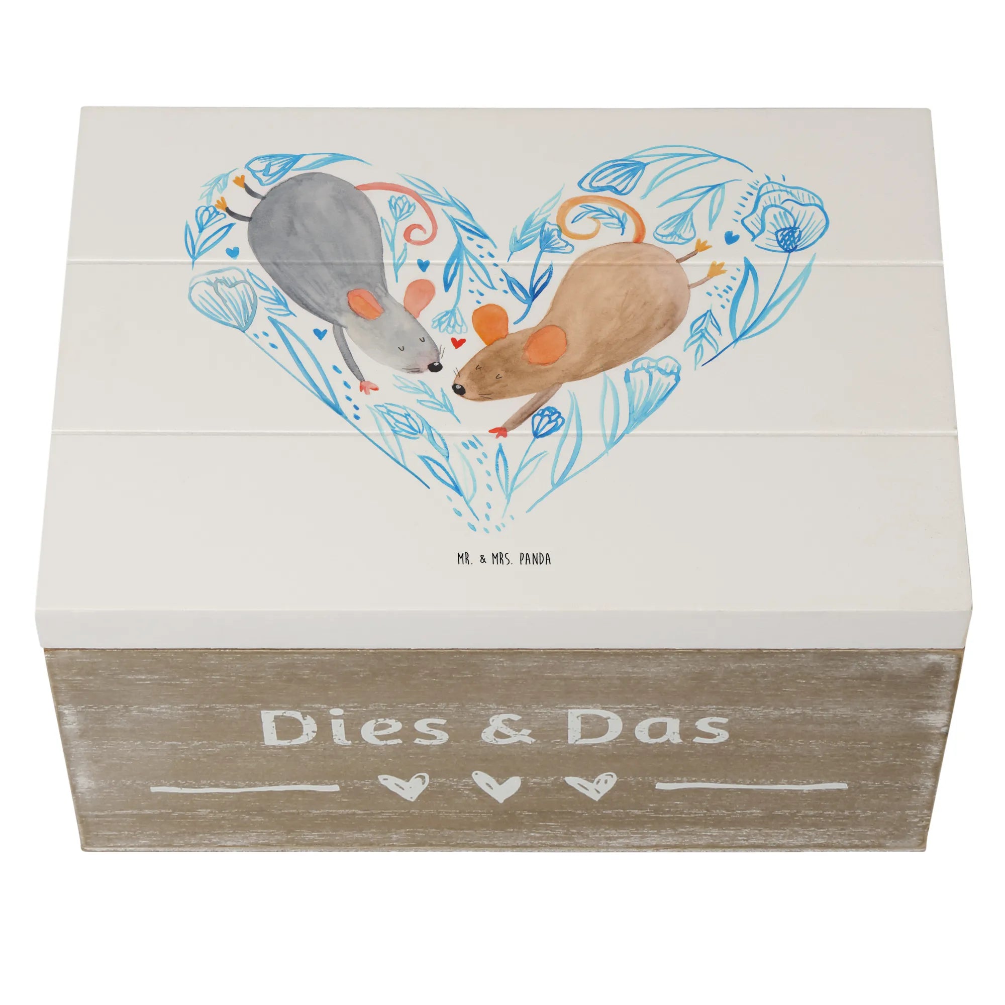 Bring einen Funken Liebe und unvergessliche Erinnerungen in dein Zuhause – mit der Holzkiste Hochzeit Mäuse Herz von Mr. & Mrs. Panda.