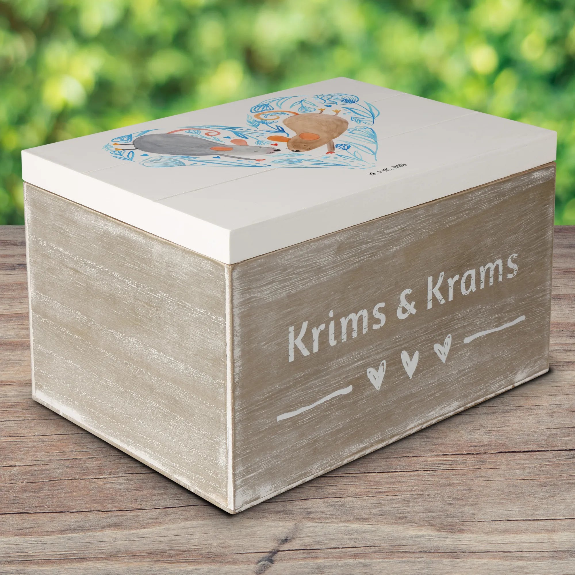 Entdecke die zauberhafte Holzkiste Hochzeit Mäuse Herz von Mr. & Mrs. Panda – das perfekte Geschenk für frisch Vermählte und verliebte Paare! Diese wunderschöne Kiste vereint Funktionalität und Design und ist ideal als Erinnerungskiste für all die besonderen Momente im Leben.