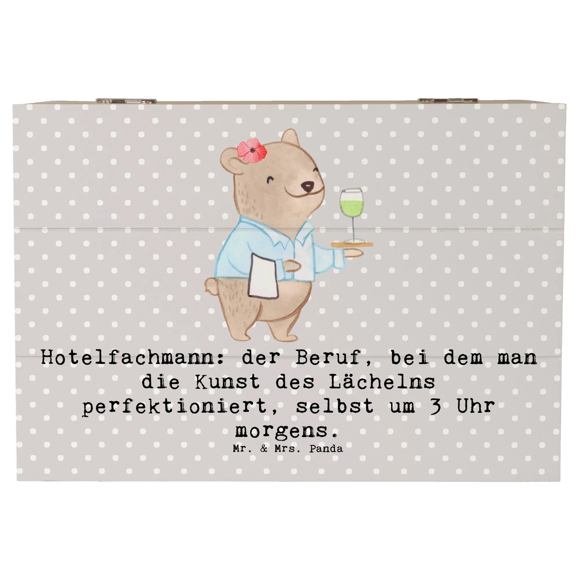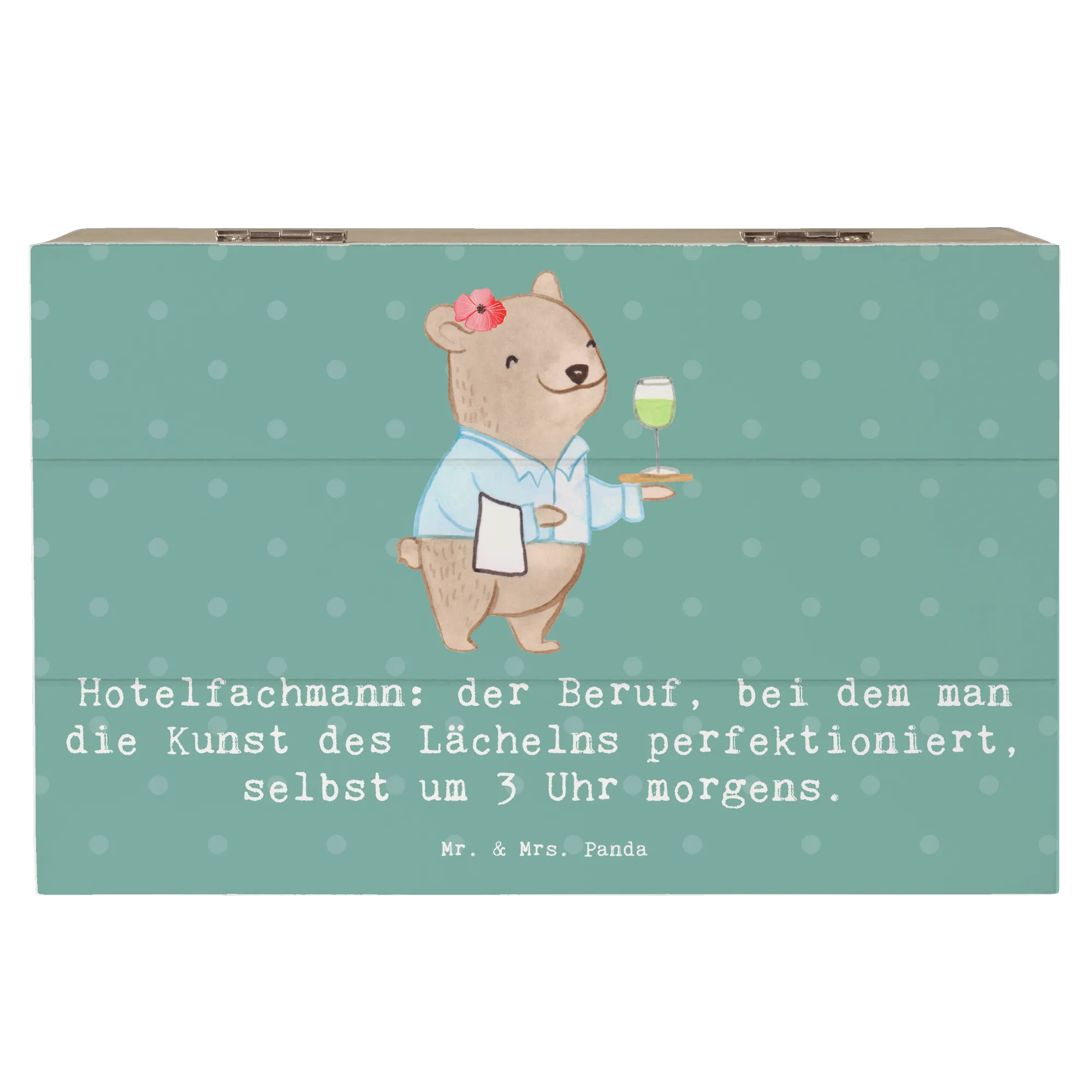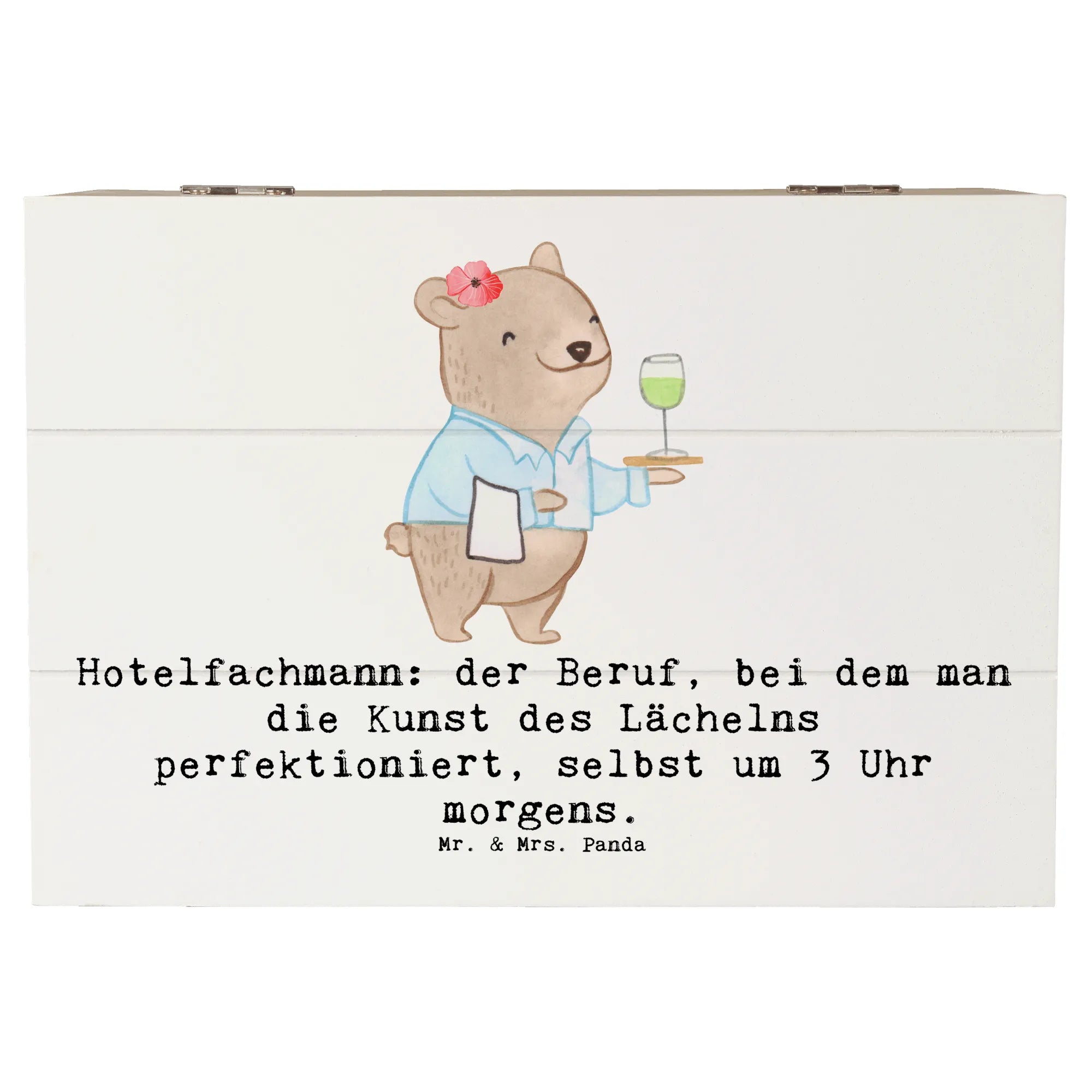 Die wunderschöne Holzkiste mit dem Motiv 'Hotelfachmann' von Mr. & Mrs. Panda ist das perfekte Geschenk für alle, die den Beruf eines Hotelfachmanns lieben und die Kunst des Lächelns perfektioniert haben.