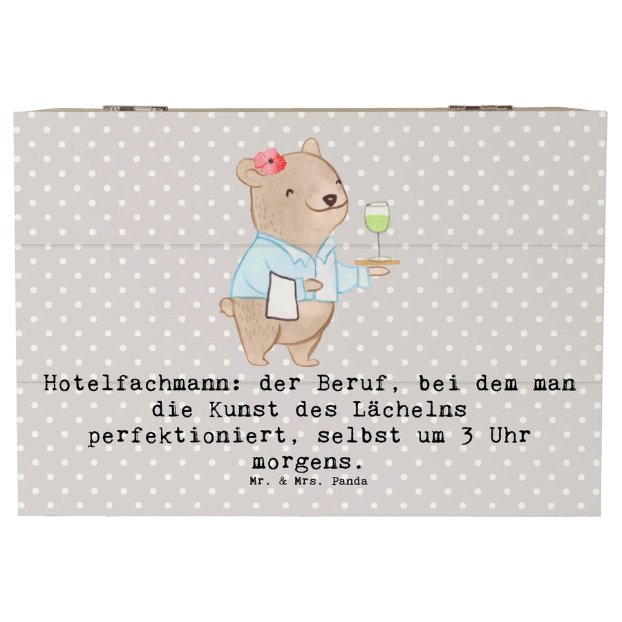 Holzkiste Hotelfachmann: der Beruf, bei dem man die Kunst des Lächelns perfektioniert, selbst um 3 Uhr morgens. - 22 x 15 cm - Grau Pastell