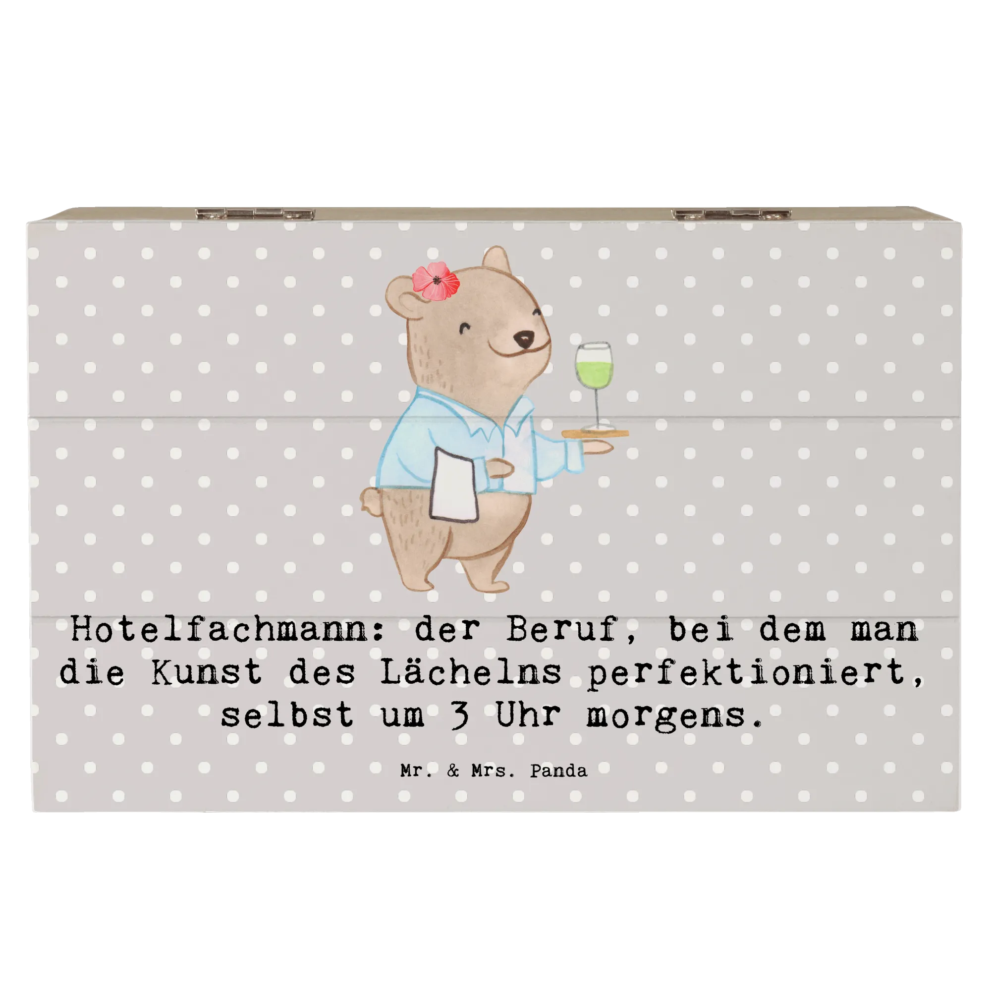 Die wunderschöne Holzkiste von Mr. & Mrs. Panda mit dem Motiv "Hotelfachmann" ist das perfekte Geschenk für alle, die in der gastfreundlichen Welt der Hotellerie arbeiten.