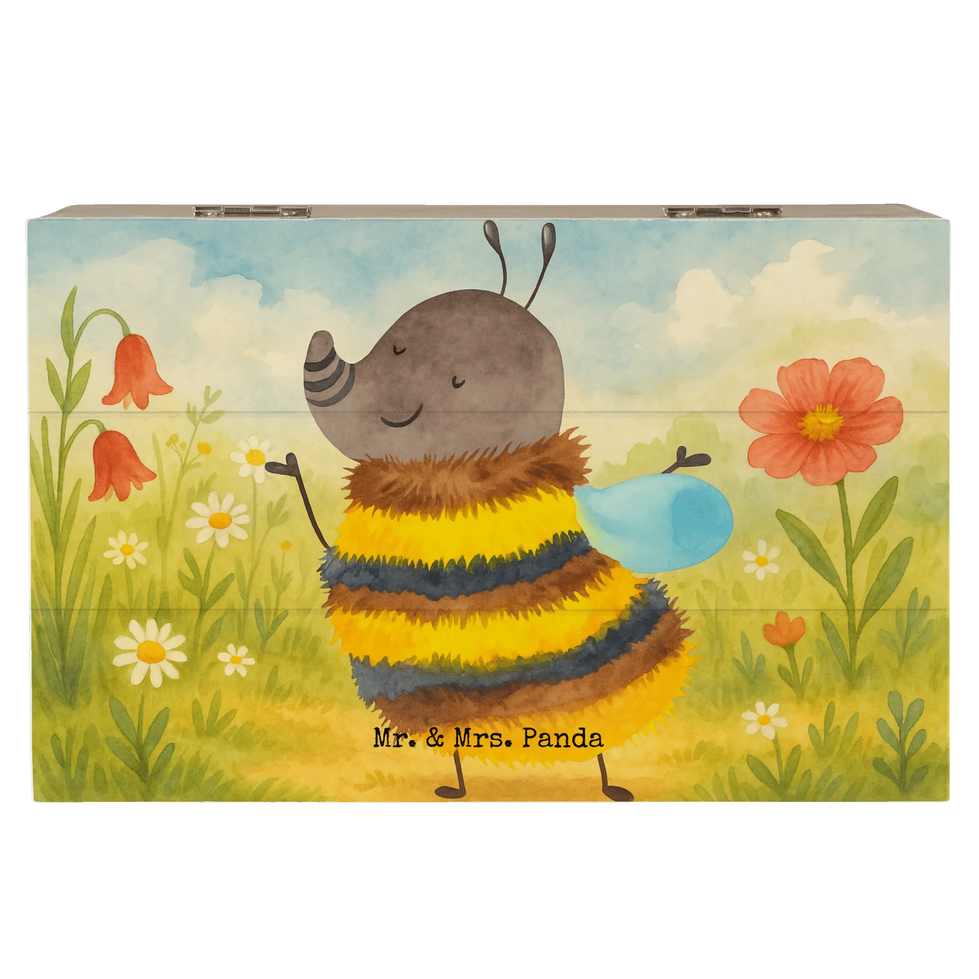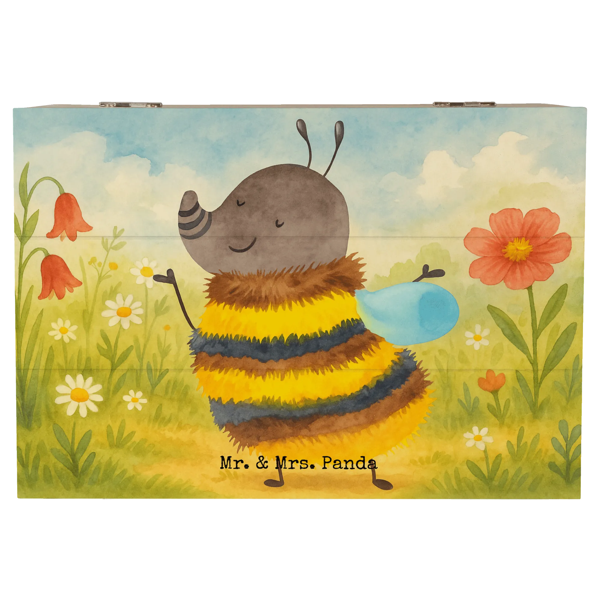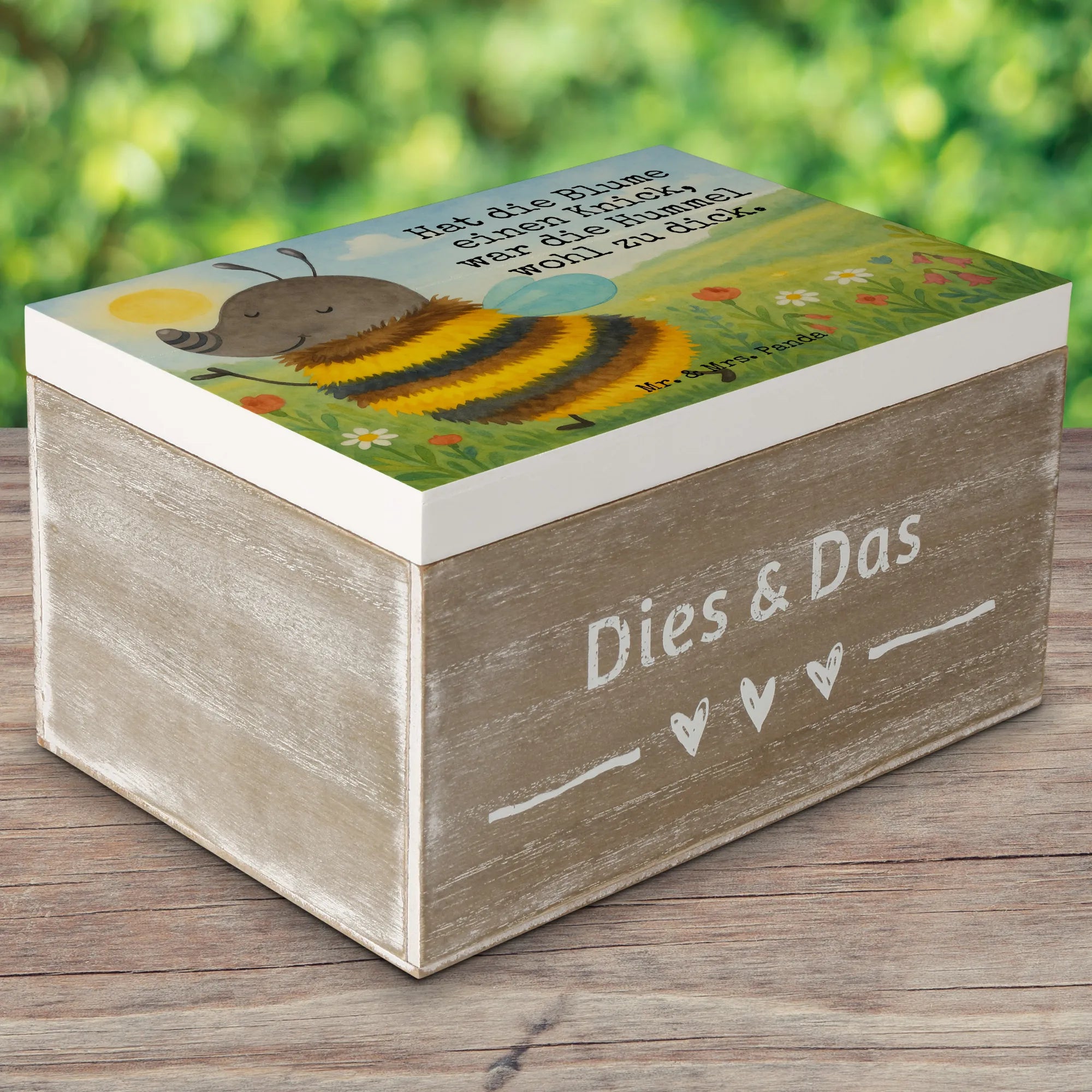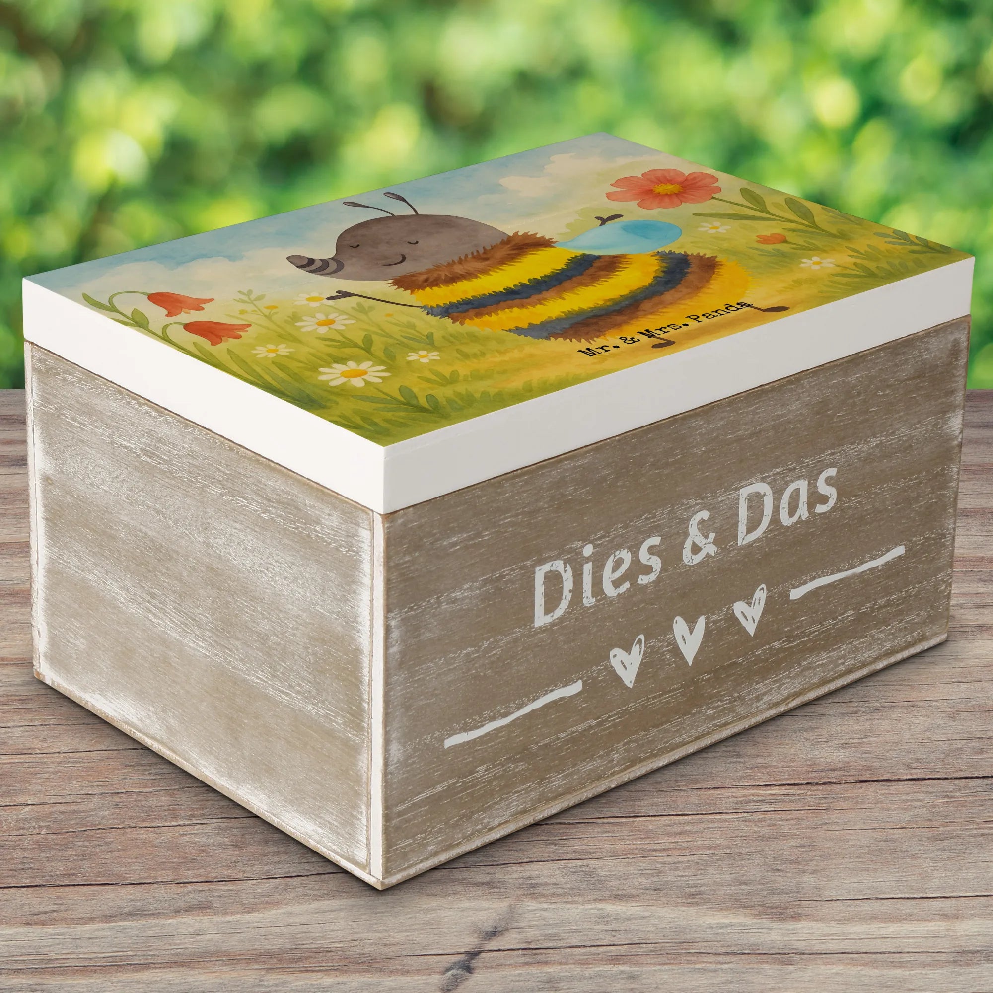 Holzkiste Hummel flauschig Design - 22 x 15 cm - mit Spruch