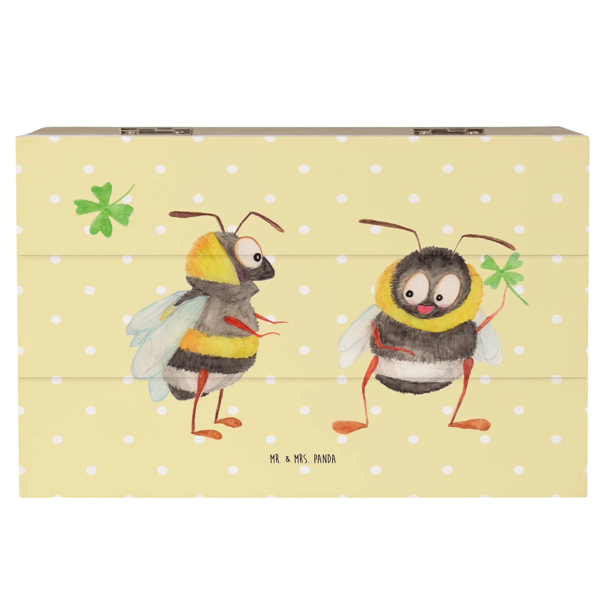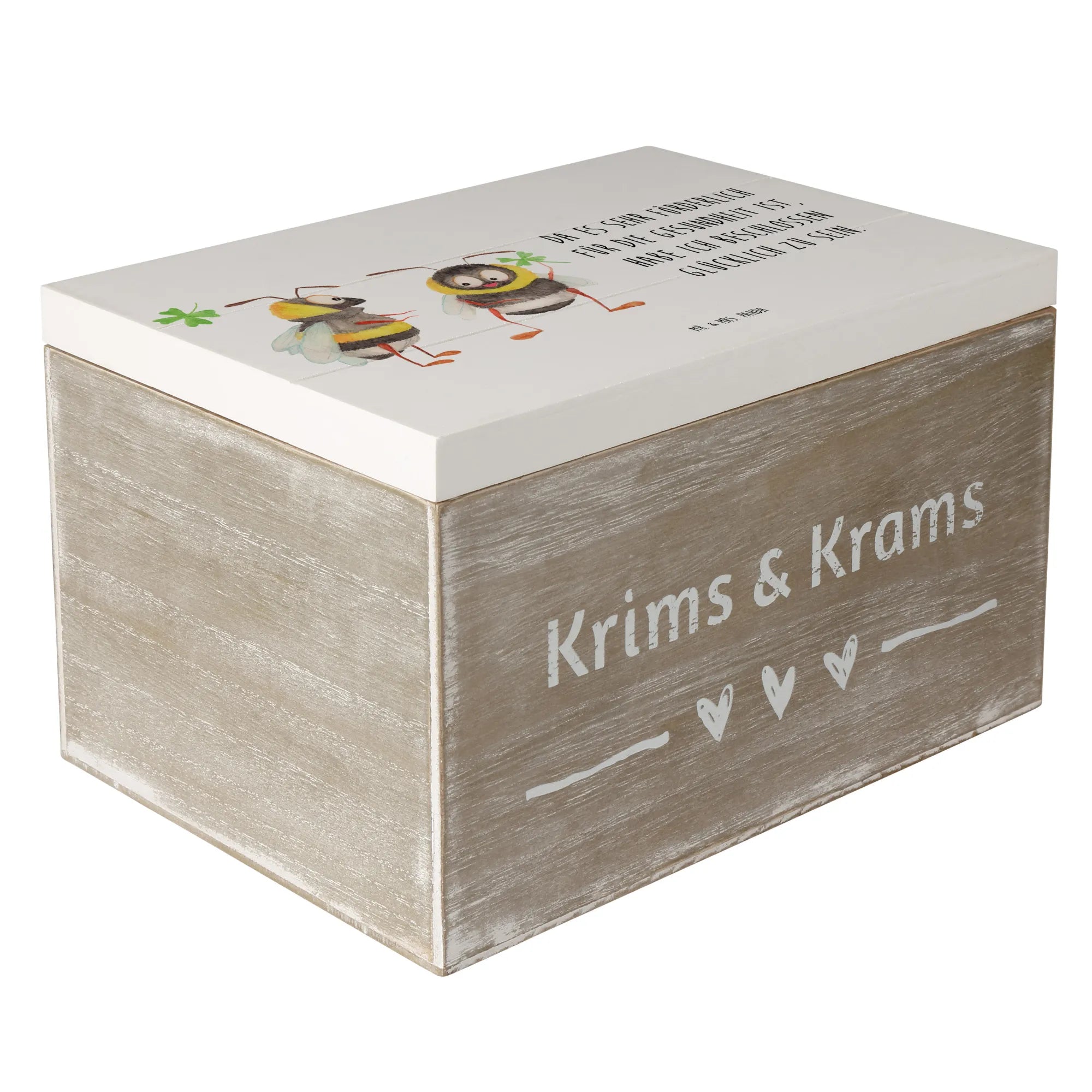 Entdecke die bezaubernde Holzkiste "Hummeln mit Kleeblatt" von Mr. & Mrs. Panda! Diese wunderschöne Kiste ist nicht nur ein Platz für all deine Schätze, sondern auch ein liebevolles Geschenk für viele besondere Anlässe.