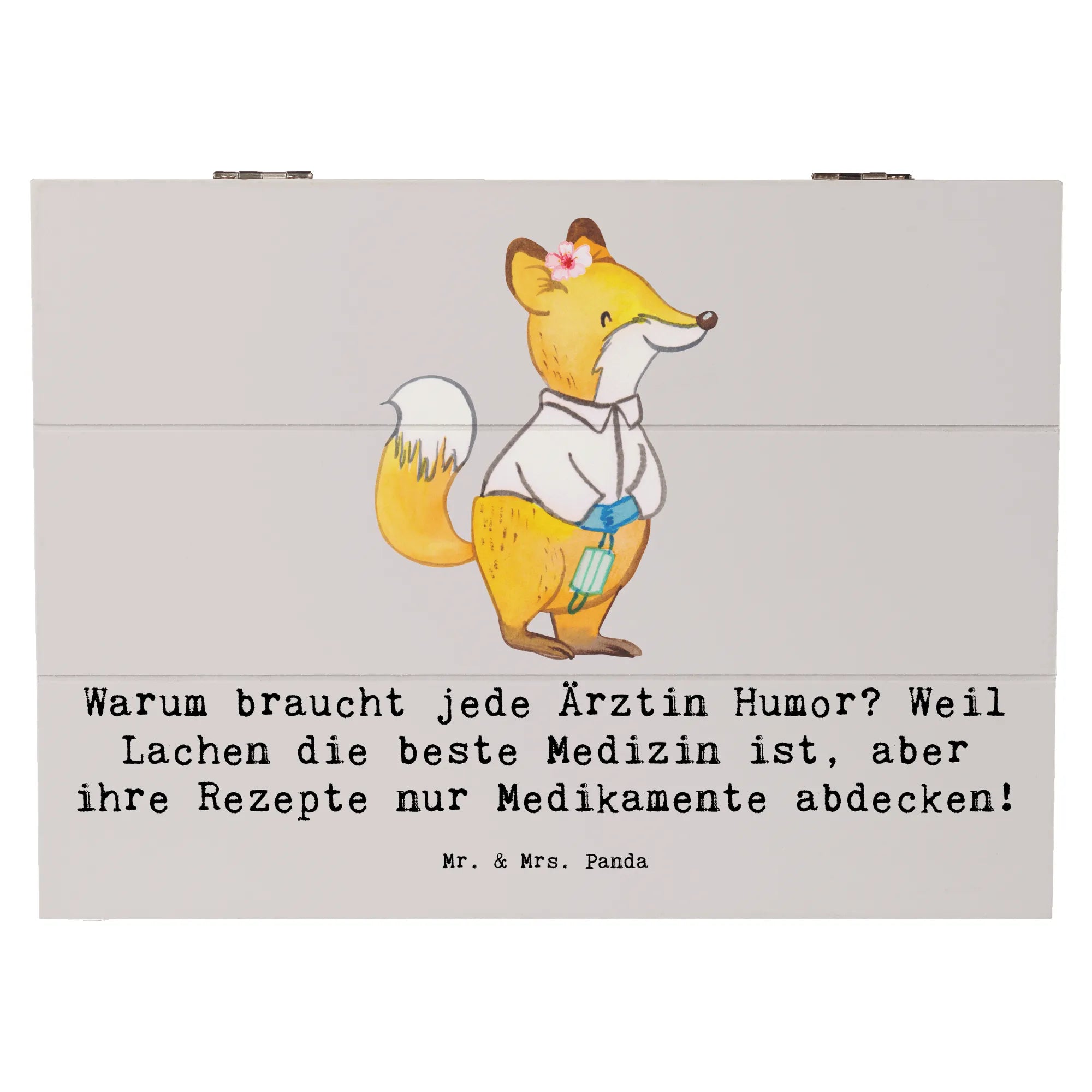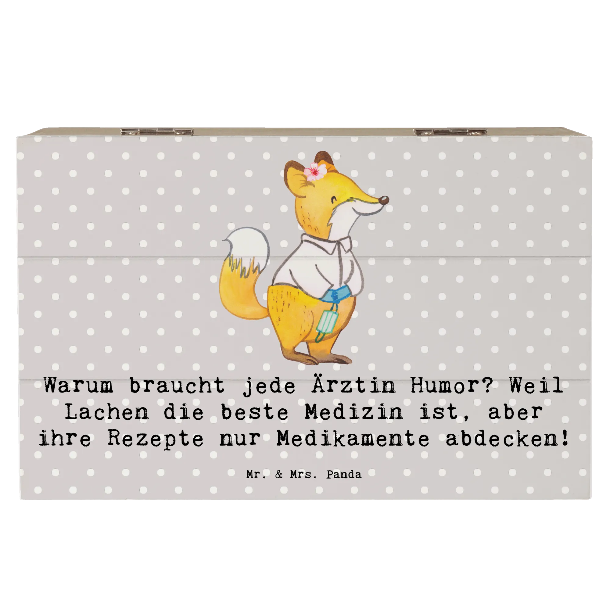 Holzkiste Humorvolle Ärztin - 22 x 15 cm - Grau Pastell