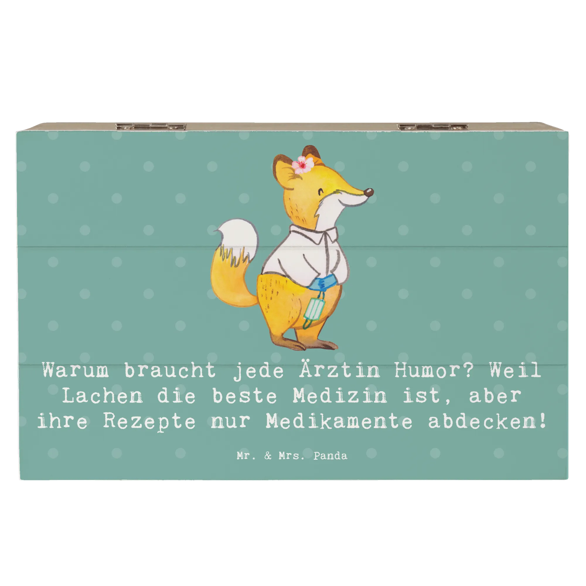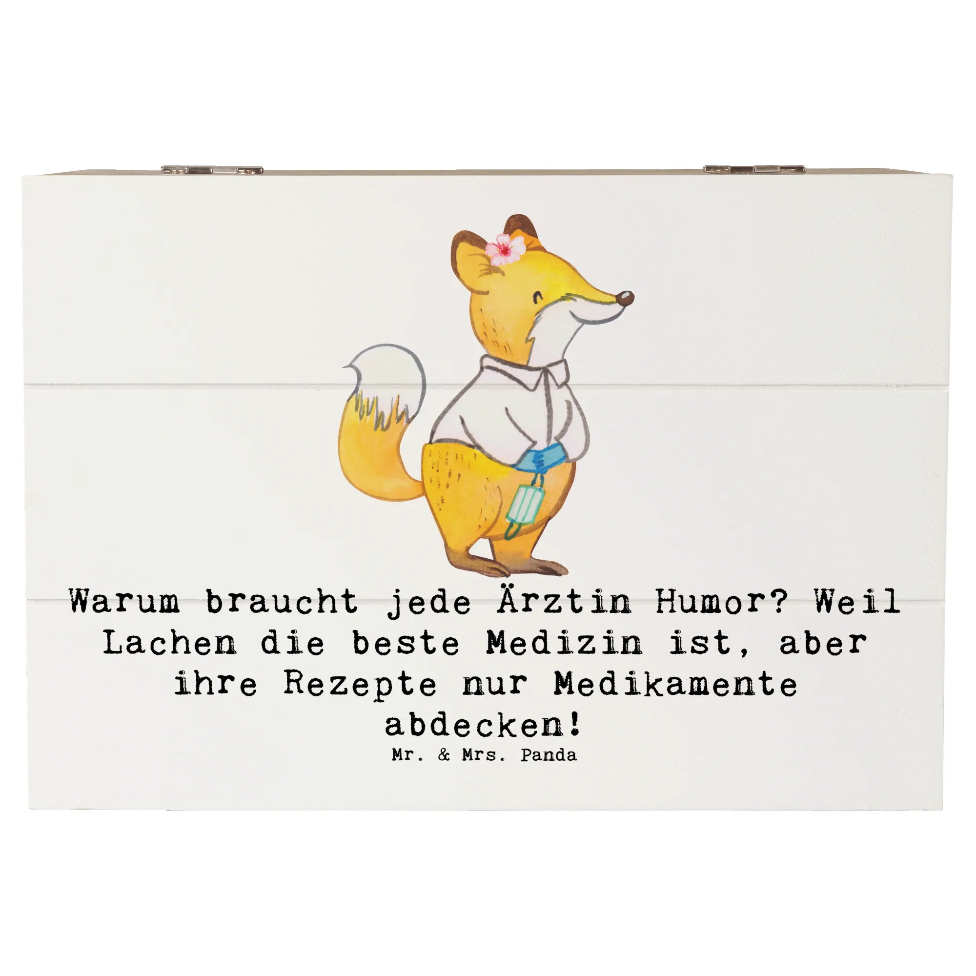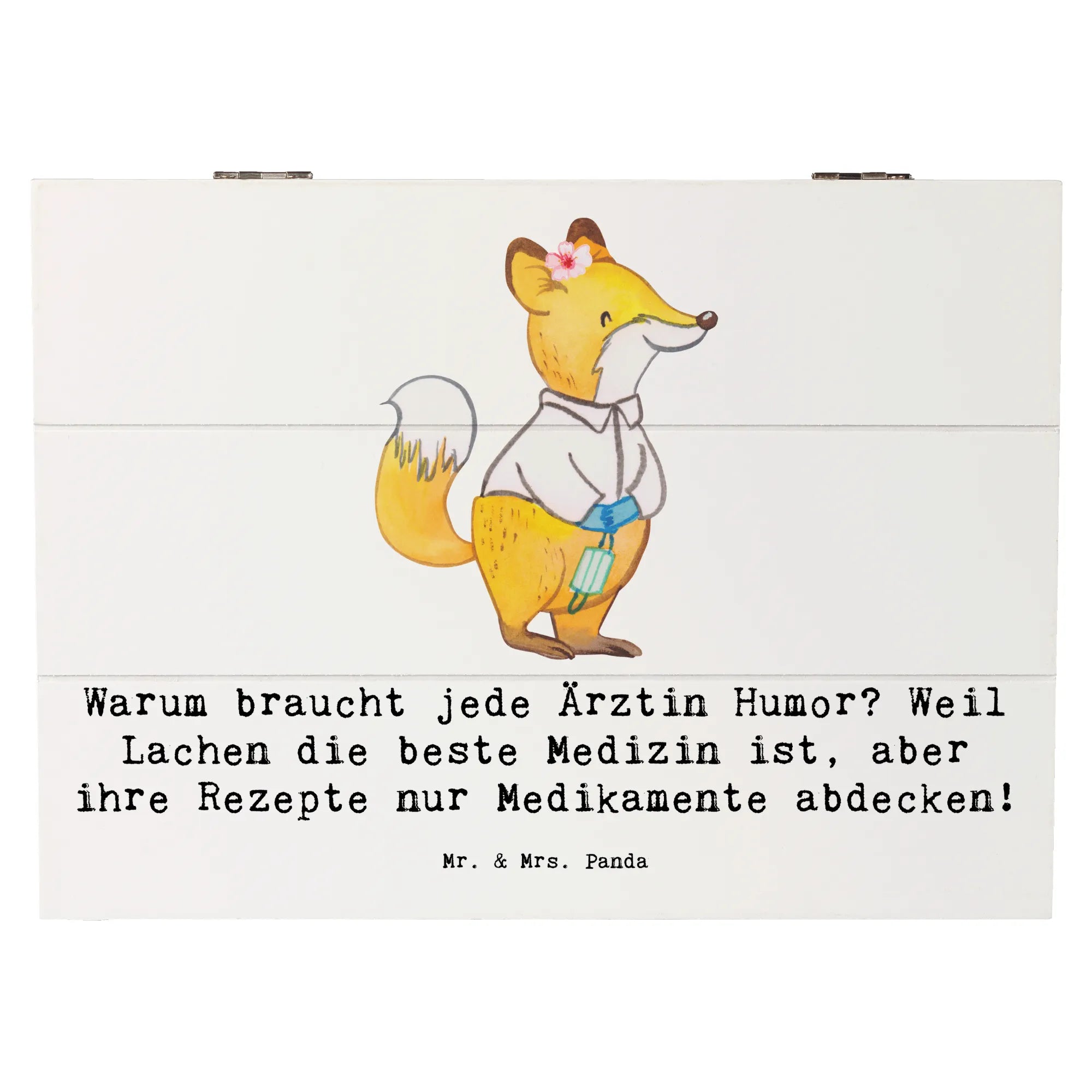 Die wunderschöne Holzkiste von Mr. & Mrs. Panda ist das perfekte Geschenk für jede Ärztin! Mit dem liebevollen Spruch "Warum braucht jede Ärztin Humor? Weil Lachen die beste Medizin ist, aber ihre Rezepte nur Medikamente abdecken!" bringt sie nicht nur Freude, sondern auch eine persönliche Note in jeden Raum.