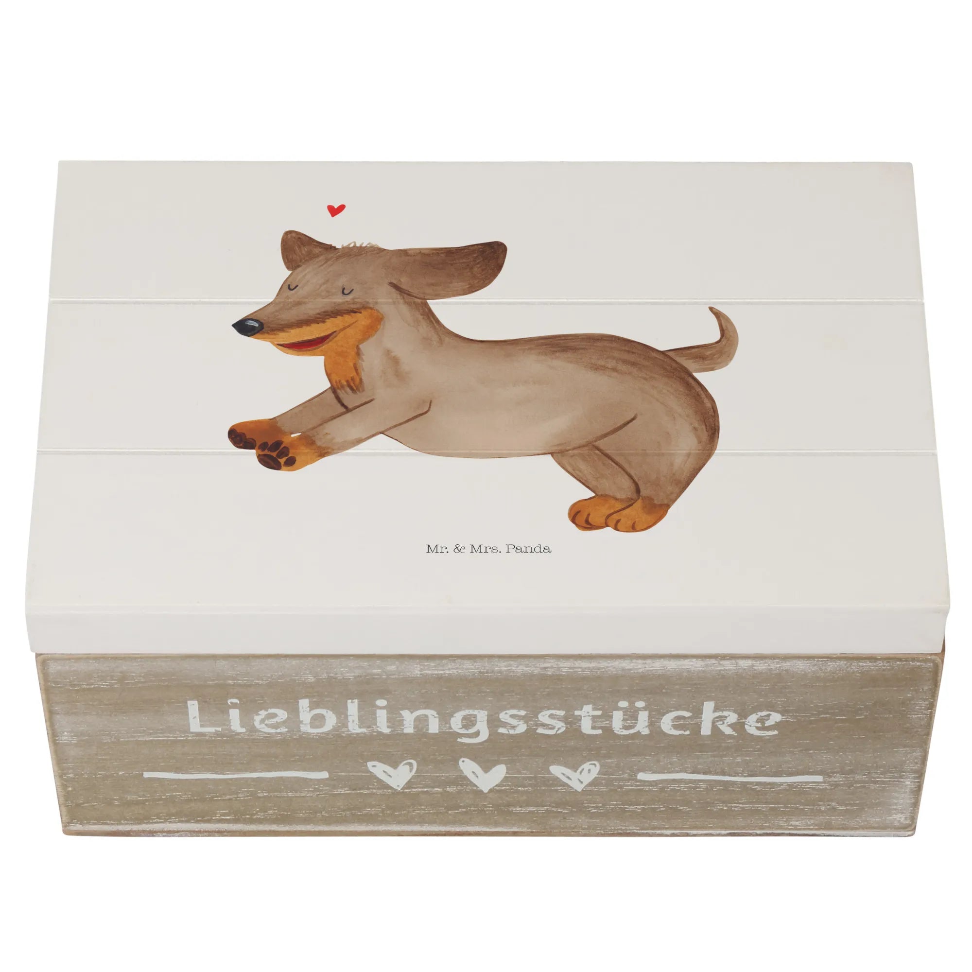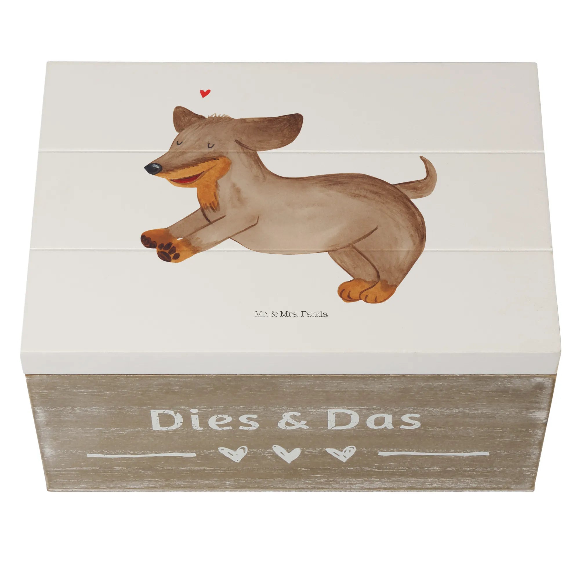 Wenn du auf der Suche nach einem liebevollen Geschenk für einen Hundeliebhaber bist, dann ist die Holzkiste mit dem fröhlichen Dackel von Mr. & Mrs. Panda genau das Richtige! Diese wunderschöne Holzkiste ist nicht nur ein stilvolles Aufbewahrungsstück, sondern auch eine wunderbare Erinnerungskiste für all die Schätze, die einem am Herzen liegen.