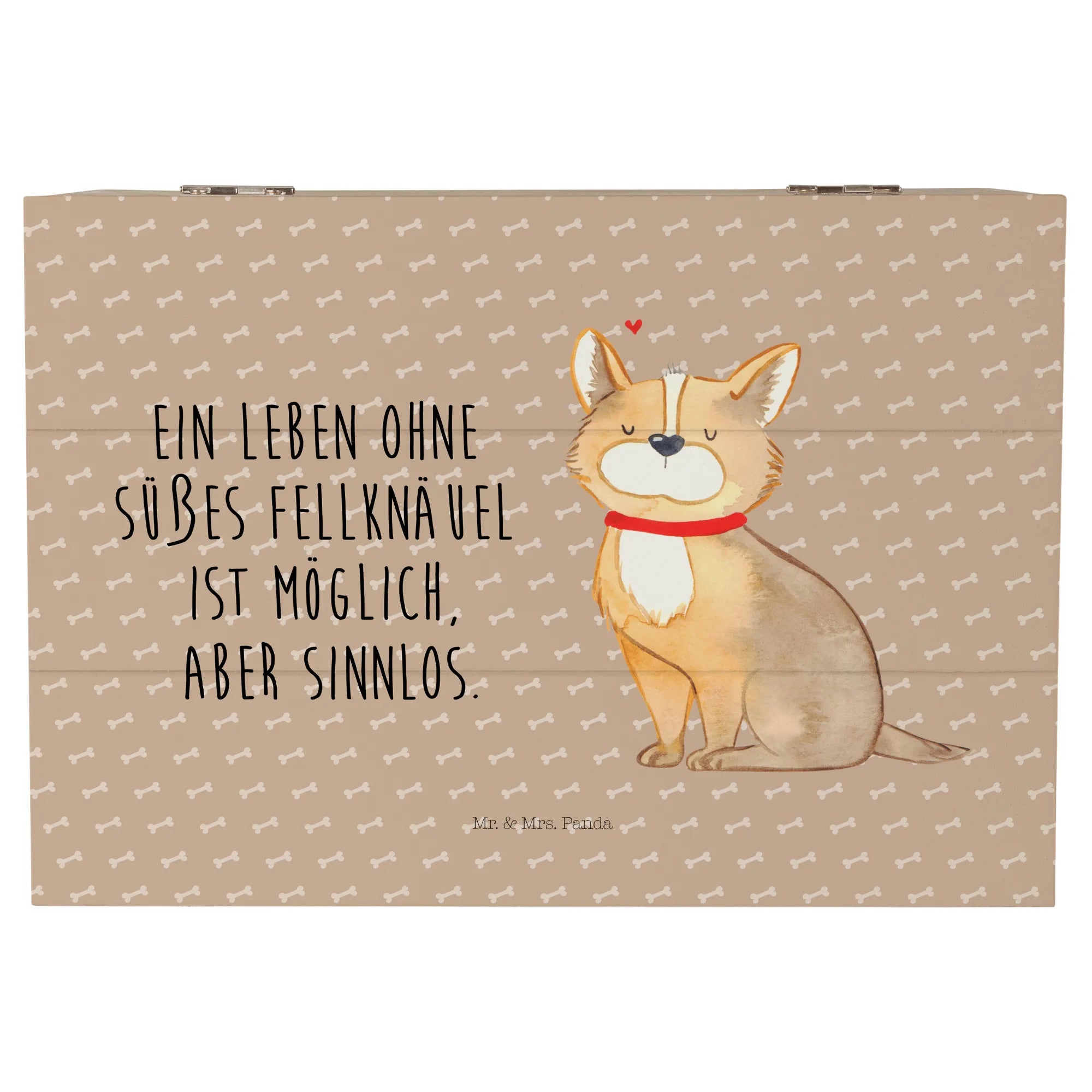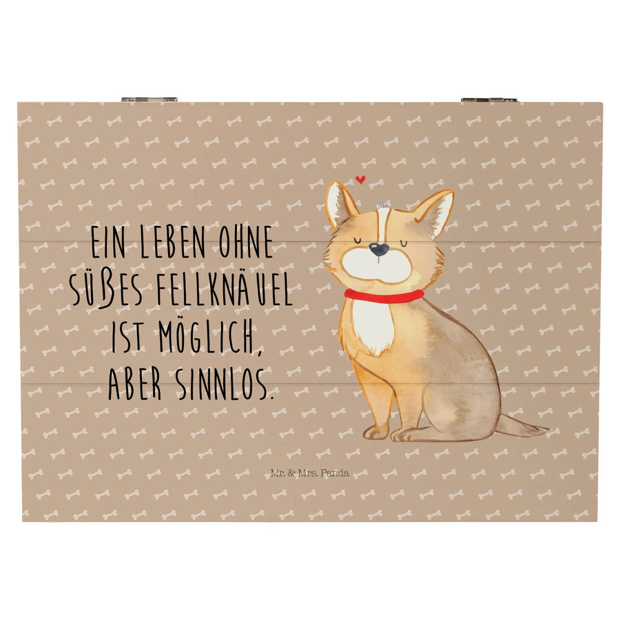 Die Holzkiste 'Hundeglück' von Mr. & Mrs. Panda ist die perfekte Lösung für alle Hundeliebhaber! Diese wunderschöne Aufbewahrungsbox vereint Funktionalität und Design in einem. Mit einem liebevoll handgezeichneten Motiv eines fröhlichen Hundes und dem Spruch 'Ein Leben ohne süßes Fellknäuel ist möglich, aber sinnlos.' bringt sie Freude in jedes Zuhause.