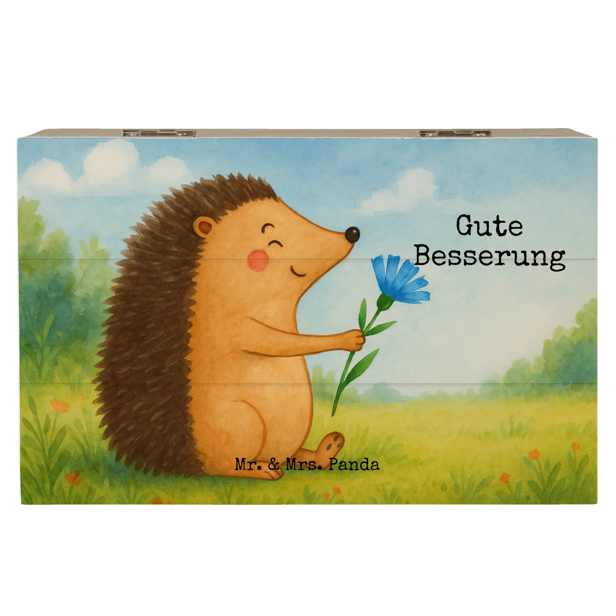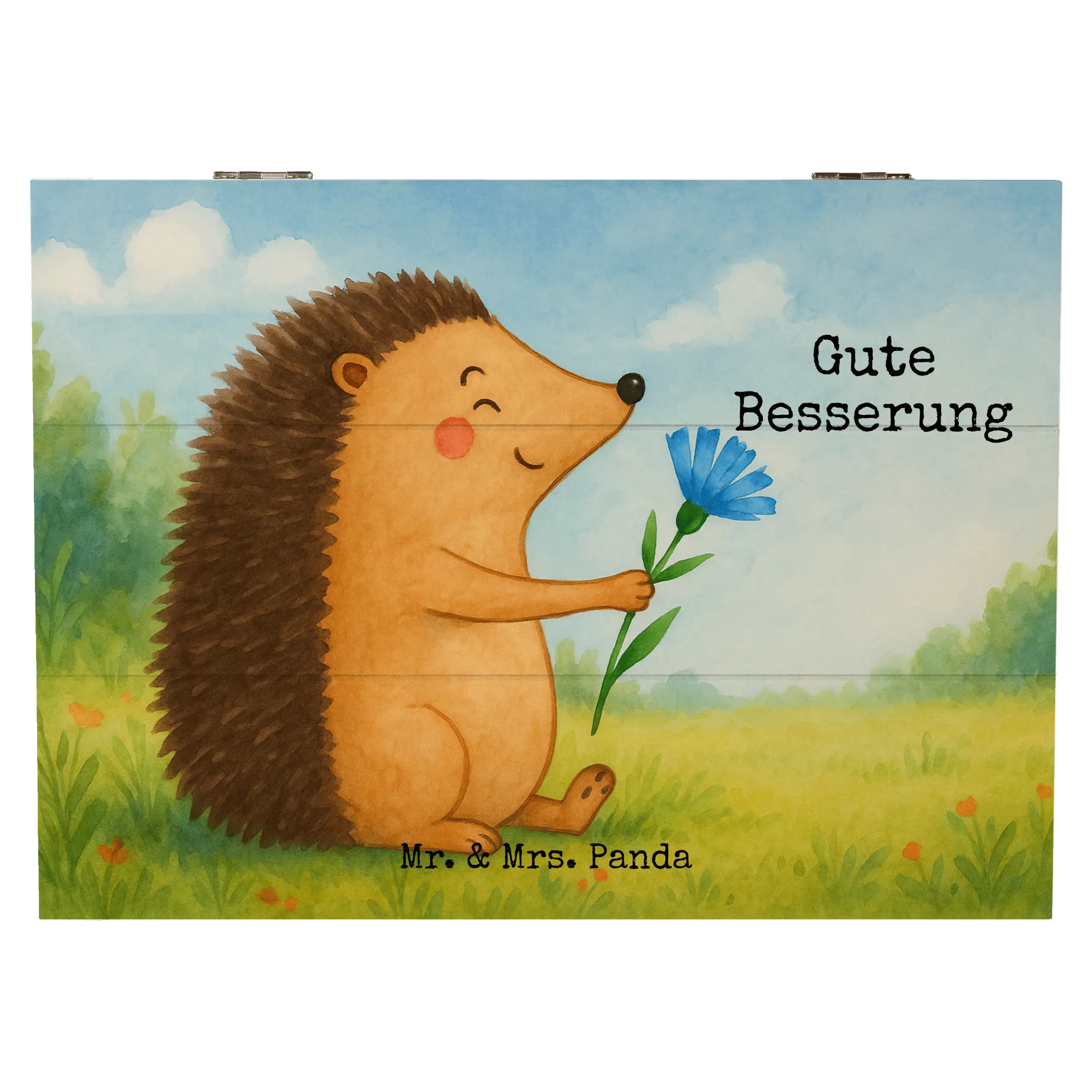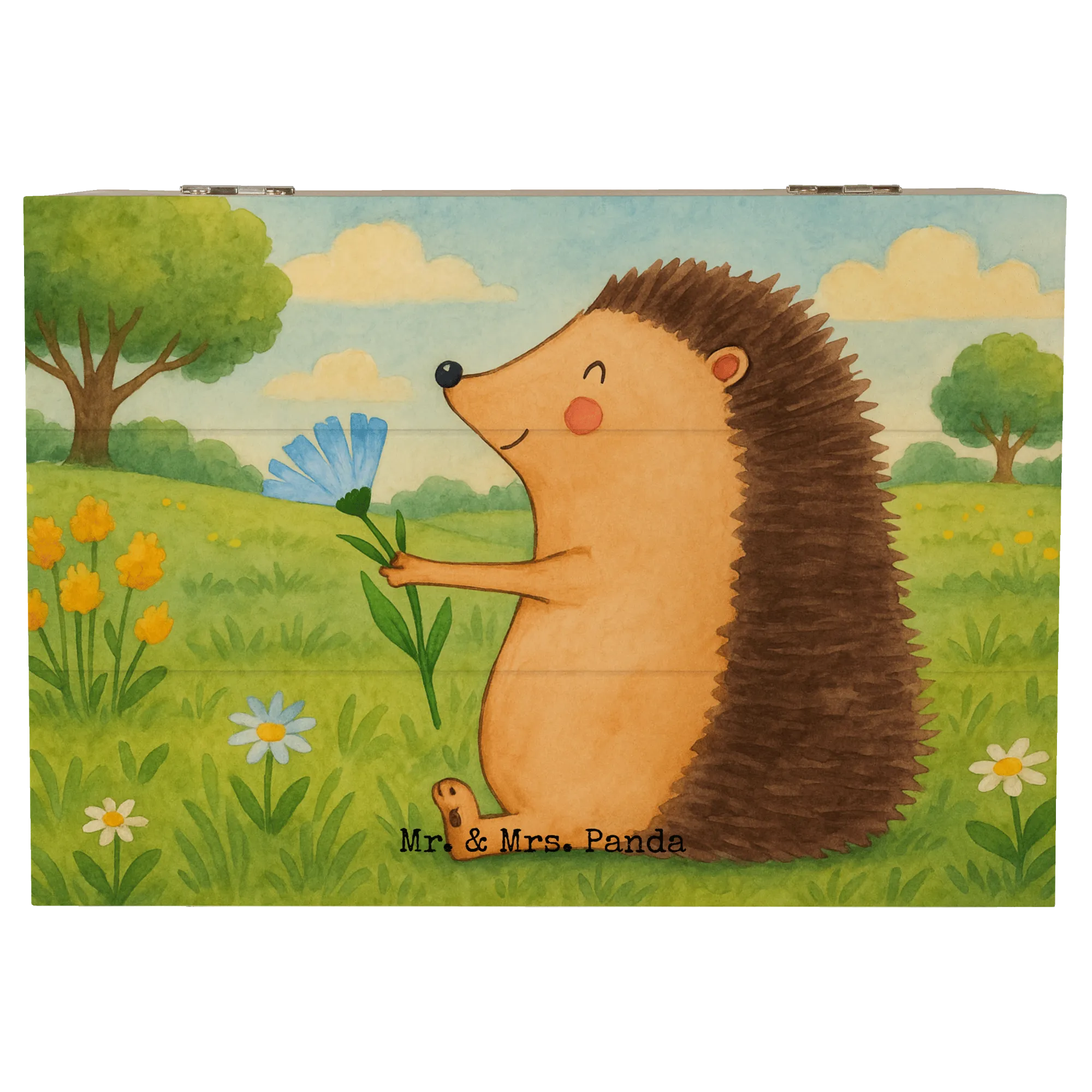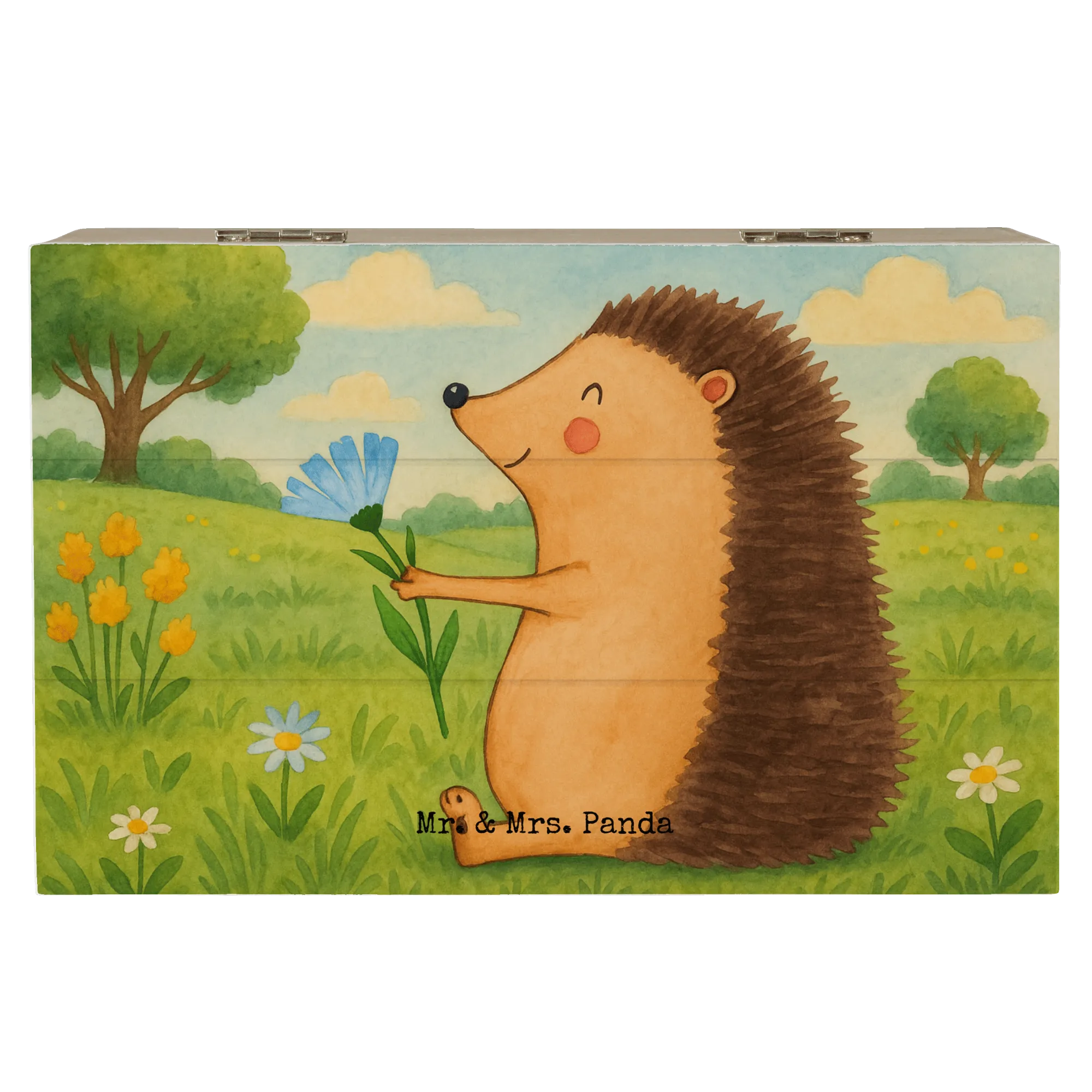 Eine wundervolle Holzkiste mit Herz: Die Holzkiste „Igel mit Blume“ aus der Small World Kollektion von Mr. & Mrs. Panda bringt Fröhlichkeit und Wärme in dein Zuhause. Der süße Igel mit seiner roten Blume ist liebevoll aquarelliert und zaubert ein Lächeln auf jedes Gesicht. Ideal als dekorative Holzbox, Aufbewahrungsbox oder Erinnerungskiste.