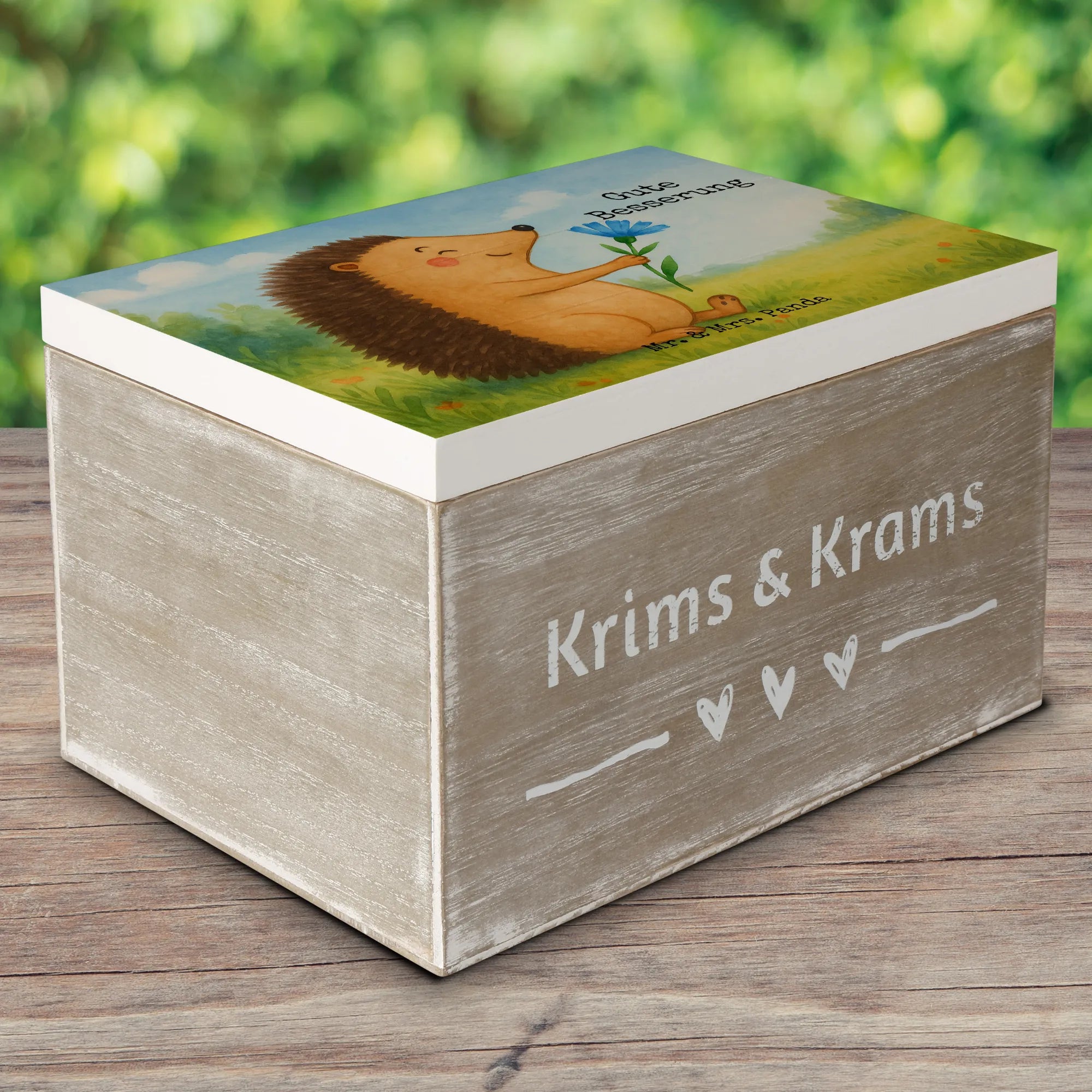 Holzkiste Igel Blumen Design - 22 x 15 cm - mit Spruch