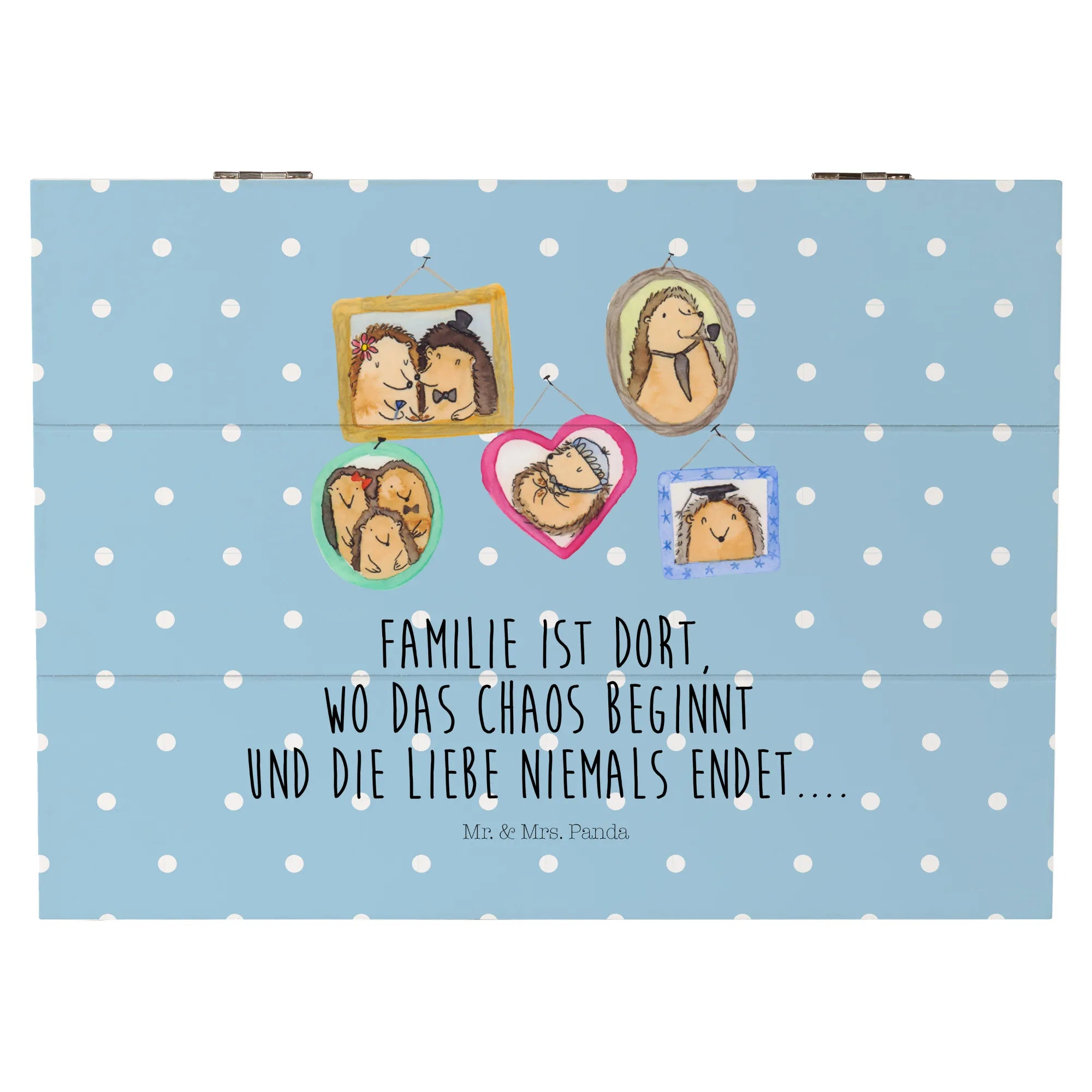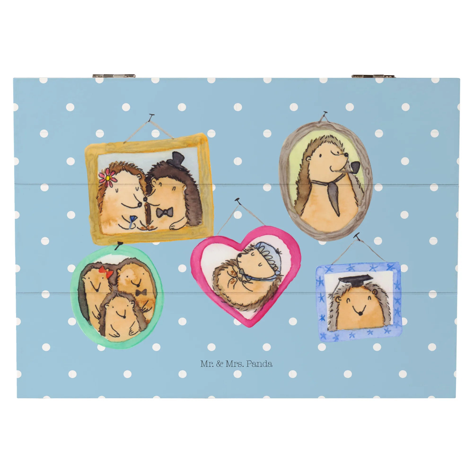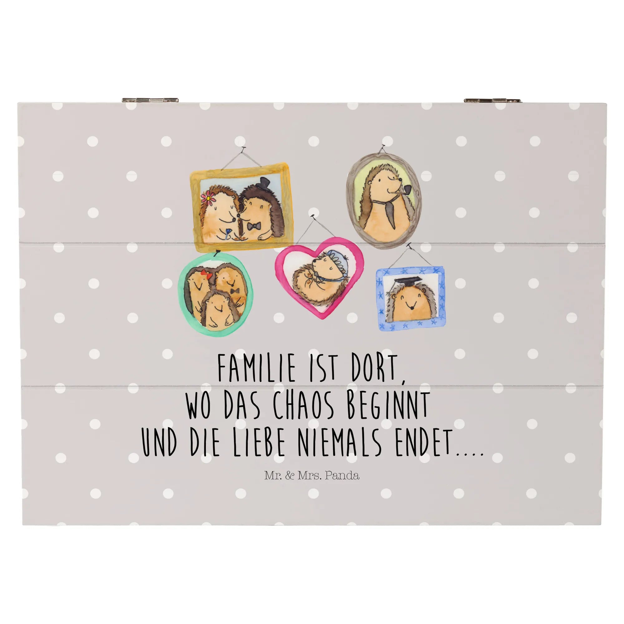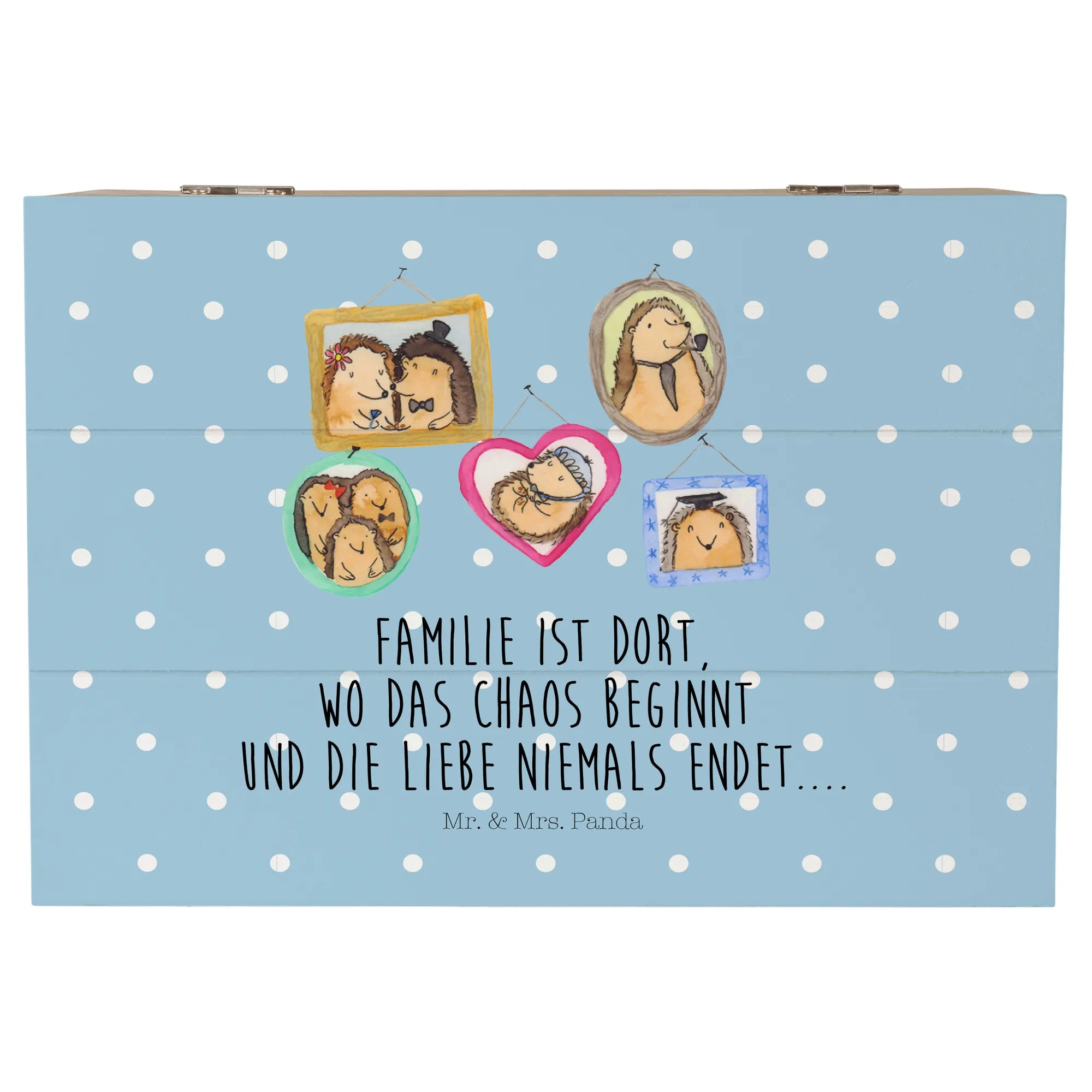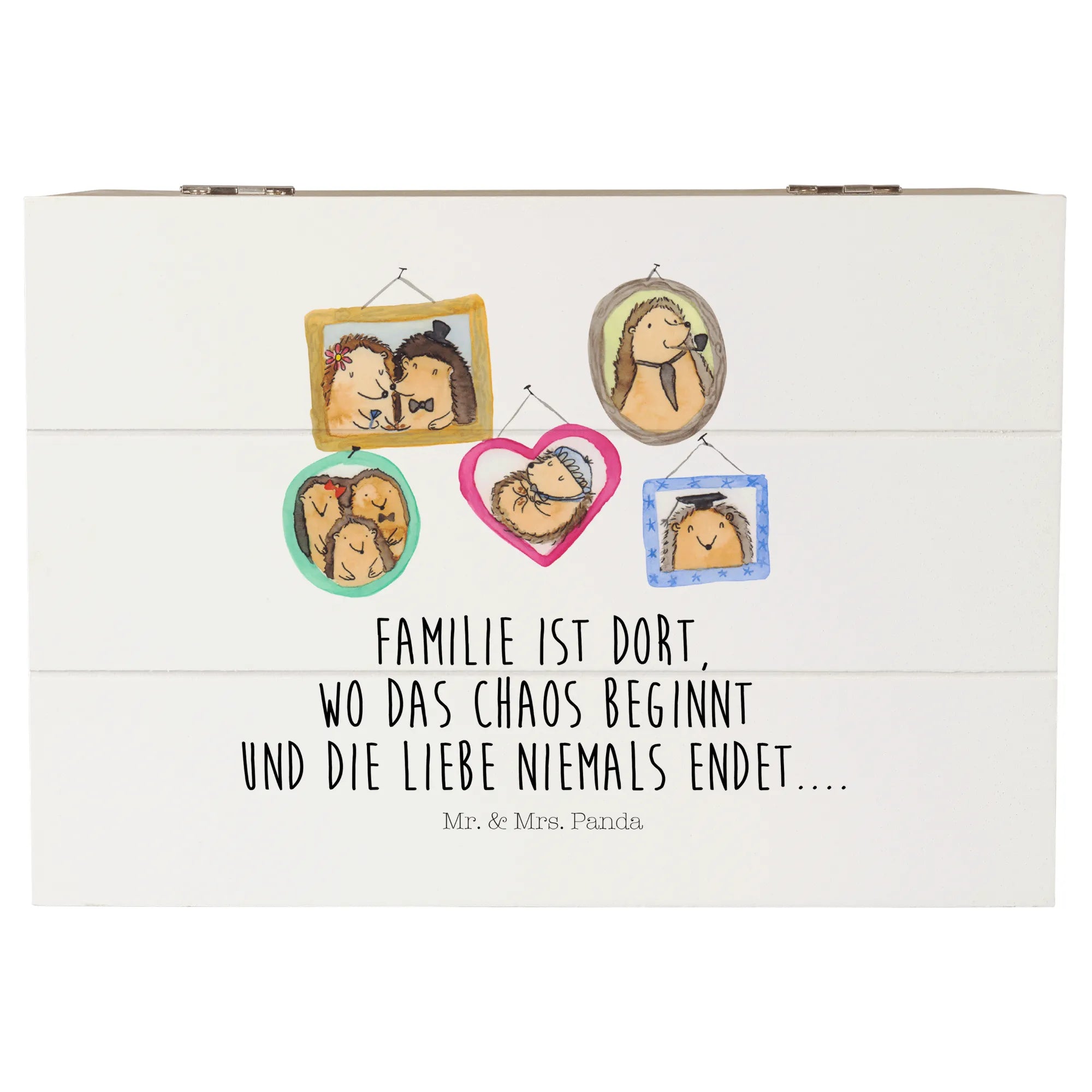 Mache deinem Lieben eine Freude und verschenke mit dieser Holzkiste eine kleine Schatztruhe der Erinnerungen. Das Motiv der Igel Familie zeigt verschiedene Szenen, die das Familienleben zeigen - es umfasst Hochzeiten, kuschelige Familienmomente und vieles mehr.