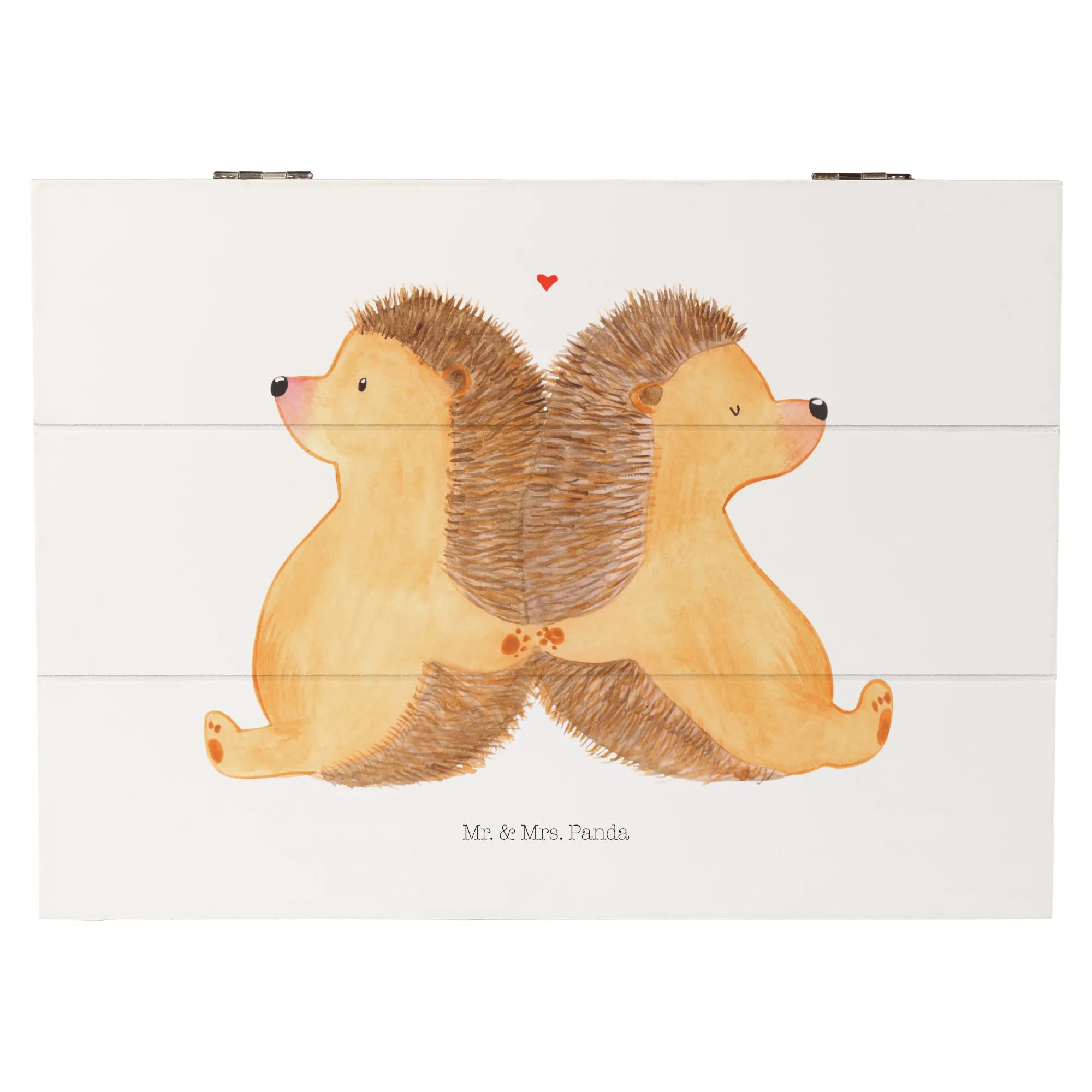 Die Holzkiste mit dem liebevollen Design der händchenhaltenden Igel von Mr. & Mrs. Panda ist nicht nur ein einfacher Aufbewahrungsort, sondern ein echter Liebesbeweis!