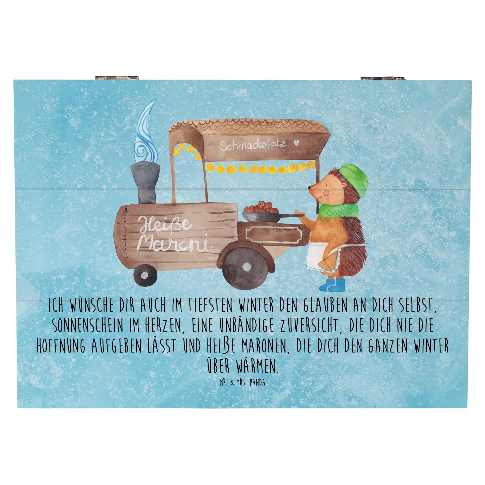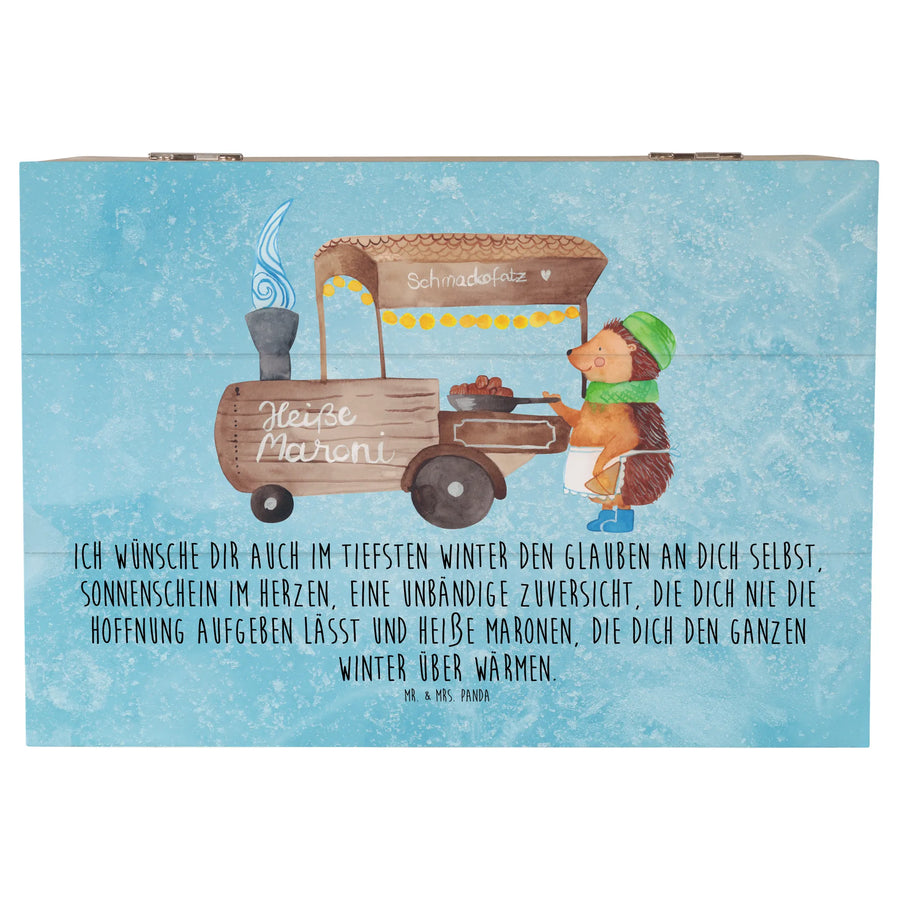Holzkiste Igel Maronen - 22 x 15 cm - mit Spruch - Eisblau
