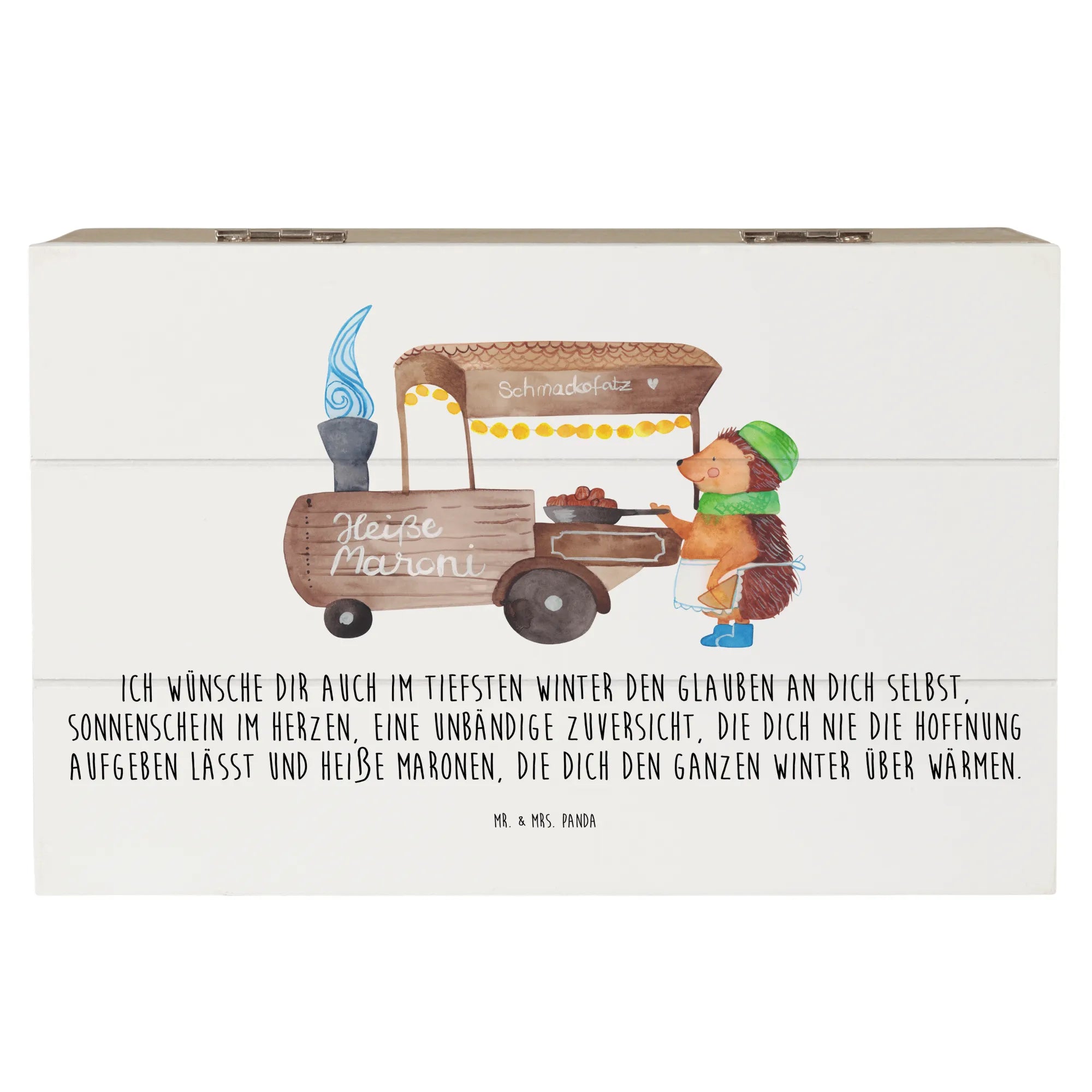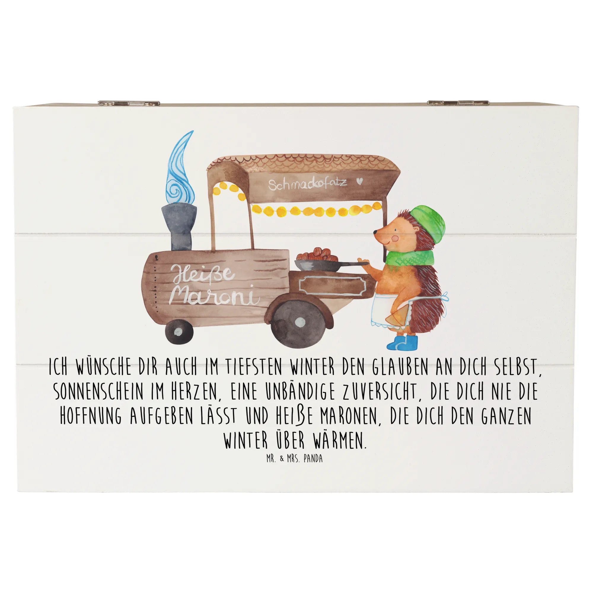 Entdecke die bezaubernde Holzkiste mit dem besonders niedlichen Motiv des Igels, der heiße Maronen verkauft! Diese wunderschöne Holzkiste von Mr. & Mrs. Panda ist mehr als nur eine Aufbewahrungslösung – sie ist ein wahres Schmuckstück für jeden Winterliebhaber.