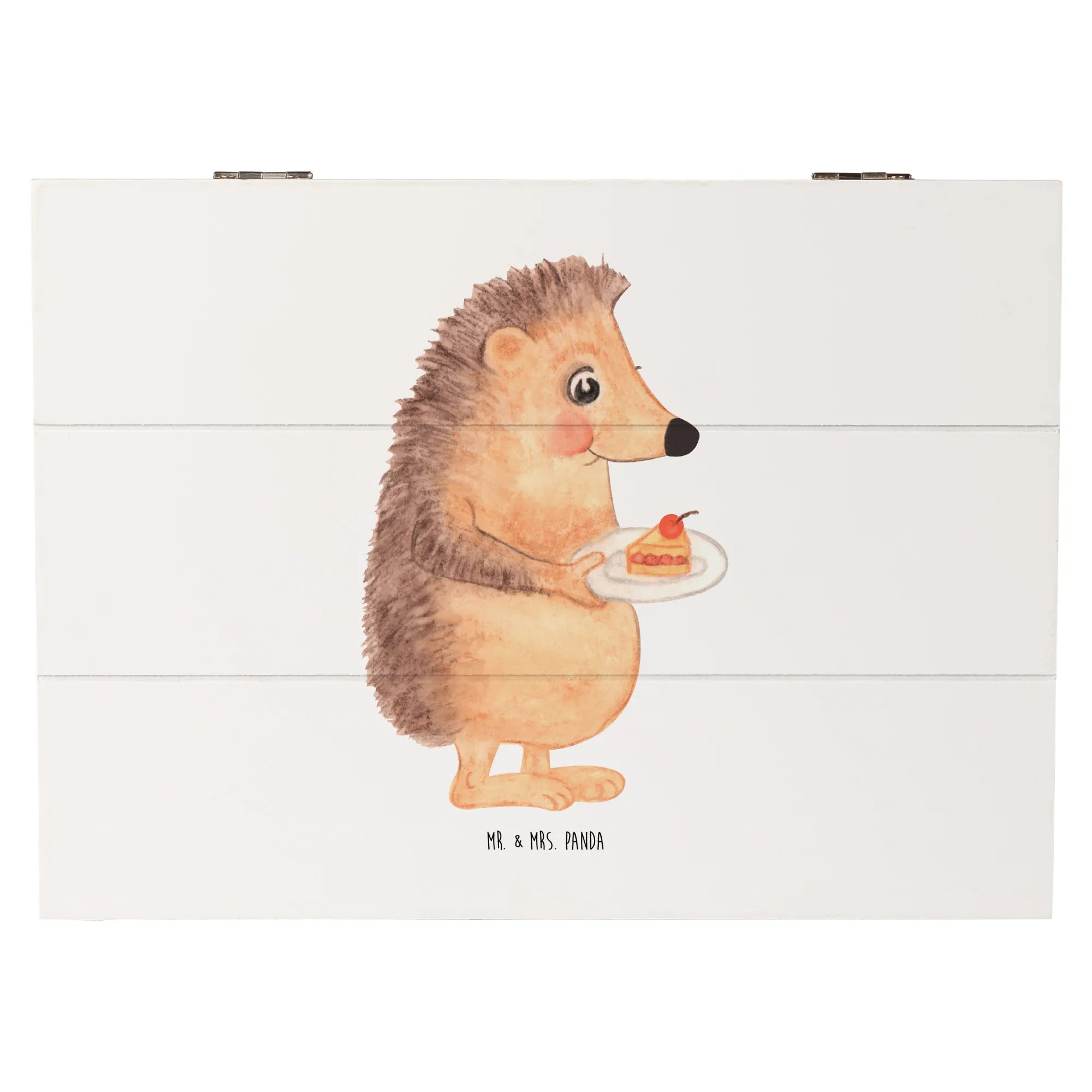 Entdecke die zauberhafte Holzkiste von Mr. & Mrs. Panda, die mit dem entzückenden Motiv 'Igel mit Kuchenstück' aus der berühmten Small World Kollektion gestaltet ist!