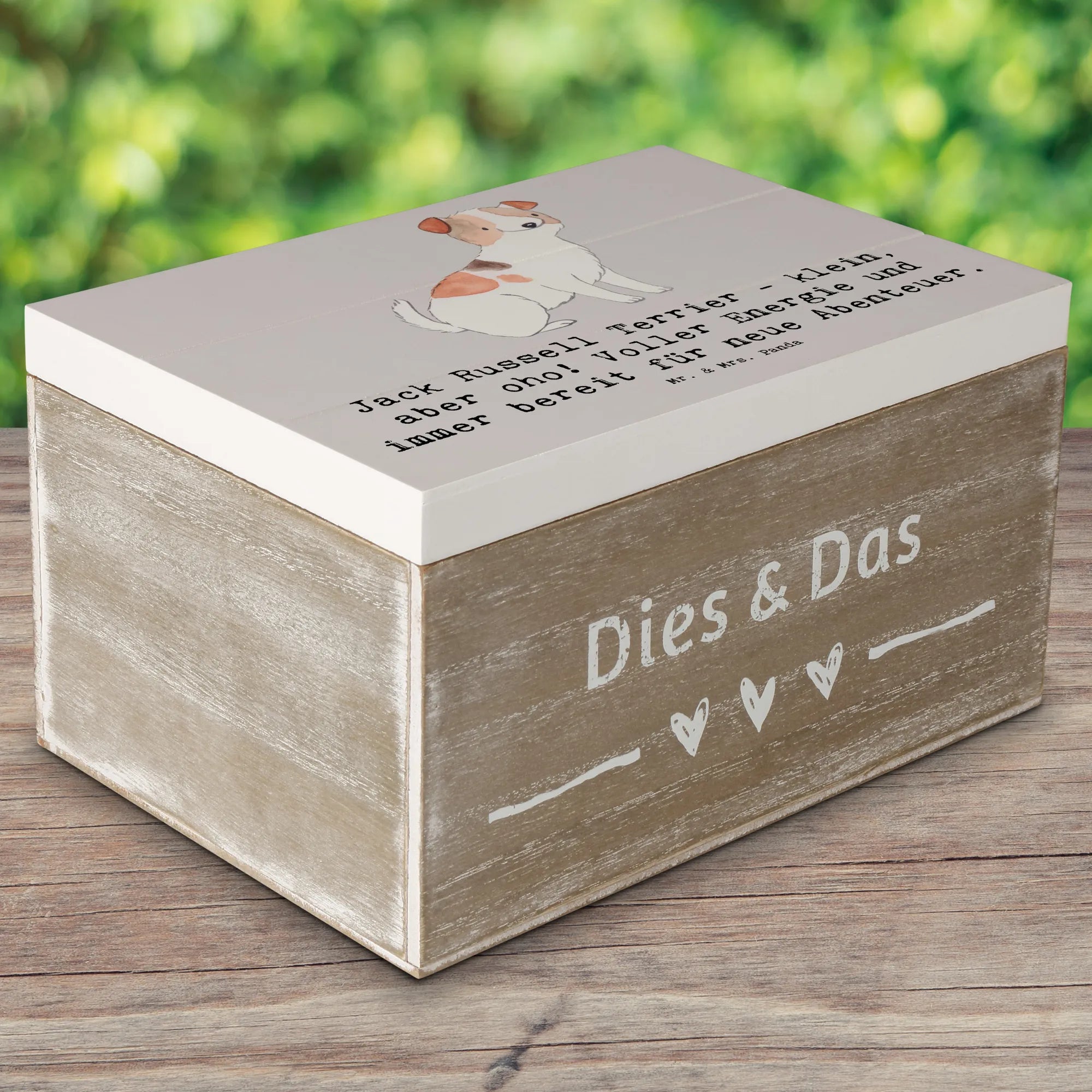 Die wunderschöne Holzkiste mit dem Motiv Jack Russell Terrier von Mr. & Mrs. Panda ist das perfekte Geschenk für alle Hundefans und Tierliebhaber! Egal, ob zum Geburtstag, zu Weihnachten oder einfach als kleine Aufmerksamkeit zwischendurch, diese Schatzkiste wird garantiert jedem ein Lächeln ins Gesicht zaubern. Mit dem liebevoll gestalteten Design und dem inspirierenden Spruch "Jack Russell Terrier - klein, aber oho! Voller Energie und immer bereit für neue Abenteuer." bringt die Kiste nicht nur Freude, sondern auch einen Hauch von Abenteuer in jedes Zuhause.