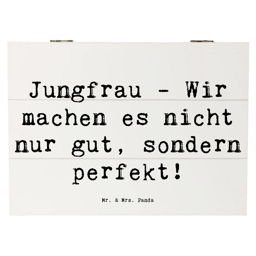 Egal, ob es sich um Erinnerungen aus der Kindheit, Fotos von besonderen Momenten oder kleine Geschenke handelt, diese Erinnerungskiste ist der perfekte Ort dafür. Gestaltet mit dem charmanten Spruch "Jungfrau - Wir machen es nicht nur gut, sondern perfekt!" bringt sie ein Lächeln in dein Herz und macht jede Aufbewahrung zu einem liebevollen Erlebnis.