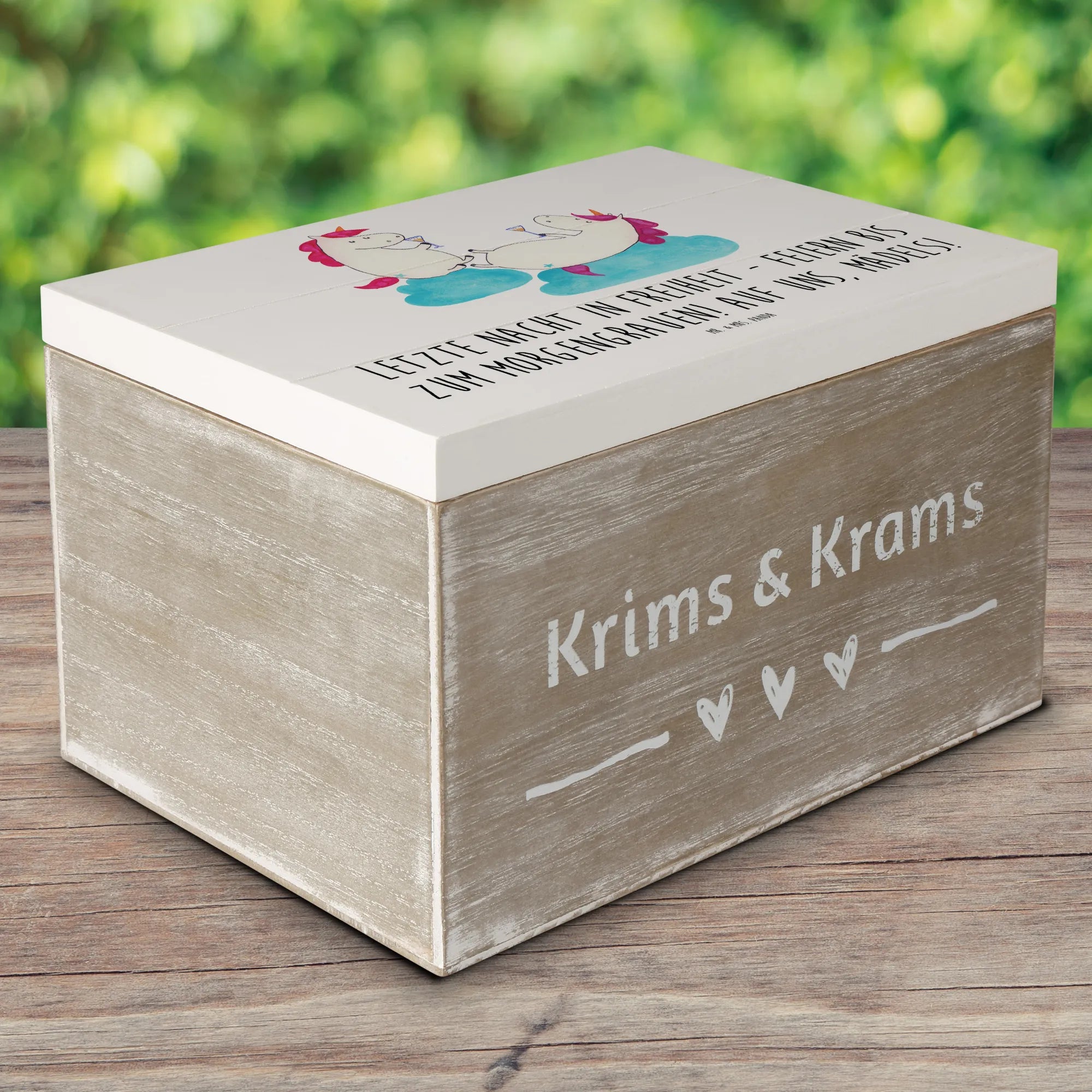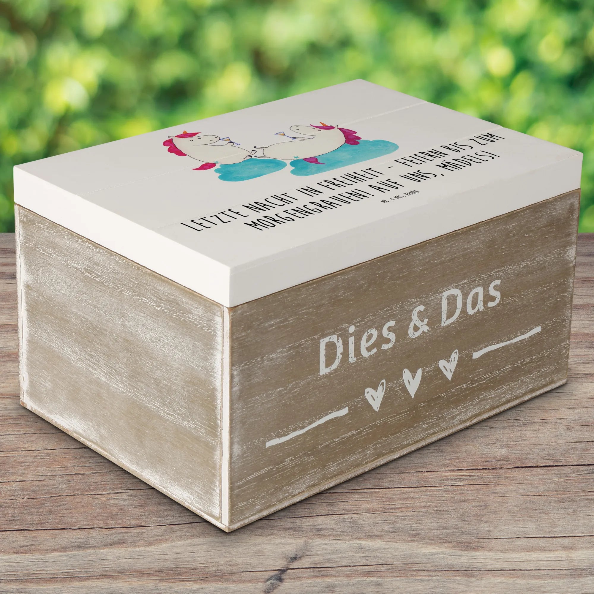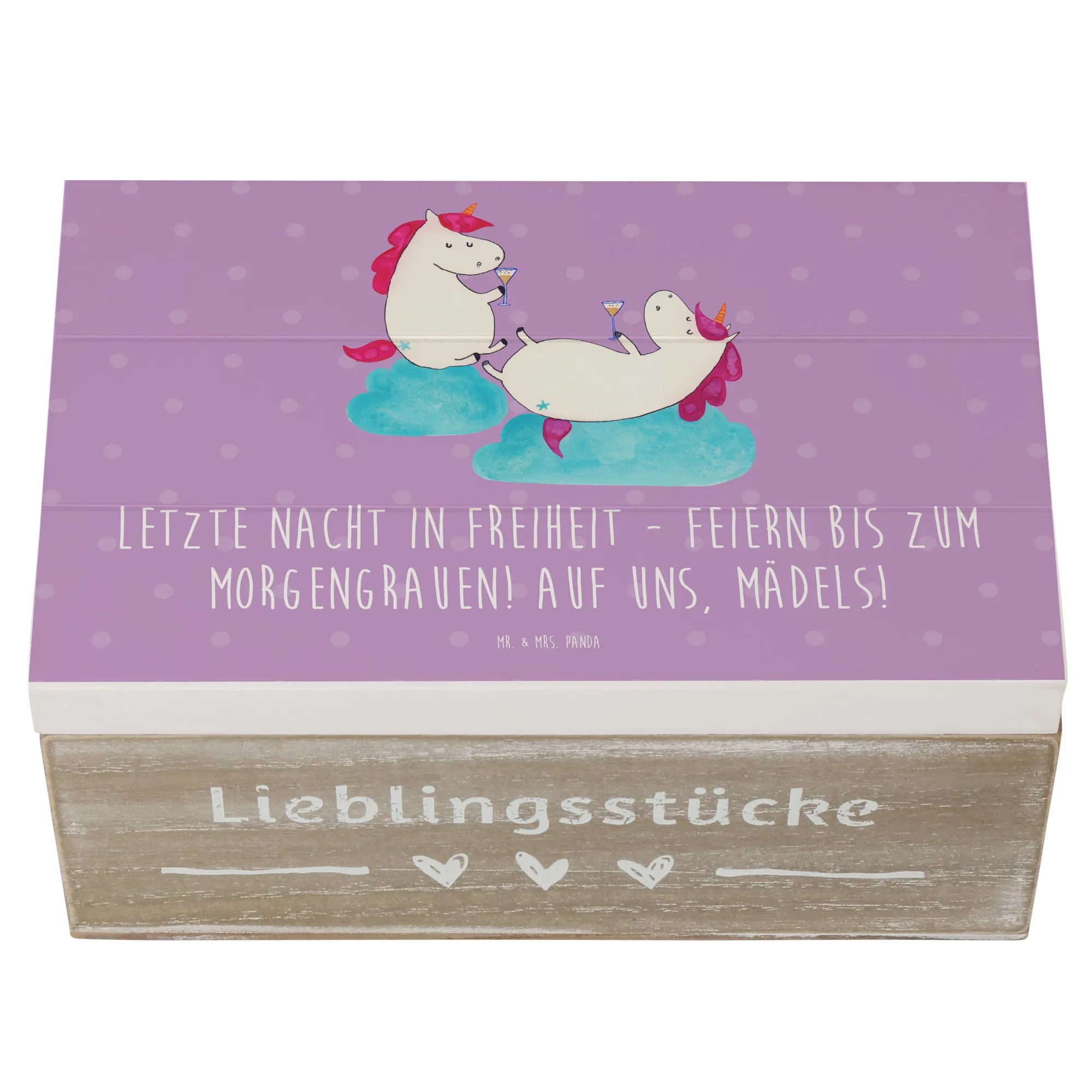 Entdecke die wundervolle Holzkiste von Mr. & Mrs. Panda, die perfekt für deinen Junggesellinnenabschied ist.