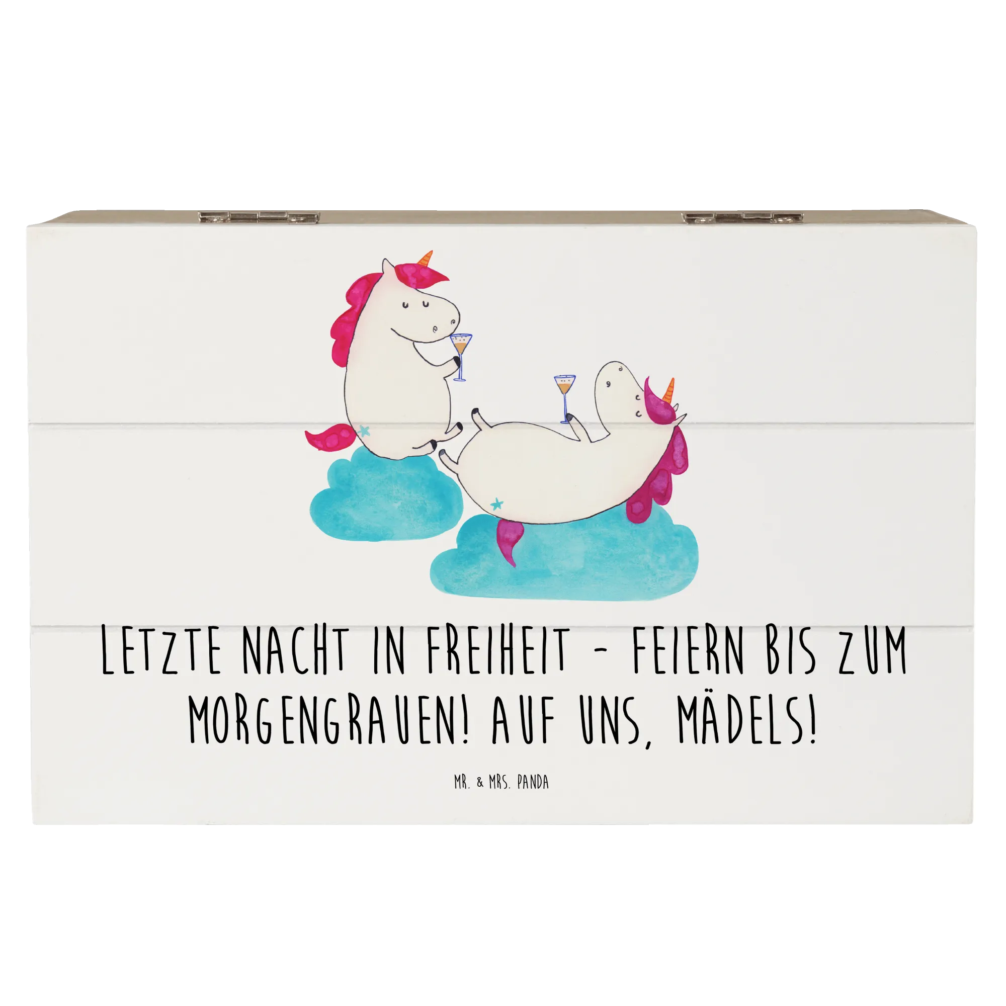 Verschenke die Holzkiste für den Junggesellinnenabschied und schaffe unvergessliche Erinnerungen für die Braut und ihre Freundinnen! Ein ideales Hochzeitsgeschenk, das immer in Erinnerung bleibt und die perfekte Ergänzung für jede Hochzeitskollektion darstellt. Schenk Freude, schenk Erinnerungen – mit der Mr. & Mrs. Panda Holzkiste für den Junggesellinnenabschied ist das ganz einfach!