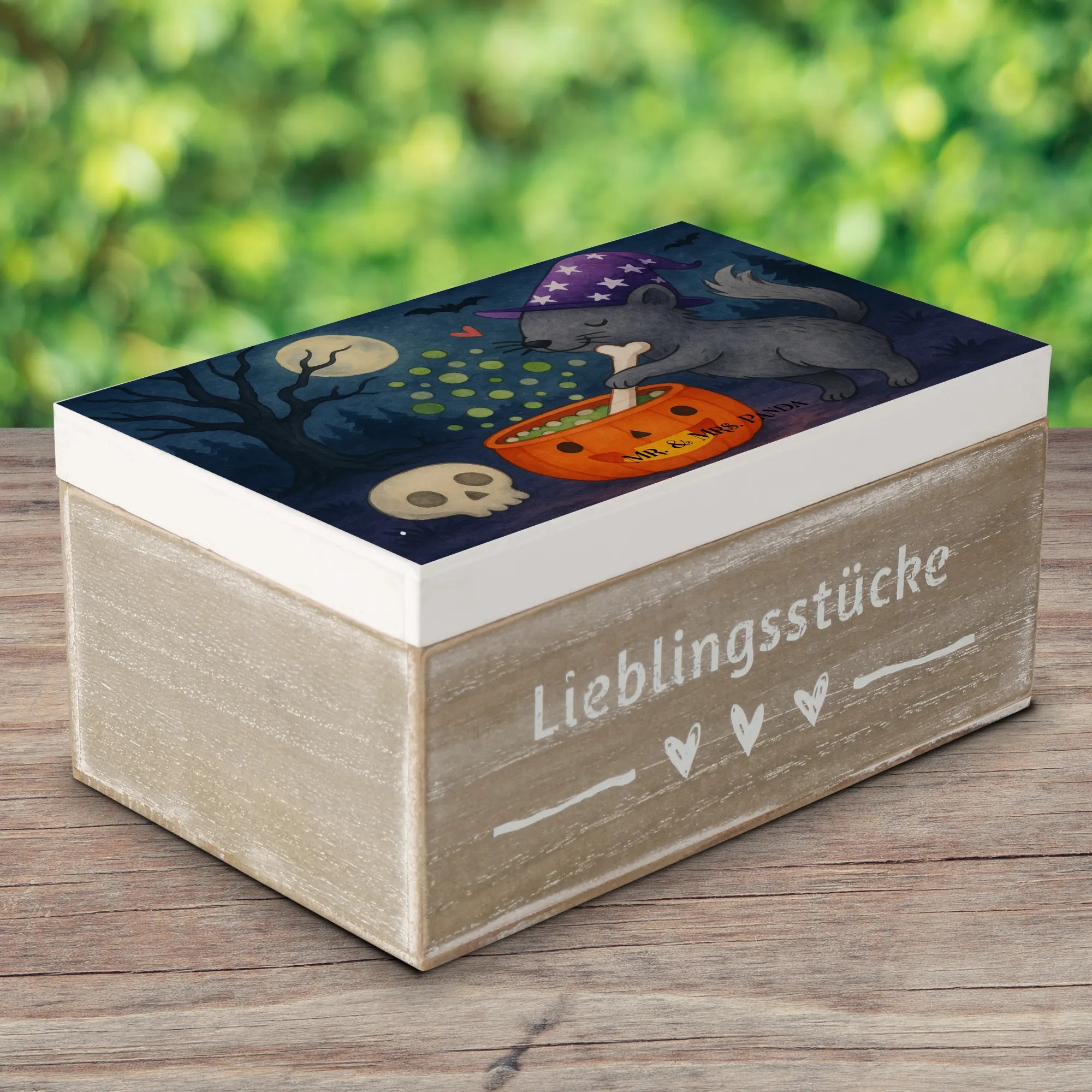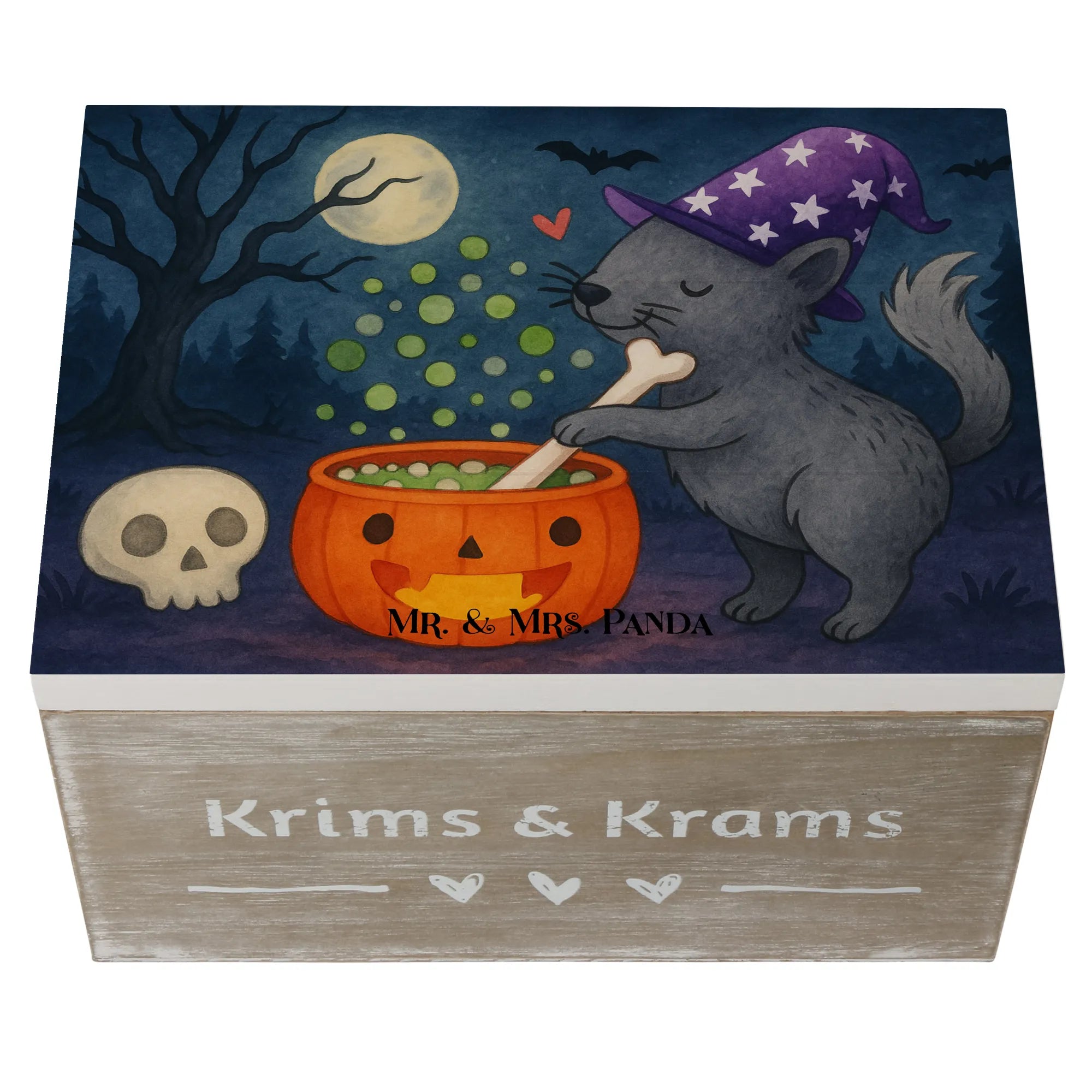 Holzkiste Kater Hexenkessel Design - 22 x 15 cm