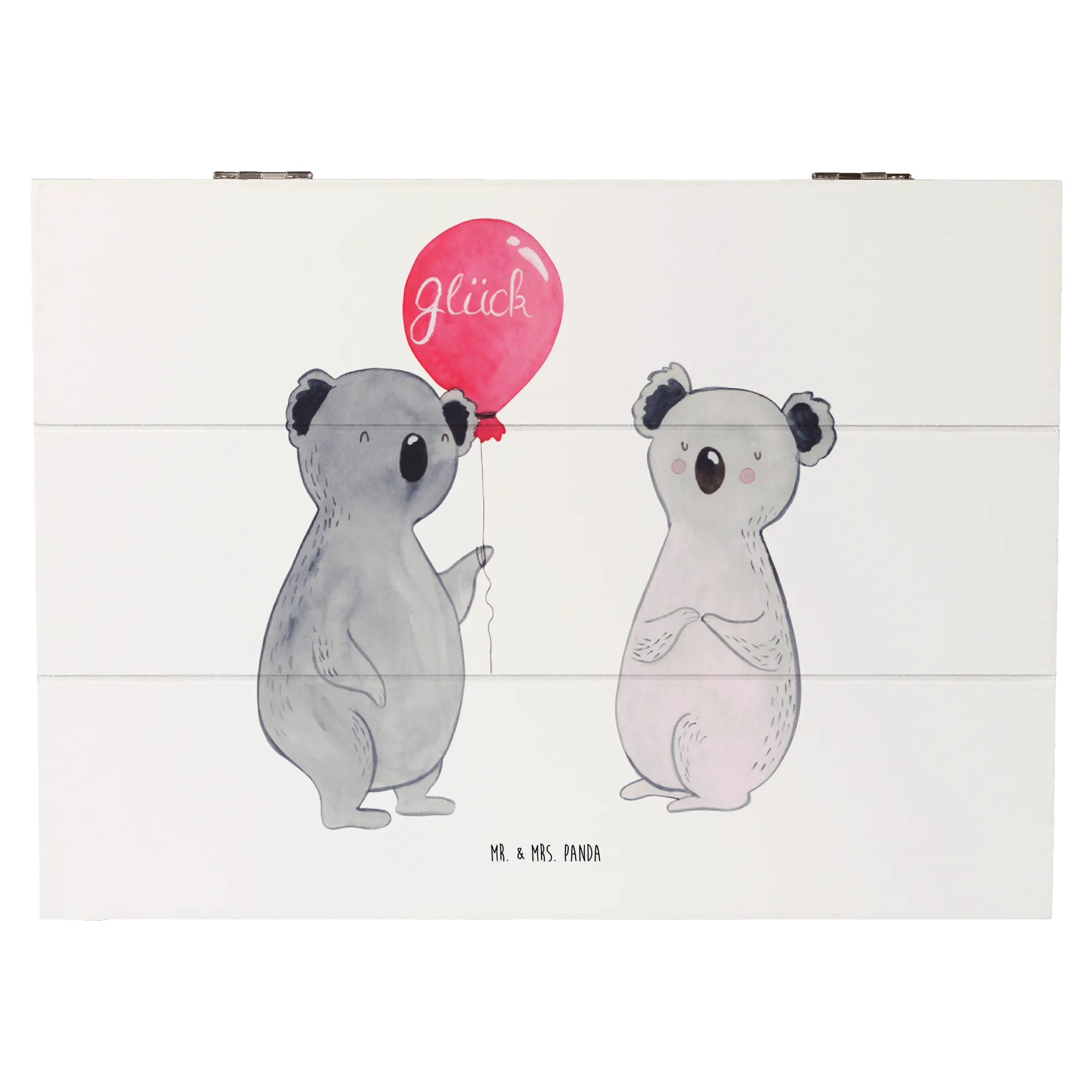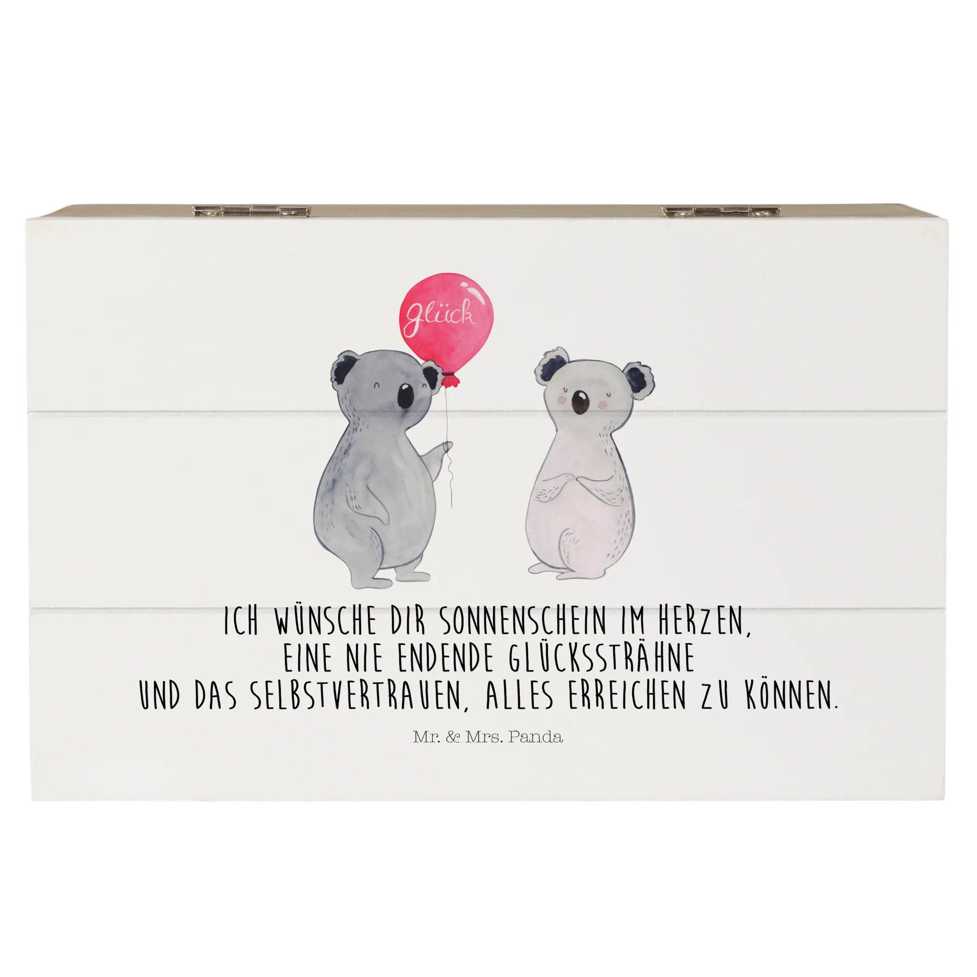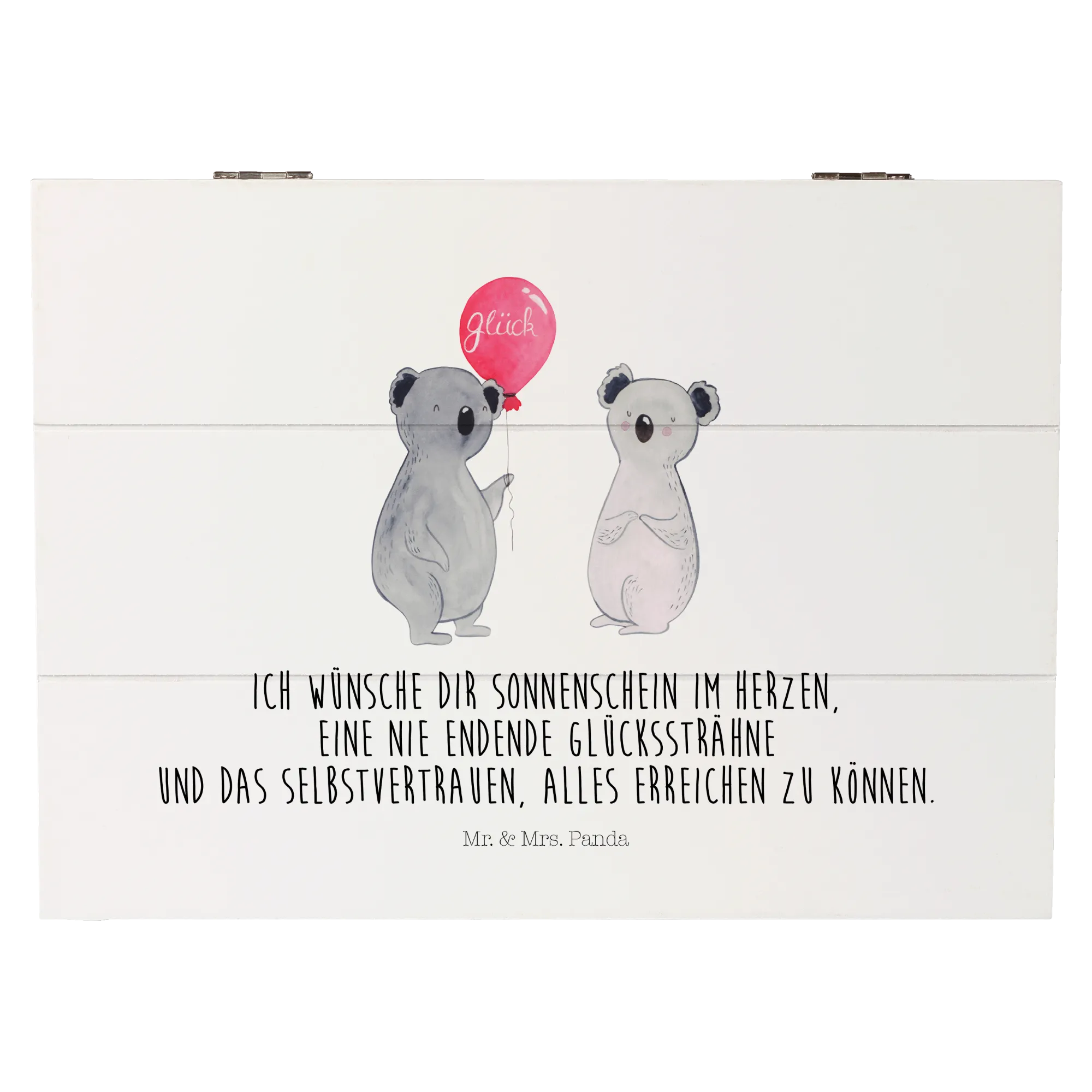Die wunderschöne Holzkiste mit dem Motif "Koala Luftballon" von Mr. & Mrs. Panda ist der perfekte Begleiter für all deine wertvollen Schätze. Diese robuste Erinnerungskiste bietet nicht nur Platz für Fotos, kleine Erinnerungen und Geschenke, sondern ist auch ein fantastischer Aufbewahrungsort für die kleinen und großen Dinge des Lebens.