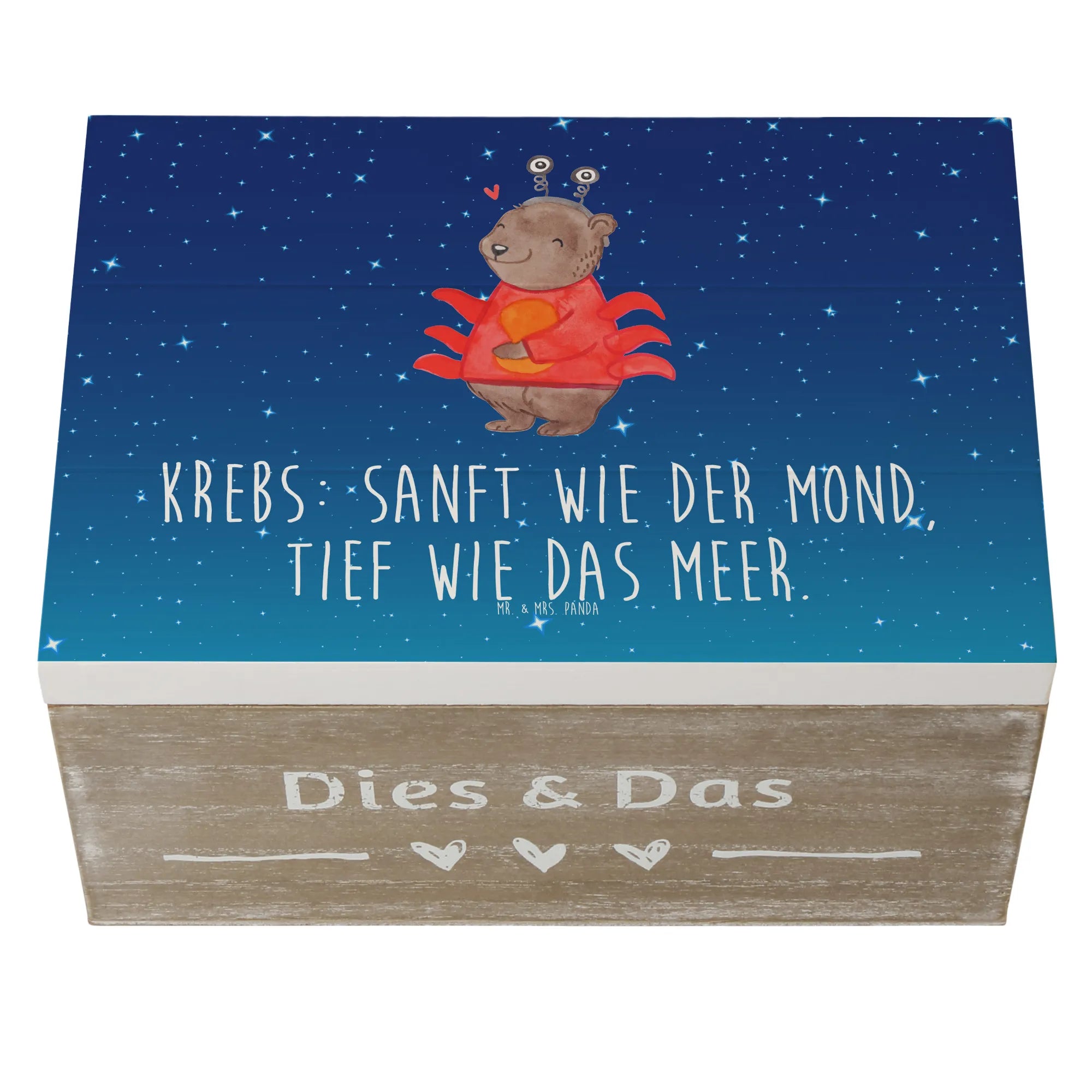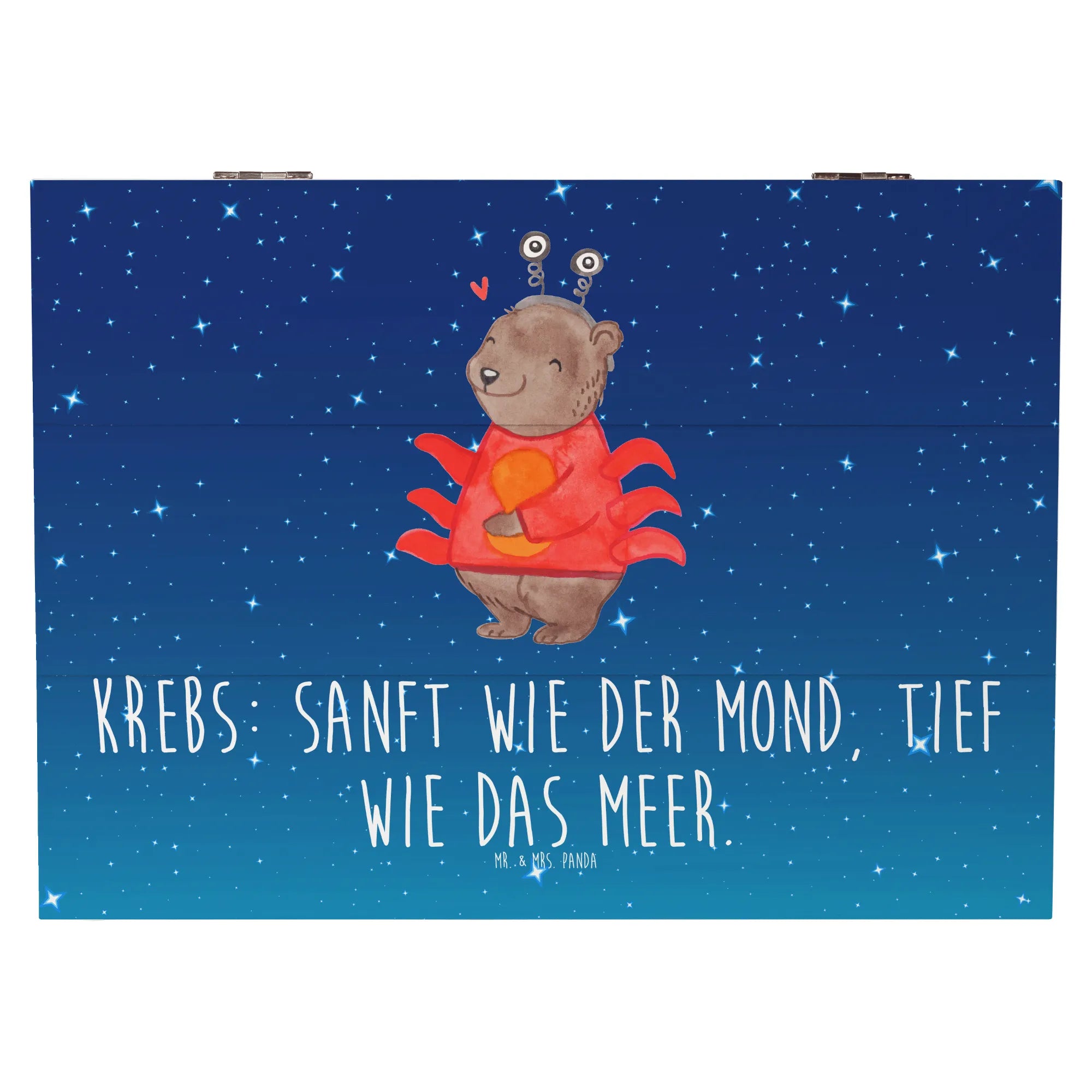 Die Holzkiste mit dem Krebs-Motiv von Mr. & Mrs. Panda ist das ideale Geschenk für alle Geburtstagkinder, die unter dem Sternzeichen Krebs geboren wurden.