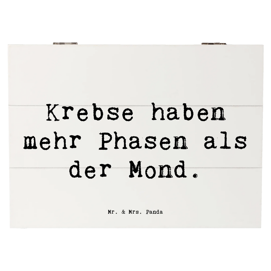 Die wunderschöne Holzkiste von Mr. & Mrs. Panda ist das ideale Geschenk für jeden Krebs-Geborenen! Mit dem liebevollen Spruch "Krebse haben mehr Phasen als der Mond" gespickt, enthält diese Erinnerungskiste nicht nur Platz für all deine besonderen Schätze, sondern bringt auch ein Lächeln auf die Gesichter deiner Liebsten.